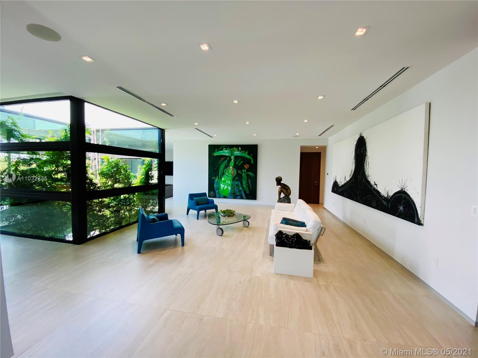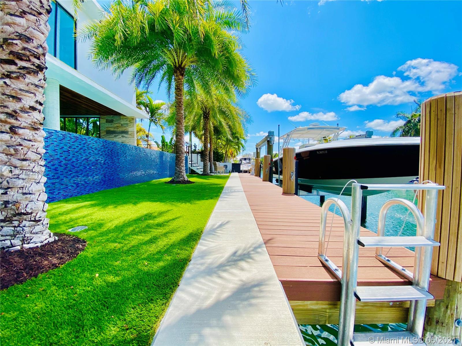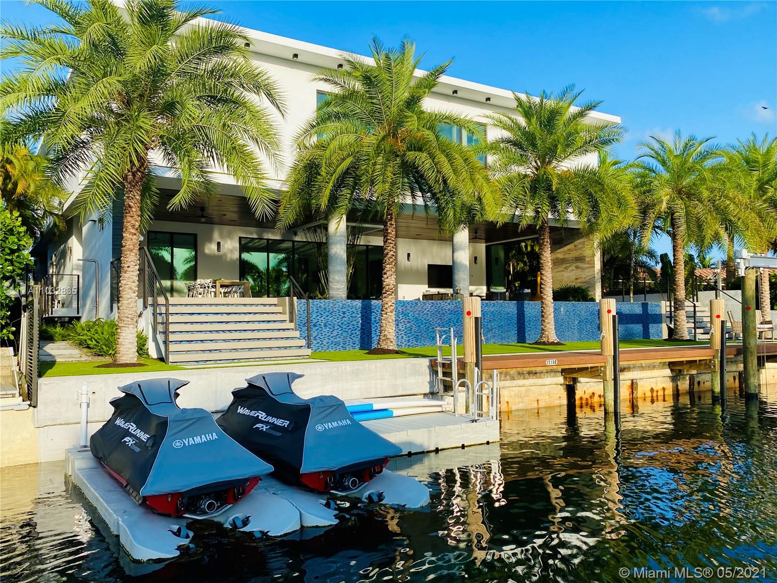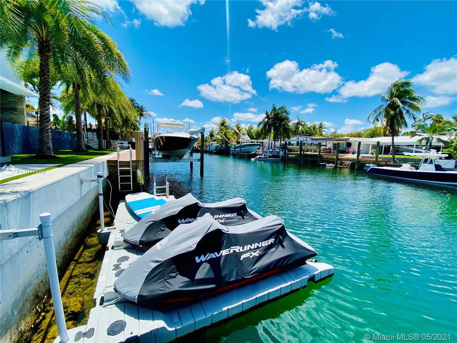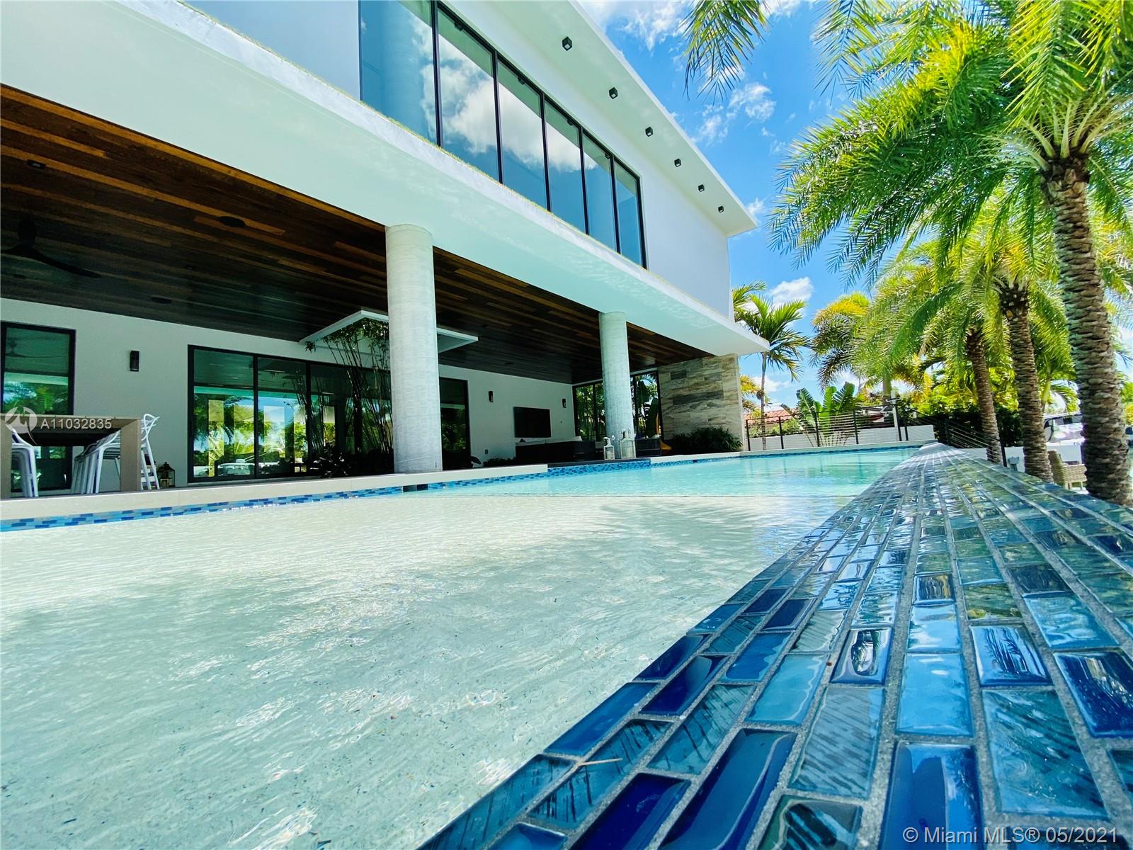 *UNIQUE*Keystone Island Contemporary Masterpiece of Architecture and Design is perfectly situated in a gated community , 24 hrs security | 5 min to high-end restaurants and Bal Harbour Shops | 78 ft waterfront and deep water dock-age |30k pounds boat lift just 3 min to bay |6bed/5bath | 8692 total sf | pool,spa,waterfall and fountain | 4 car garage | 24' high ceilings | 1st floor, 2nd floor and roof solid slab concrete | natural gas | Impact and solar advantages protection windows and doors | natural walnuts Italian doors | Italian Kitchen w/ top Wolf and Sub-Zero appliances | Glass interior patio | 1600 sf outdoor living space with summer kitchen.