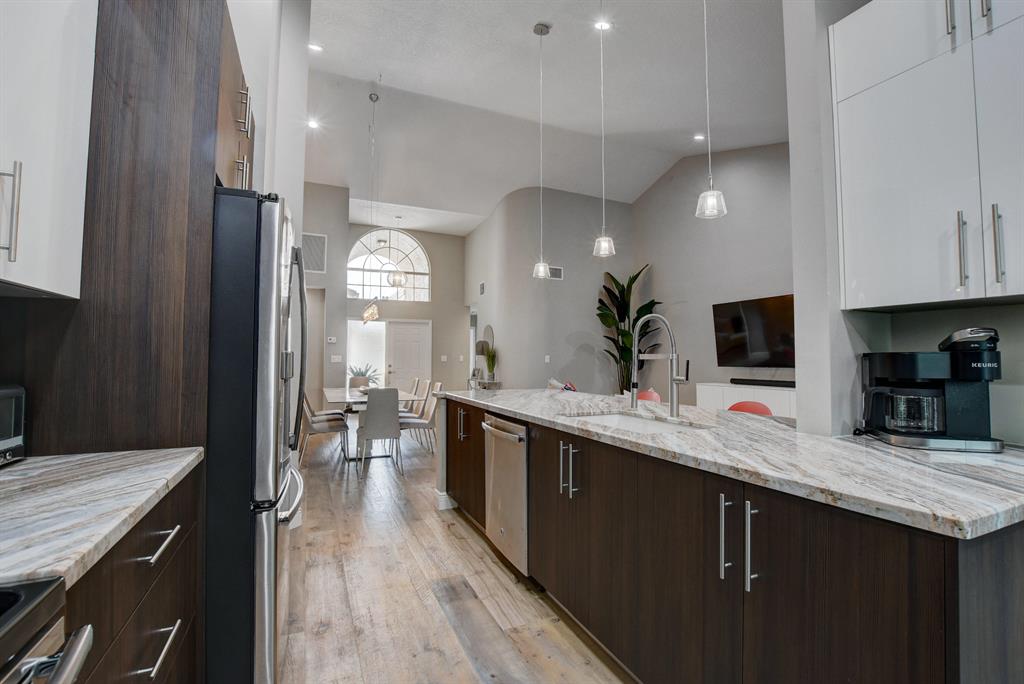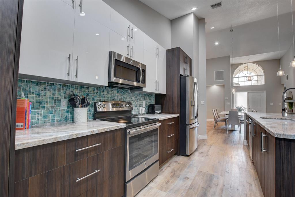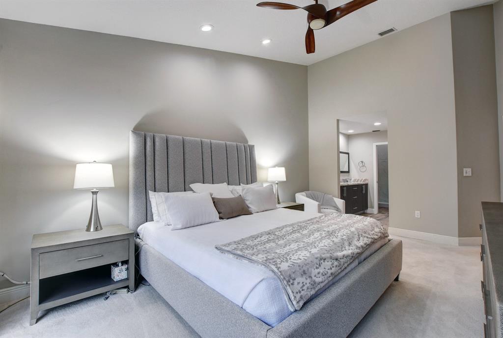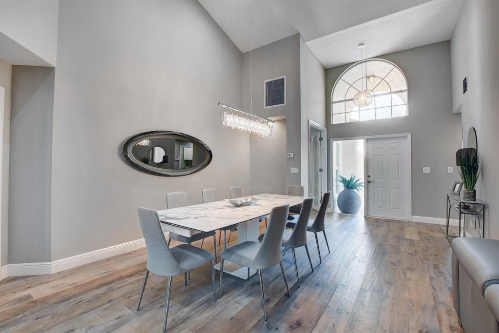 Fully modernized and elegantly renovated, single-story townhome located in the highly desirable Polo Club. This spacious and well connected property offers open flow between the living room, dining area and contemporary kitchen. A feeling of ample space and grandeur is achieved by high ceilings throughout most of the property and split bedrooms provide an added degree of privacy and seclusion. The primary bedroom boasts a walk-in closet and spa-like bathroom area with spacious shower. Bright, bold and natural materials including ceramic tiled plank flooring with the freshly painted interior create a showroom ambiance. Mandatory club membership is required. Seller has paid special assessment in full.