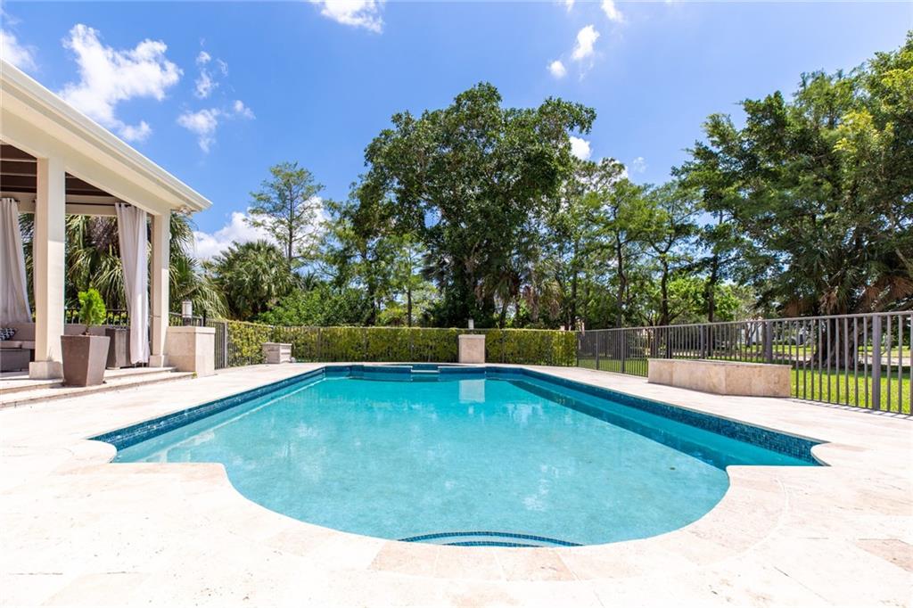 Stunning, remodeled and updated 5 bed with den, 5.5 baths located in Whispering Woods, a gated community. Resort-like pool on a 1-acre lot with gorgeous lake and preserve views. Quiet and private with easterly breezes. In-law suite with private entrance, nanny suite, huge open kitchen with breakfast nook, fireplace, new floors, 2 car garage with circular concrete drive. 5374 sqft under air.