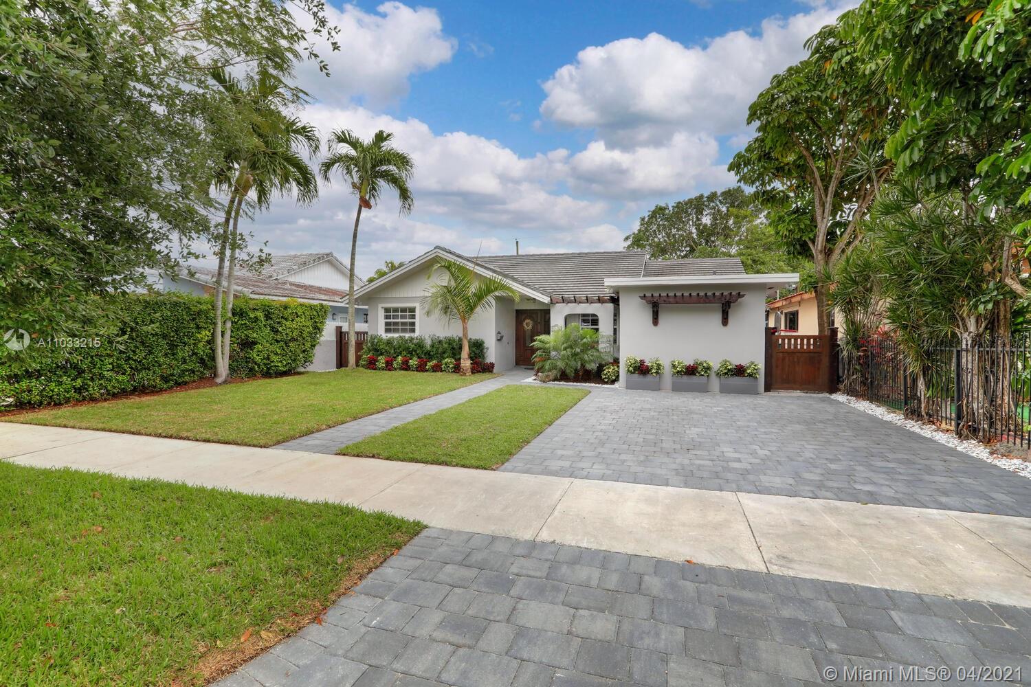 Lovely “Little Gables” home on a quiet tree-lined street & ideally located just minutes to world-class shopping & dining on Miracle Mile, Miami International Airport, Downtown/Brickell, Key Biscayne and the Beaches. Light-filled, open living spaces feature vaulted ceilings, tile flooring & plantation shutters throughout. Updates include renovated baths, 2 yr old roof & new HVAC. Custom kitchen with wood cabinetry, granite countertops, stainless appliances & a breakfast bar. 4 BR’s/ 3 BA’s + den/office & laundry room. Detached CBS shed w/electric. Enjoy outdoor living & entertaining on the large screened porch overlooking the garden with potential to add a pool. Located in the highly rated Coral Gables Preparatory Academy school district.