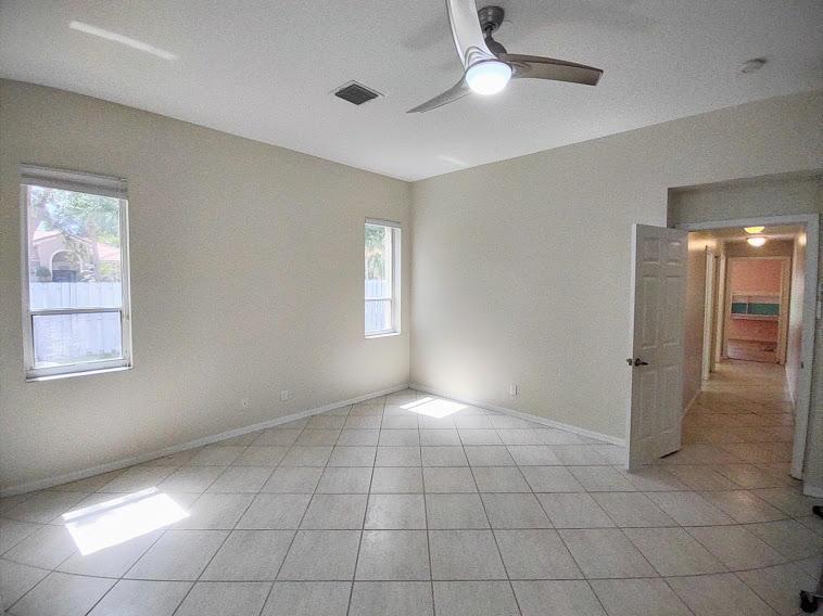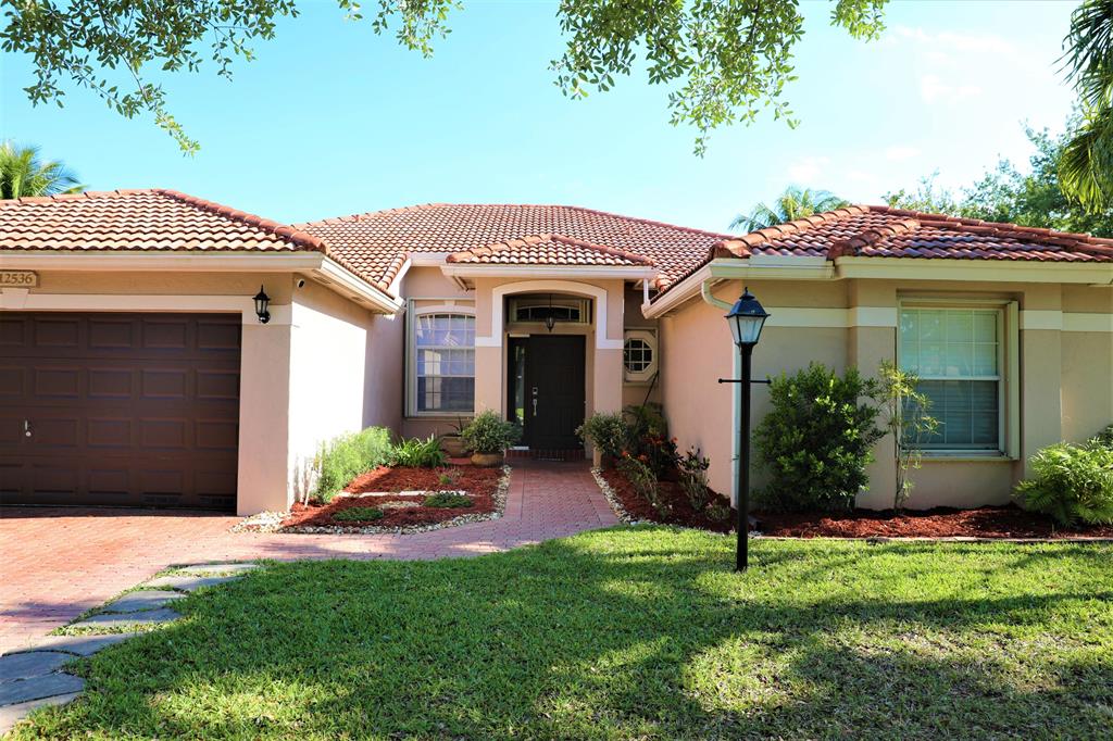 SINGLE STORY, LARGE CORNER PRIVATE LOT, & MOVE-IN READY Bridgeport Model in the Exclusive, Gated, Resort Style Community of PEMBROKE FALLS. This home is the LARGEST 3-bedrooms/ 2.5 baths model available with a BONUS ROOM! Home features plenty of Natural Light, New Kitchen (2019), Updated Baths (2020 & 2021), New Laminate Floors (2020), New 5-Ton A/C (2020), New Fixtures (2020) NO CARPET, Extra Large Master Bedroom, Custom Closets in all Bedrooms, Garage Storage, Large Screened-In Paved Patio, Sun Setter w New Fabric, Gas Hookup for BBQ, Accordian Shutters, Large Playground in Backyard, and so much more!!! A+ Schools. Enjoy the beautiful lakeview from the front of your home and a private tropical oasis in your backyard, featuring a large wooden playground for the kids! ROOM FOR A POOL!