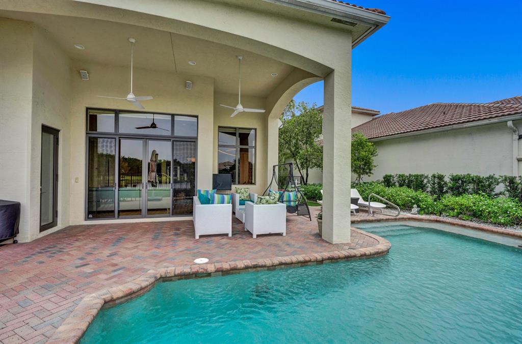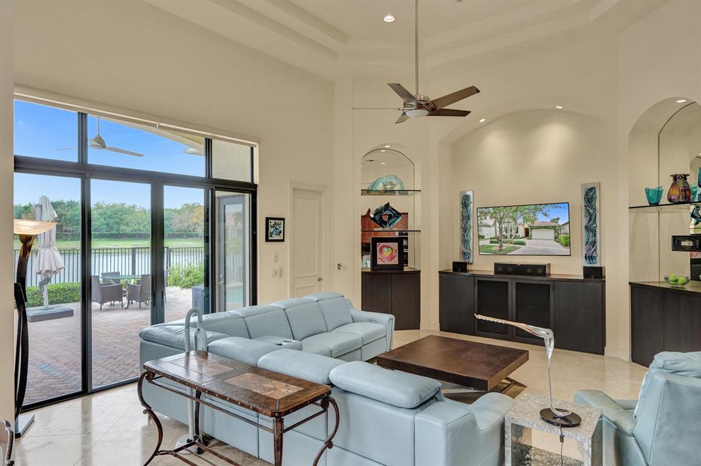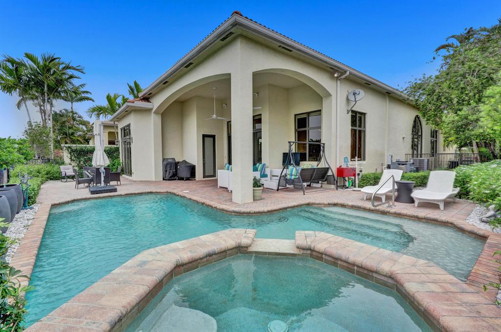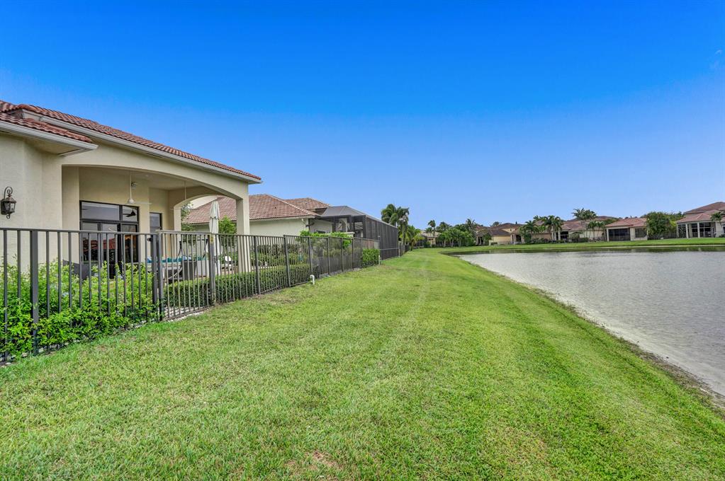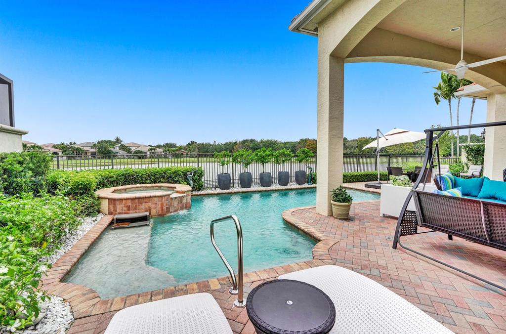 Move right into this meticulously maintained home. Click the virtual walk through and video. This magnificent residence is on a prime private lake lot and features 3 en-suite bedrooms plus an office/4th bedroom, all on one single level, w/ a triple-split floor plan. Highlights include marble floors thru-out the entire house, a gourmet chef's kitchen with a Thermador refrigerator, Viking 6 burner cooktop, and Miele double oven. Enjoy spectacular sunsets overlooking the lake and marshland that will impress. The patio features new landscaping, a natural gas grill and heated jacuzzi overflowing into your own private pool. The home has 3 new air conditioners, top of the line natural gas generator and full hurricane impact windows/doors. This home has been customized to your every comf