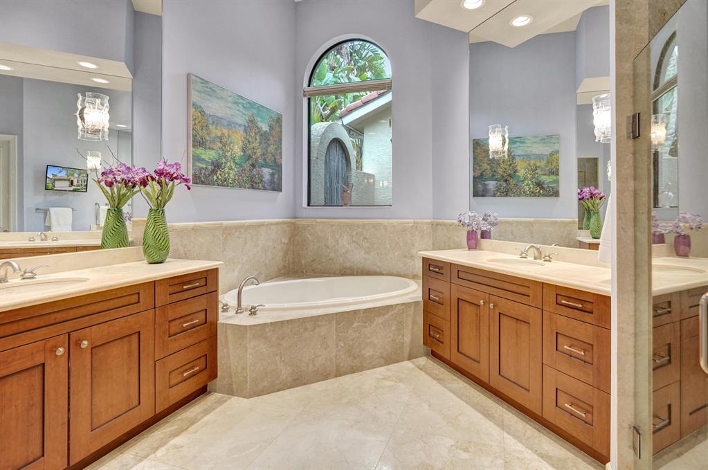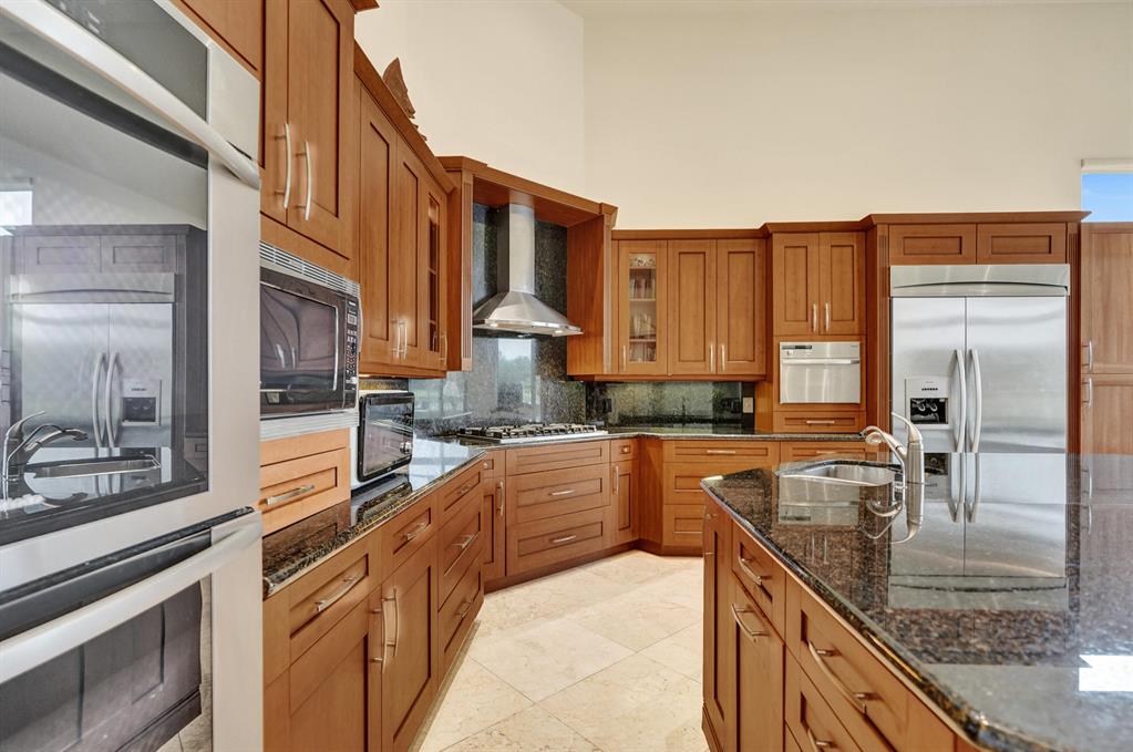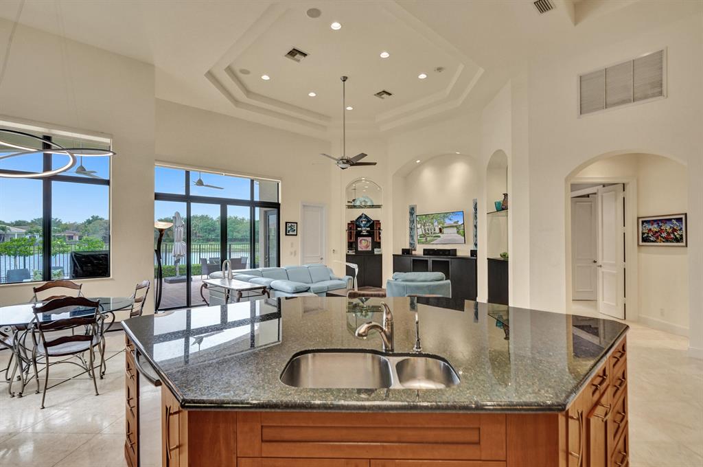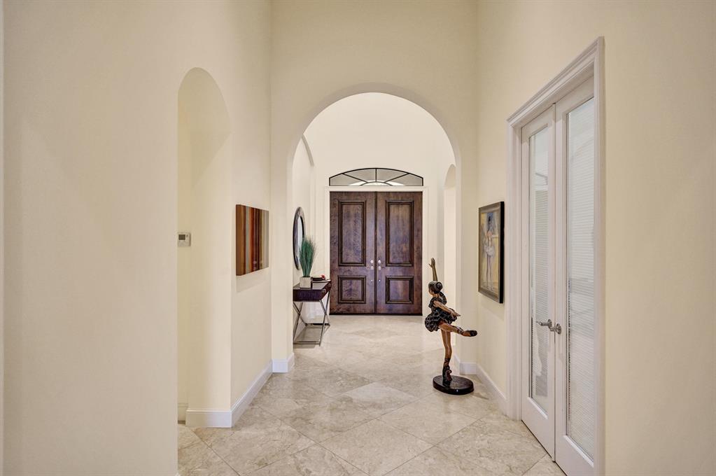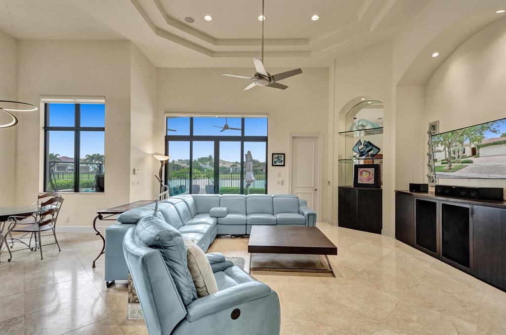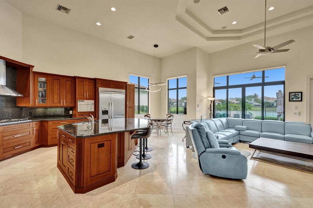Move right into this meticulously maintained home. Click the virtual walk through and video. This magnificent residence is on a prime private lake lot and features 3 en-suite bedrooms plus an office/4th bedroom, all on one single level, w/ a triple-split floor plan. Highlights include marble floors thru-out the entire house, a gourmet chef's kitchen with a Thermador refrigerator, Viking 6 burner cooktop, and Miele double oven. Enjoy spectacular sunsets overlooking the lake and marshland that will impress. The patio features new landscaping, a natural gas grill and heated jacuzzi overflowing into your own private pool. The home has 3 new air conditioners, top of the line natural gas generator and full hurricane impact windows/doors. This home has been customized to your every comf