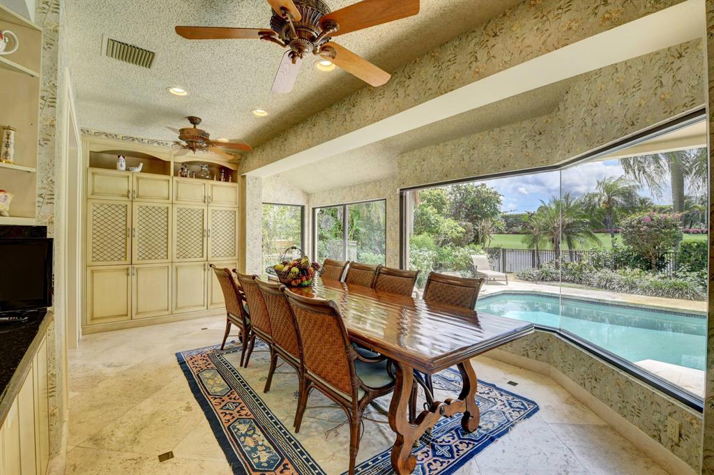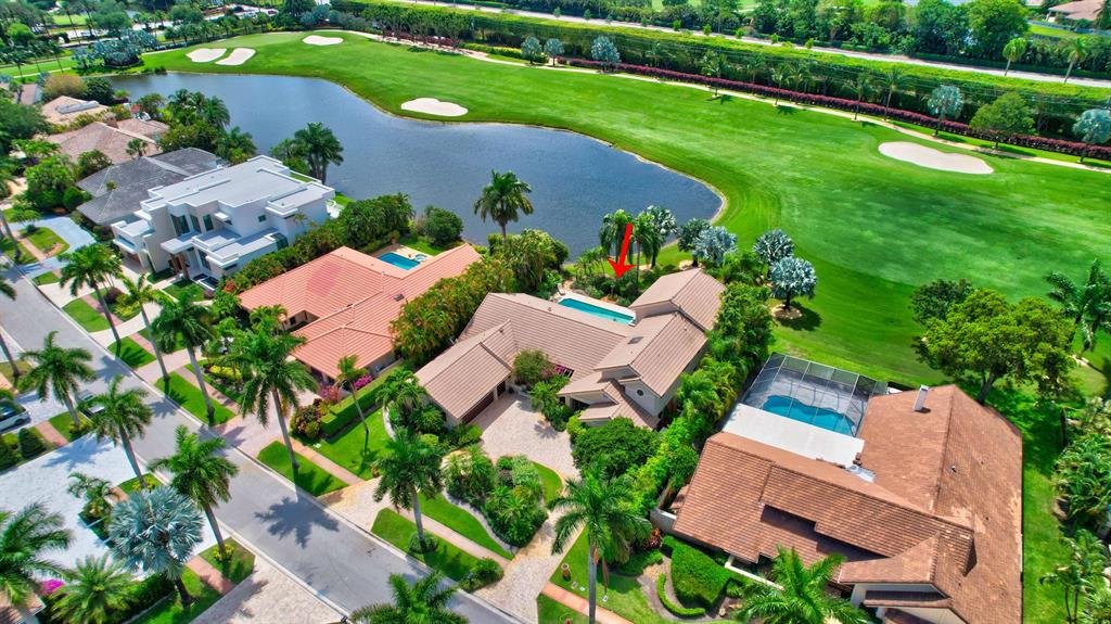 Lovely 3-bedroom + den/office home with panoramic lake & golf course views in St. Andrews Country Club. The home features 2 master suites, a full-house generator, and elevator. There are 2 bedrooms downstairs (including one master) plus a den/office. NO STEPS on the 1st floor. A second master suite is upstairs, with French doors leading out to a covered balcony. Both master suites are very spacious with separate sitting areas and custom walk-in closets. All bedrooms are en suite. Gourmet kitchen with double ovens and lots of storage. Desirable southern exposure out back, pool with spa, open & covered patio areas with marble pavers, and expansive lake & fairway views. Note: The ''After'' photos have been digitally modified to show the possibilities for the property.