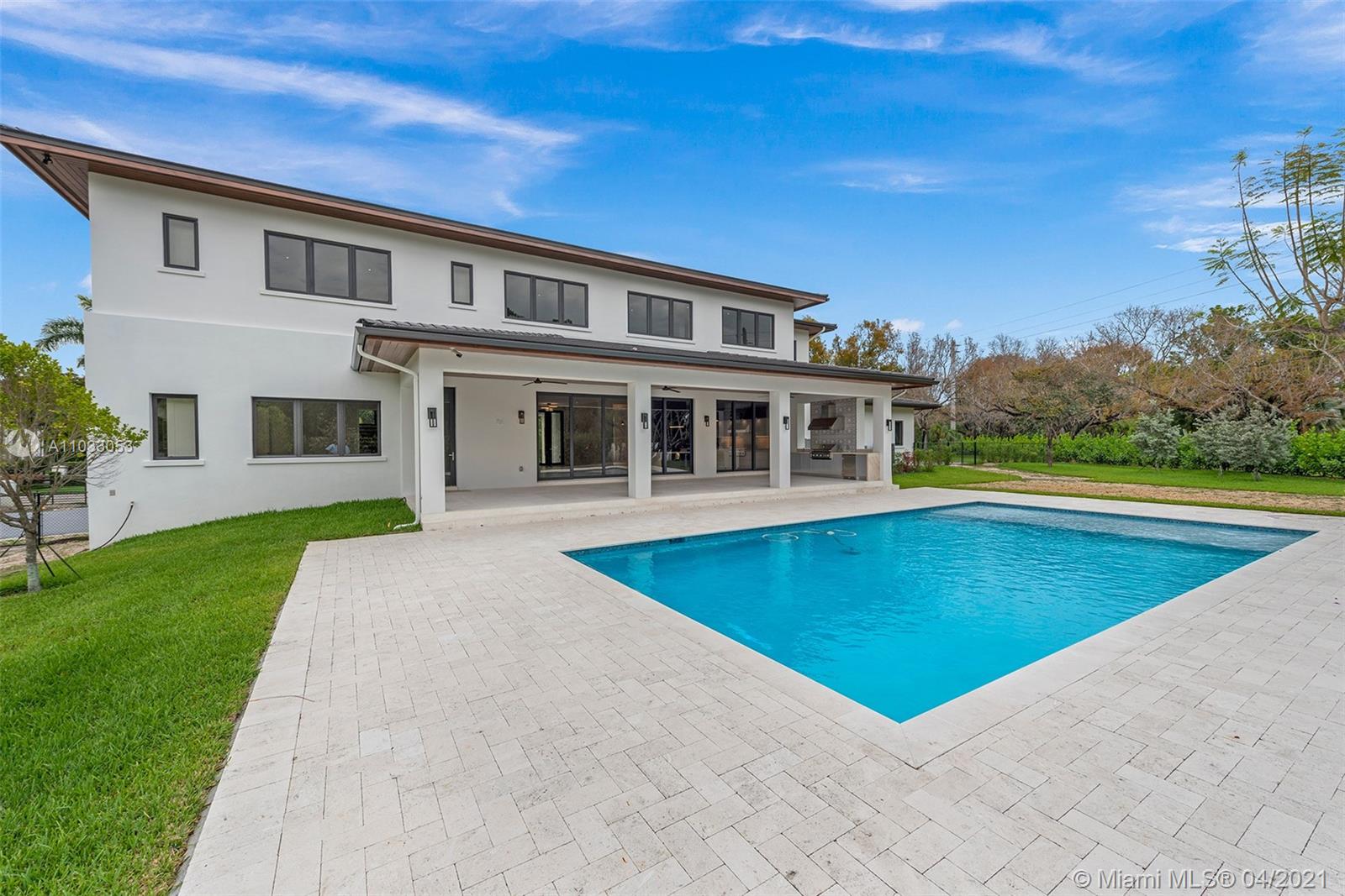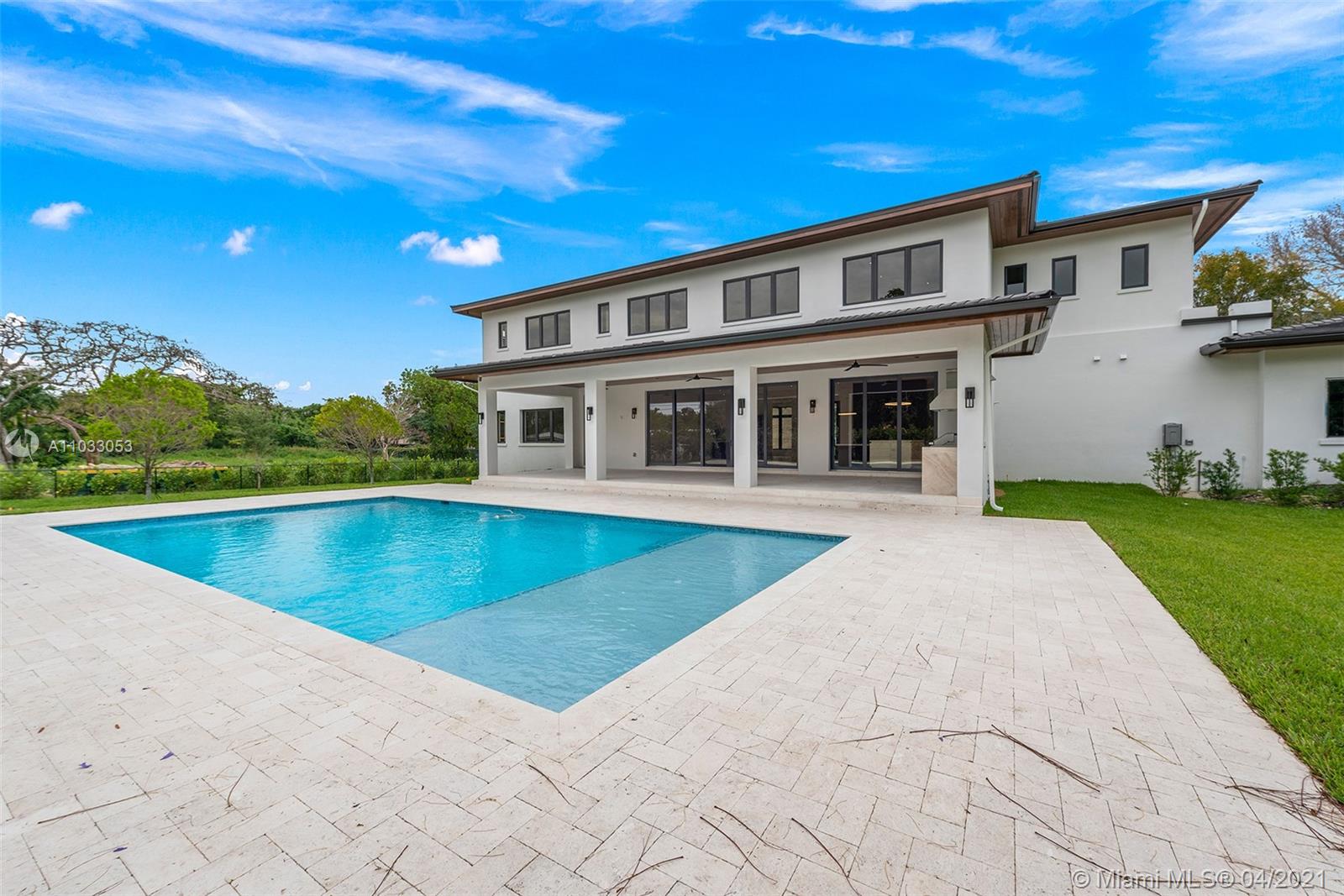Brand new construction(To be completed Mid-June). Distinctive & stunning Plantation style custom home on builder's acre sits on high ridge, gated estate w/modern & sleek open floor plan. Formal living & dining rooms! Imposing entry! Hi-volume ceilings, designer porcelain flooring, detailed finest finishes throughout. Gourmet dream kitchen w/ double islands, top-of-line appliances. built-in Bar, split large guest quarter, elevator, hi-impact glass and doors! Additional media/library. Lavish master suite with luxurious & gorgeous bath, huge walk-in closet & sitting room. All large ensuite bedrooms. Two utility rooms for both up and downstairs, Large roofed patio w/built-in summer kitchen. Sparkling saline pool! Extras! Excellent Pinecrest schools! Fabulous! See Broker's remark for showings.