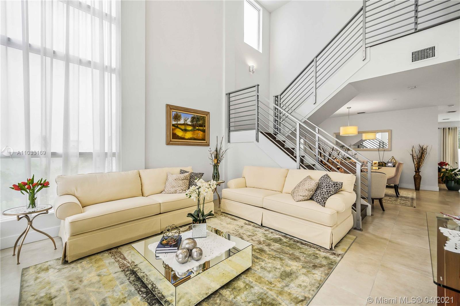 Largest floor plan in all of Modern 45. 1 bedroom and full bath downstairs, remaining 4 bedrooms upstairs. Formal living room with vaulted ceilings give this home an impressive wow factor. 2 car garage, private back yard. Secure, gated community. Clubhouse with pool, gym, sauna, business center, kids room, TV room and secluded balcony with hammock. Great location: 15 min from Downtown Doral, 15 min to Miami Int'l Airport. Walking distance to Doral Glades Park - beautiful space with boardwalk across the marshes and paved trail. Shaded benches and playground, fishing and kayaking available. Pavilions for birthday parties and air conditioned nature center. For those on the active side, there are 2 tennis courts, basketball court and beach volleyball ct.
