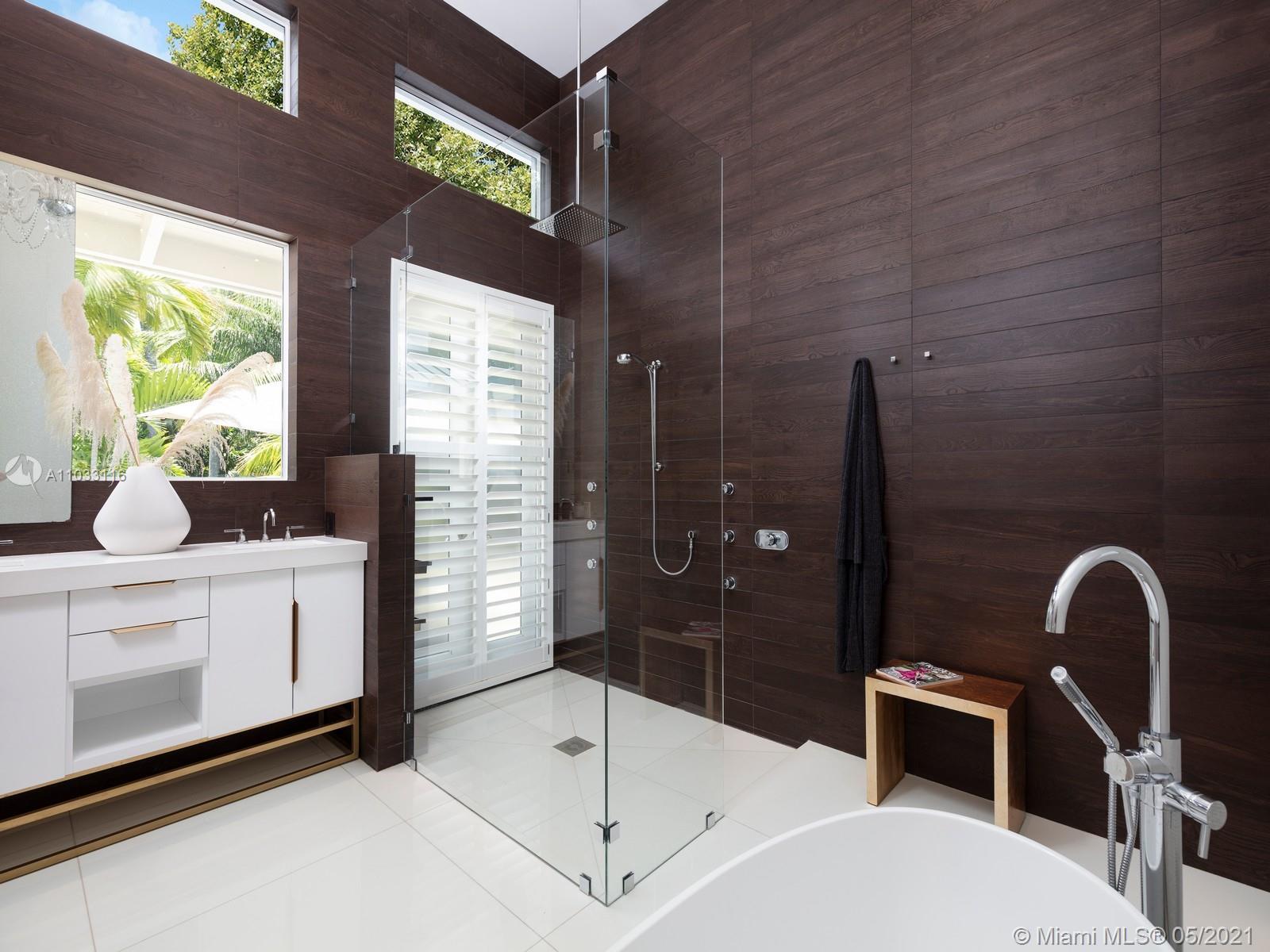 This enchanting tropical paradise is a true hidden gem, located in N Pinecrest & enveloped by exotic green grounds on a 31,363-sf lot. This gorgeous 6,485 sq.ft courtyard custom home features an open flrplan w/ volume ceilings, chef’s dream kitchen w/ Thermador appl, wine cooler, walk-in pantry, & family rm w/ entertainment bar. Lavish master ste located upstairs offers a spacious setting w/ sitting area, spa like bath, walk-in closet & open balcony. Off master ste find a 2nd level rec room/gym w/ private entrance. Discover the ultimate indoor/outdr living experience w/ resort-style pool, tanning ledge, large covered terr, built-in summer kitchen & lush botanical garden. Add’l Features: 3 car gar, excellent Pinecrest location + schools. A unique home for those seeking the extraordinary.