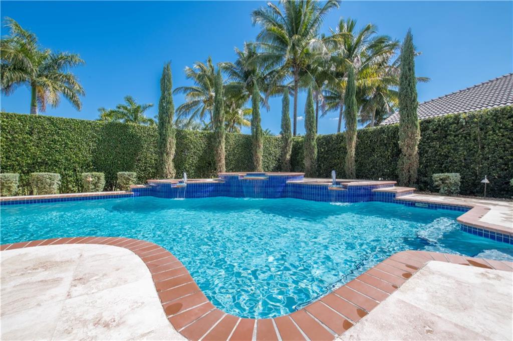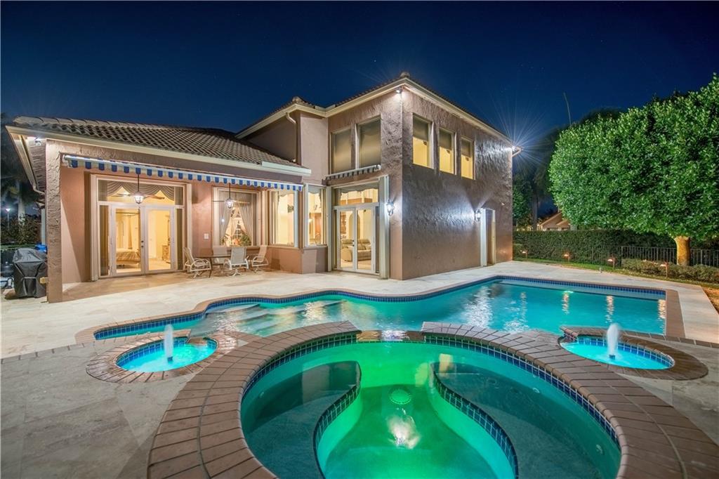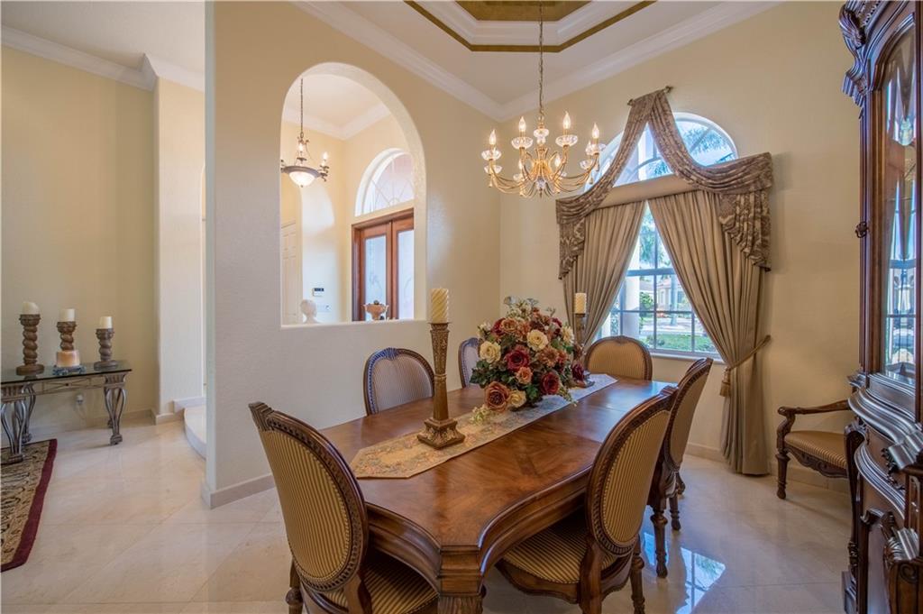 Stunning 6 BR / 5 bathrooms semi-custom, one of a kind, home in oversized corner lot with oversized 32x22 custom heated pool and spa. Beautiful 24" x 24" diamond set crema marfil marble throughout the 1st floor common area and in the master bathroom. 3 bedrooms, including the master bedroom suite, on 1st floor. Separate dedicated in-law quarters or office wing with it's own full bathroom and independent entrance and A/C. 3 car oversized garage. All solid wood custom kitchen cabinets with pullout drawers, granite counter tops ,SS appliances and huge pantry. Impact windows and accordion shutters, generator with electrical panel connection