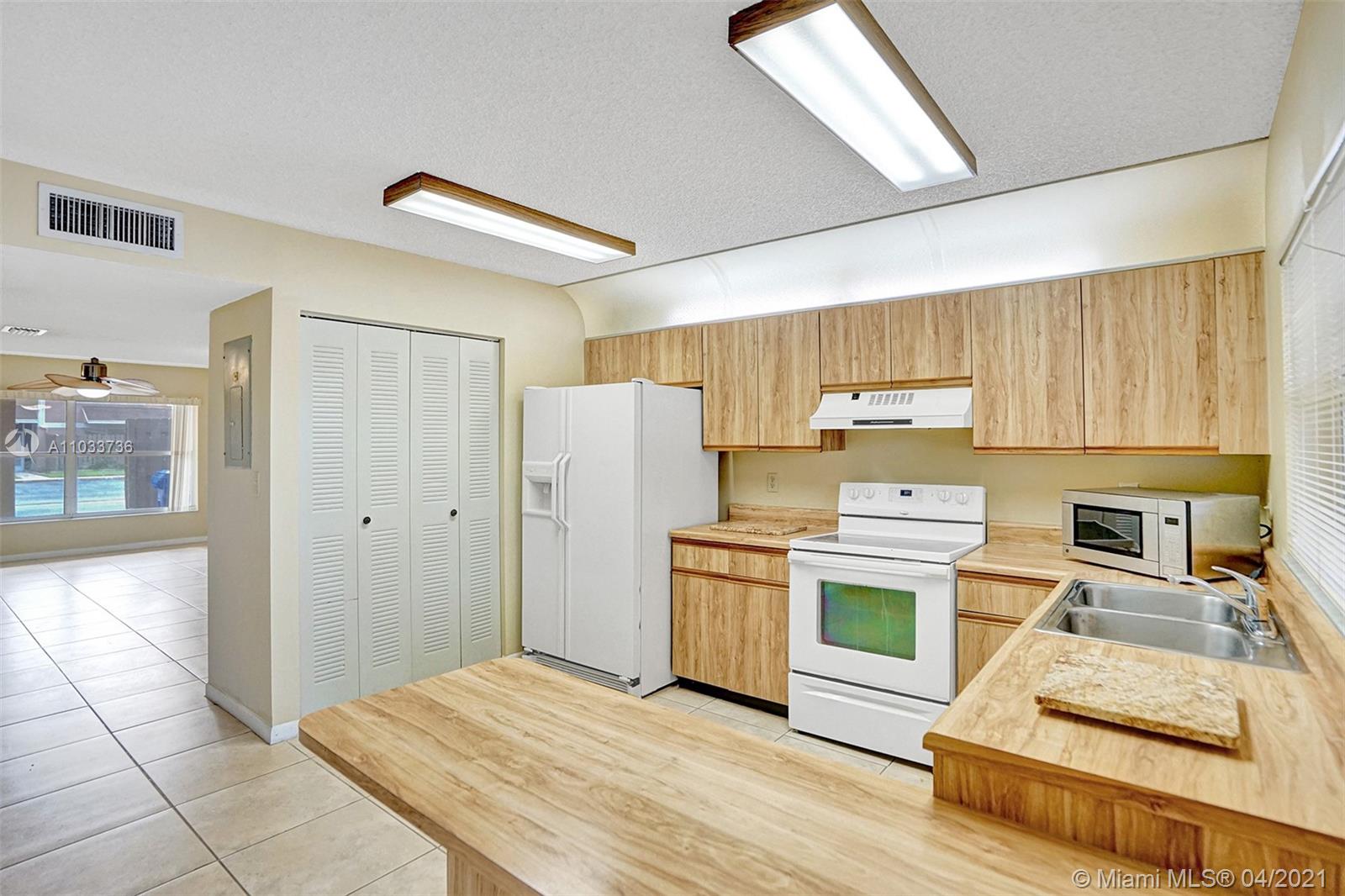 One of the largest models, 1700 plus sq ft, located in Flamingo Villas and overlooking a large lake is waiting for a new owner. This unit features 3 large bedrooms with 3 full bathrooms with 1 bedroom and bathroom located on the first floor. This well kept townhome has brand new wood vinyl flooring in all bedrooms and upstairs hallway. Brand new carpeting on the stairs. The rest of the home has ceramic tile. Oversized interior laundry room that is so big you can actually also use as a small computer room. The kitchen has plenty of cabinets and a large pantry overlooking a family room. Sit on the screened in patio and enjoy the million dollar view. This is a guard gated community which includes 2 pools, sauna, playground, tennis, racquet ball, fitness center and more.