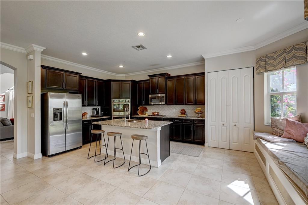 Stunning Summit model 5 Bedrooms 4 full baths and bedroom & bath on the first floor in beautiful MiraLago. Impact windows and doors, gas cooktop and crown molding. Beautifully landscaped private back yard paradise. Amazing gated community with resort-style amenities including gym, tennis, basketball, billiards room, tot lots, kids water park and amazing party and ballroom. A+schools.