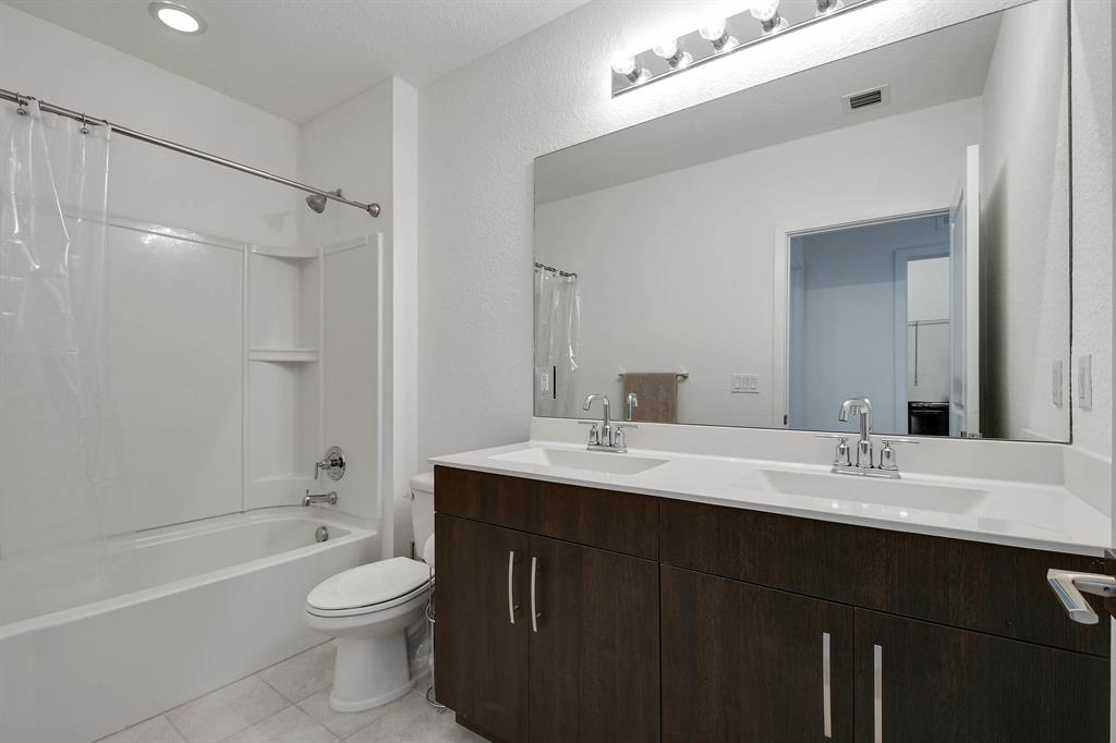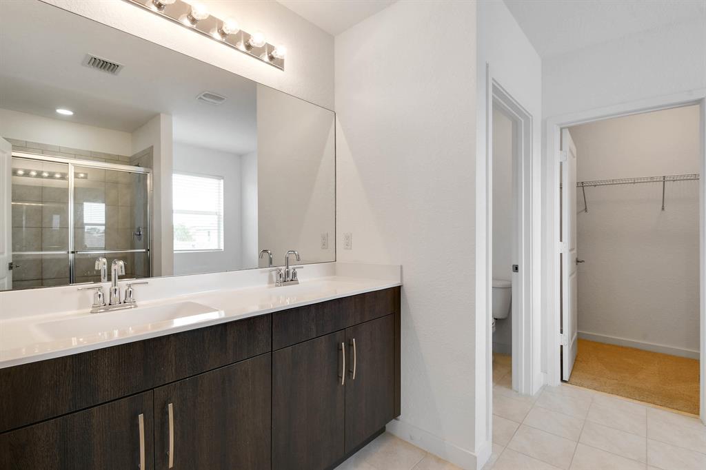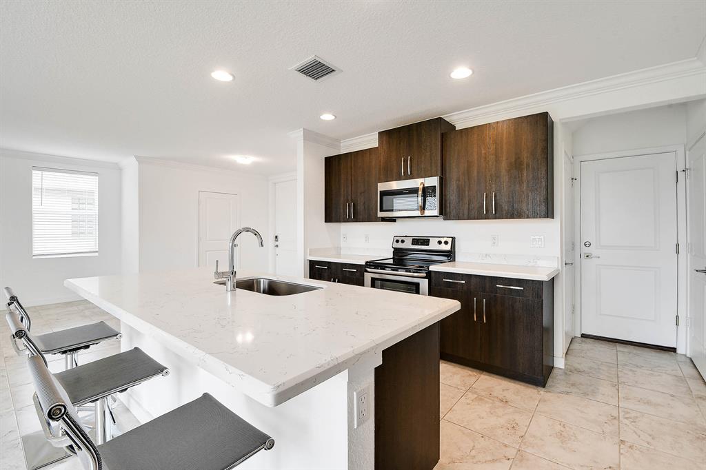 Move-in ready DR Horton new build 2 years young! Located on a quiet and serene street with lake view and completely open concept this 4 bed/2.5 bath 2 story home is an unbelievable deal with HOA only $146/month. Upgraded porcelain tile on the first floor, a large kitchen with modern Expresso cabinets and gorgeous quartz counter-tops, a huge prep island with sink, stainless steel appliances, recessed lights and crown molding. View of the lake from the living room with sliders leading to the backyard. Upstairs you will find 4 bedrooms and 2 full baths and a loft area. The master suite has soaking tub, separate shower, double vanity and a huge walk-in closet. 2 car garage and pavered driveway, and an inviting back yard space with lake view,