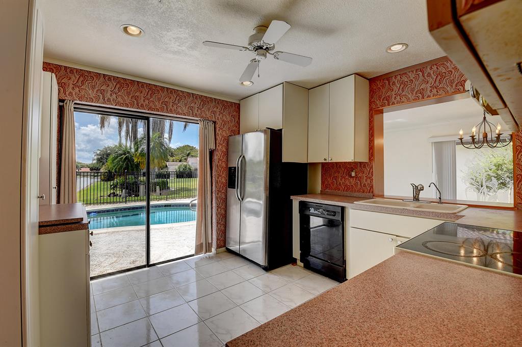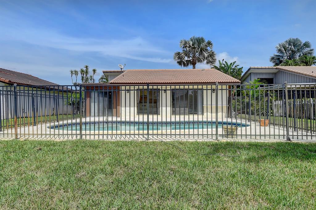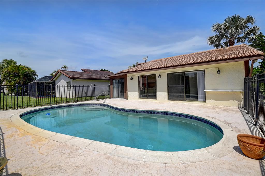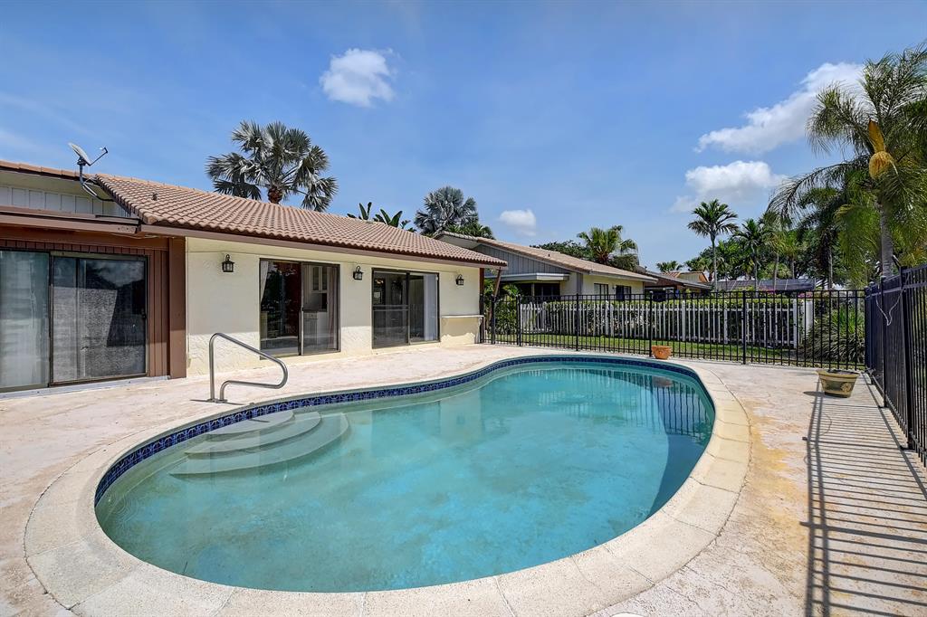 The most affordable pool home in Boca Greens that you can make into your dream house as kitchen & appliances need updating. This 2/2 w/enclosed porch can be used as a den/office or extension of the living rm. area. Located on a quiet cul de sac & the pool & patio is fenced in with an amazing long lake view. Freshly painted, new lawn/sprinkler system, new pool motor, roof ('04) a/c ('17), water heater ('16).Low HOA fees includes premium cable & internet. C.C. membership not required, Residents can sign up for tennis and golf on a pay to play basis. Friendly guard gated community of 586 homes, all top rated Boca schools, quick short walk to nearby shopping centers & houses of worship, All this & more makes Boca Greens the ideal place to call home.