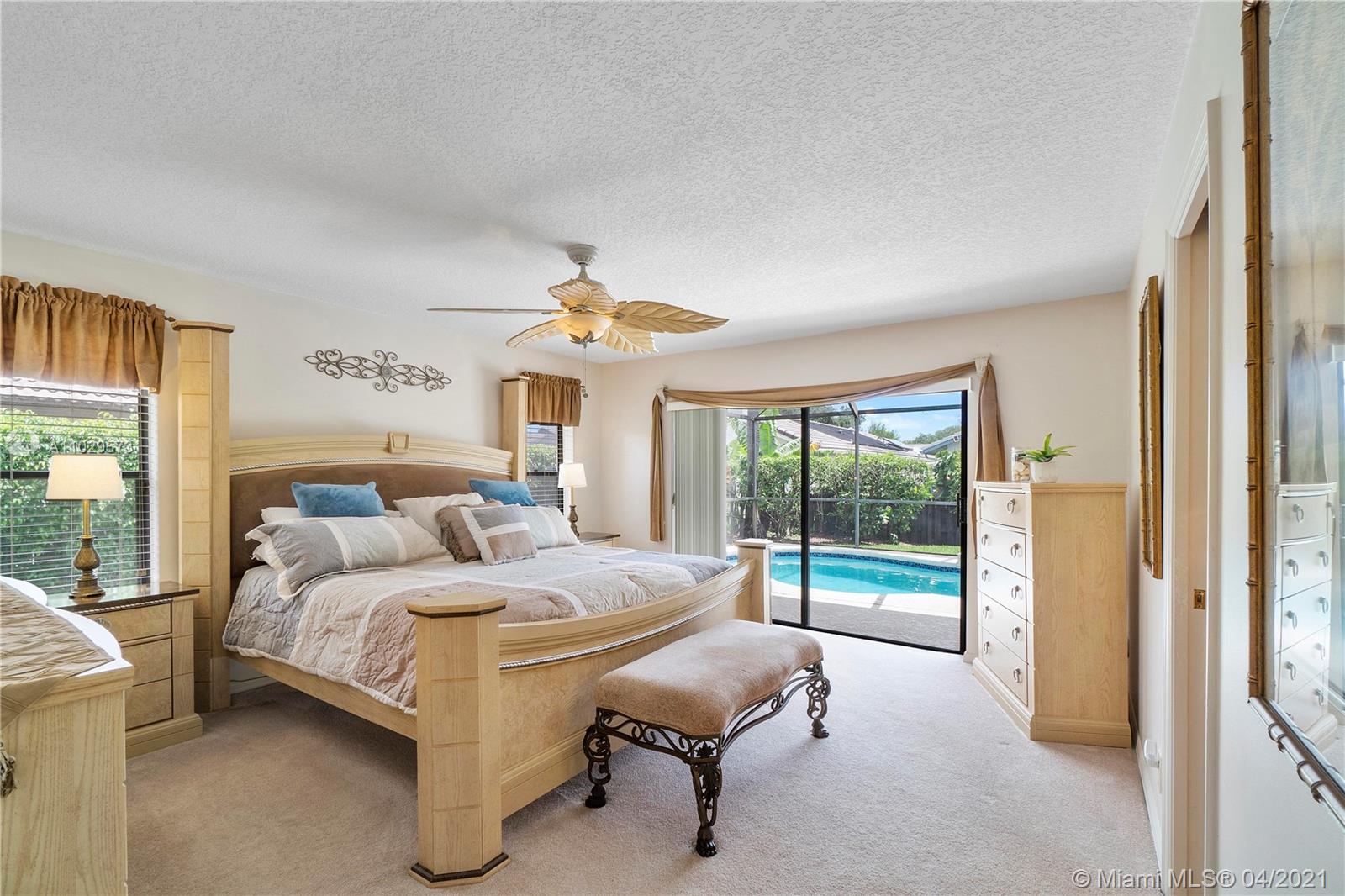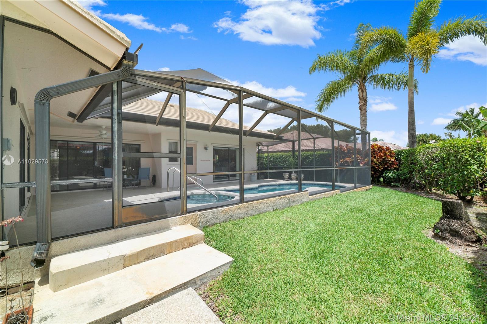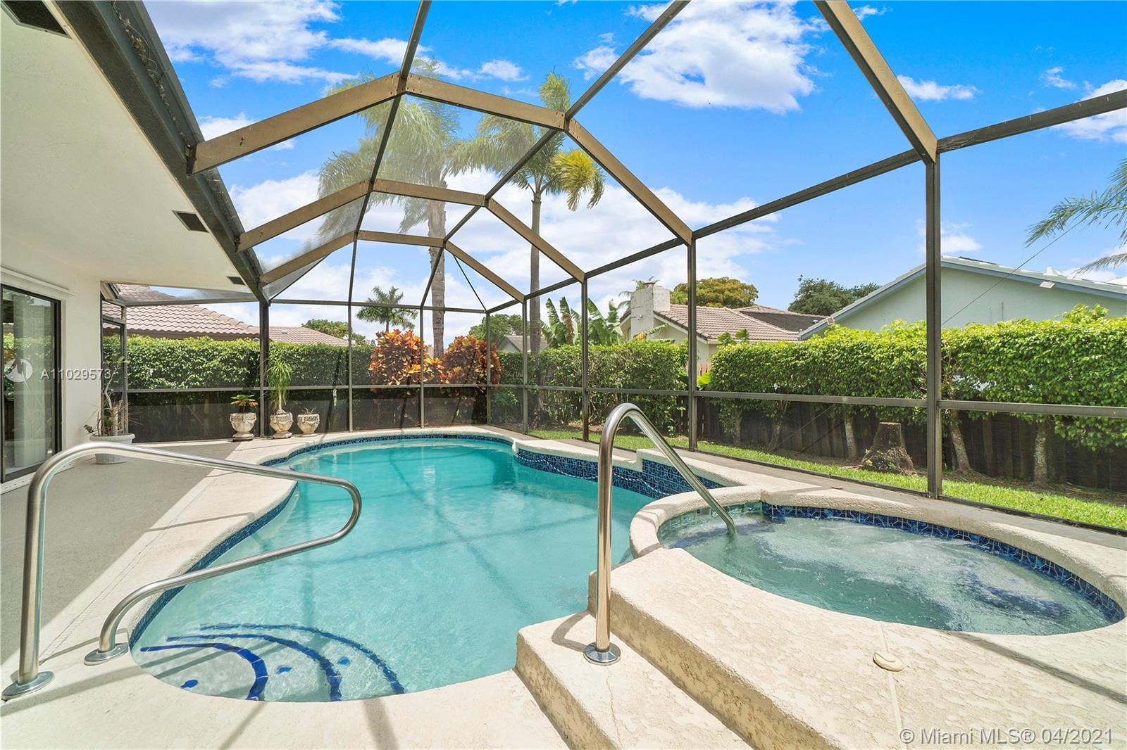 Come and see this light and bright, immaculate 3 Bedroom 2 Bath pool home on corner lot with open floor plan and soaring ceilings for contemporary Florida living! You will love looking outside from your triple sliding glass doors to the serene and peaceful views from throughout your home. Enjoy the covered cool deck patio with heated screened pool and spa/jacuzzi every day! Located in desirable Coral Springs with easy access to parks, schools, restaurants and highways! Features include: A/C 2015, impact garage door 2018, complete hurricane panels, fenced yard, neutral tile throughout and carpeting in all bedrooms, updated master bathroom with granite counter and double sinks, paver driveway, double door entry, knockdown ceilings, inside laundry room with extra cabinets and so much more!
