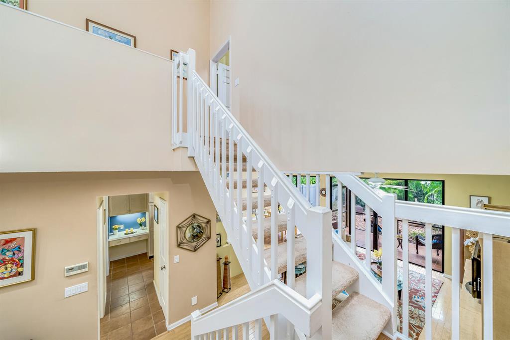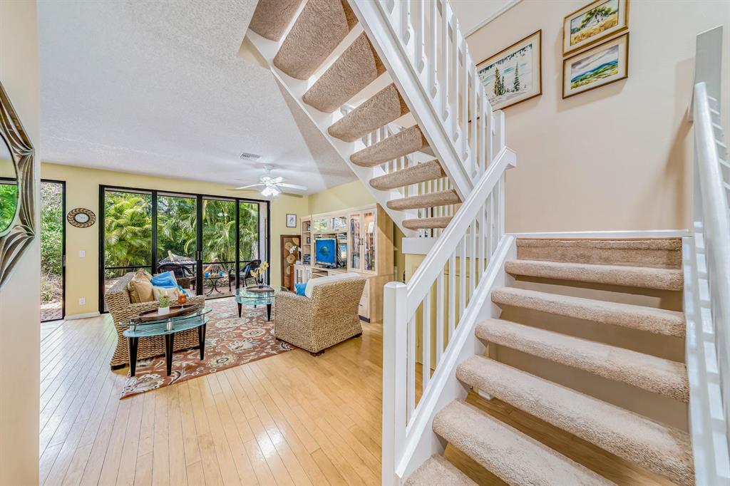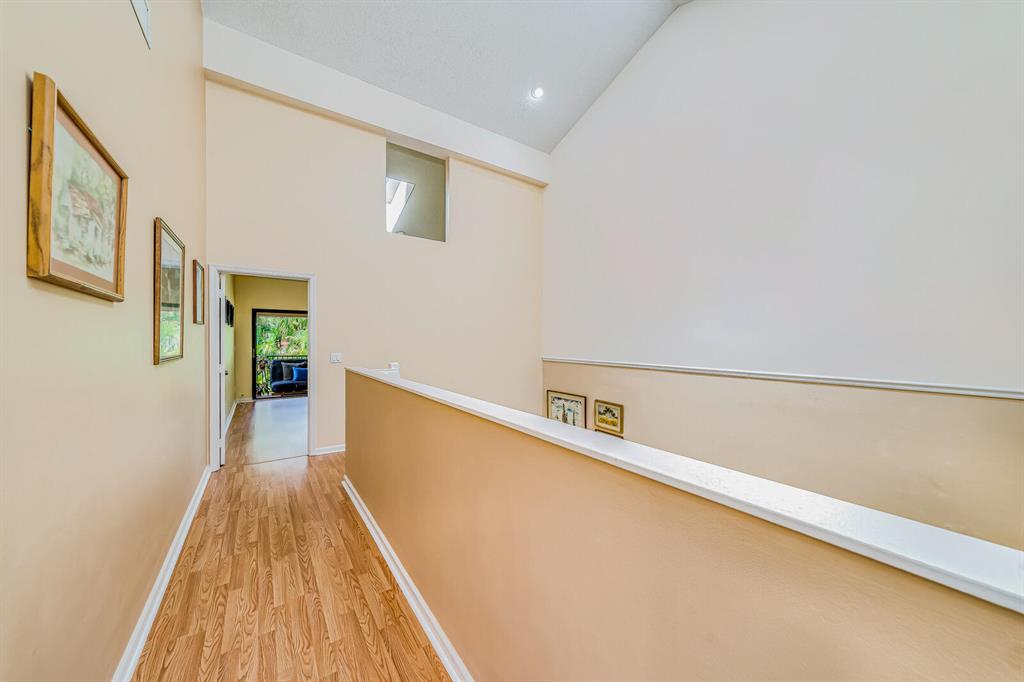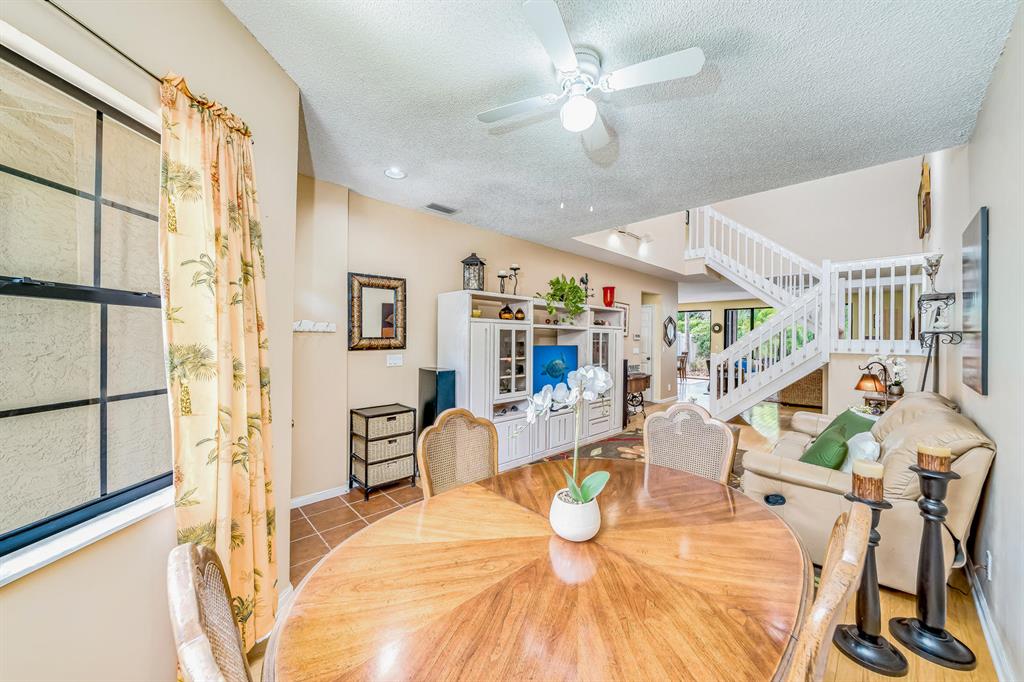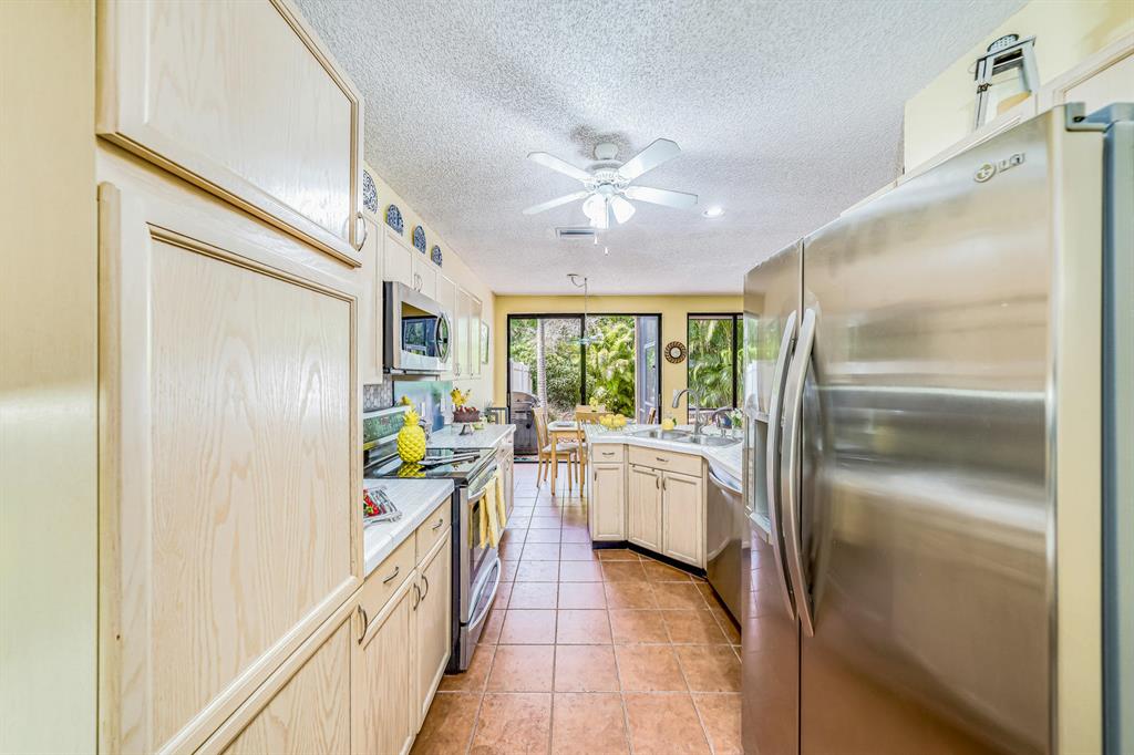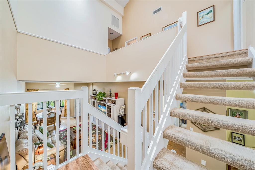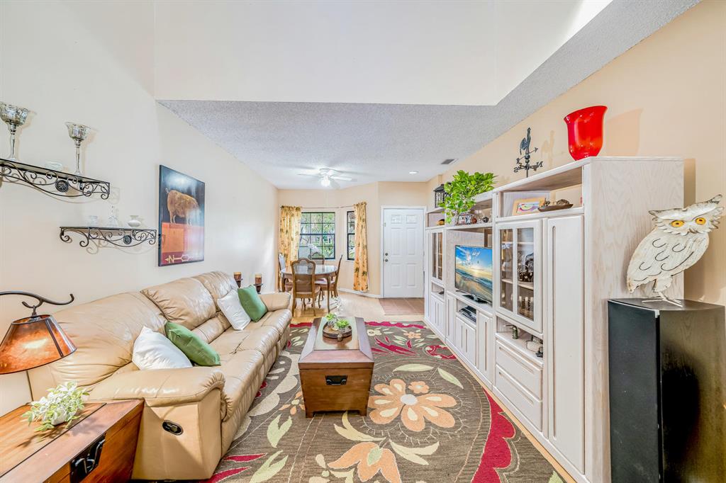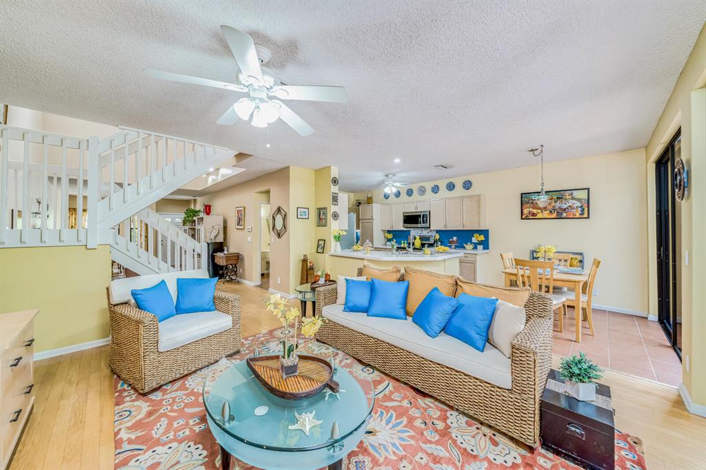 Renovated townhome w/3 bedrooms, 2.5 baths + 1 car garage + inside laundry room+ formal dining room & formal living room. Huge family room off of the kitchen. Dramatic entrance w/soaring cathedral ceilings & picturesque walls of windows/sliders/skylights that flood the inside with natural light and highlight the tropical private backyard. Enjoy the sense of openness, volume, & space throughout this home. Huge chef's kitchen featuring newer SS appliances/tons of wood cabinets, many with pull out drawers, tile counter tops with so much prep space, built in desk area, large pantry, sunny eat-in area plus over looks backyard and over looks the enormous family room! All 3 bedrooms are upstairs w/laminate wood flooring, and they are very spacious w/cathedral ceilings.