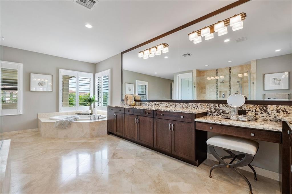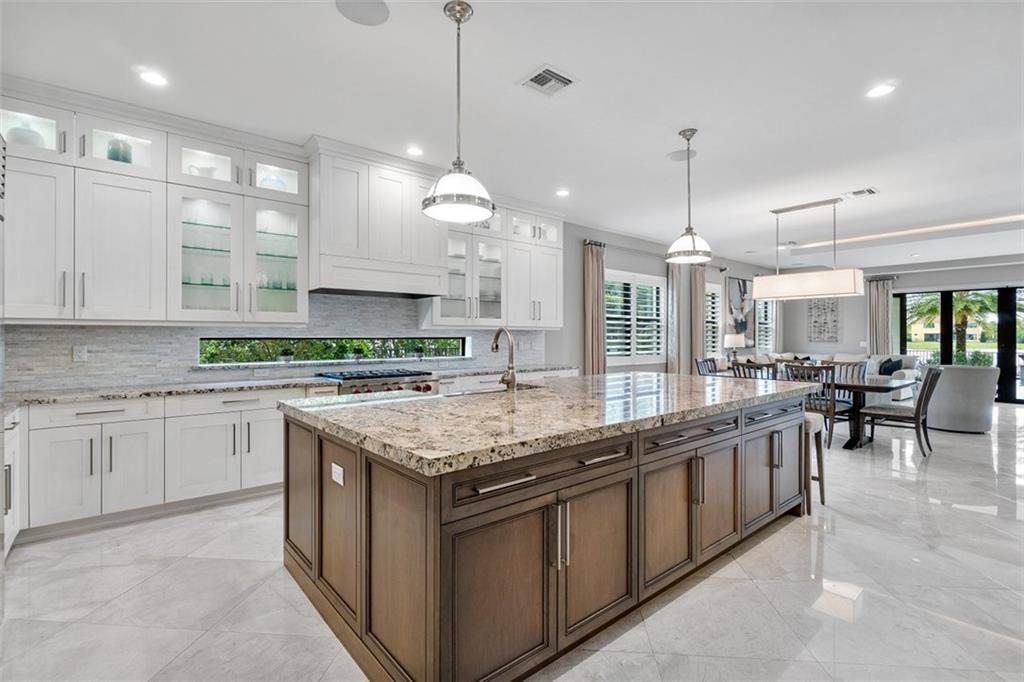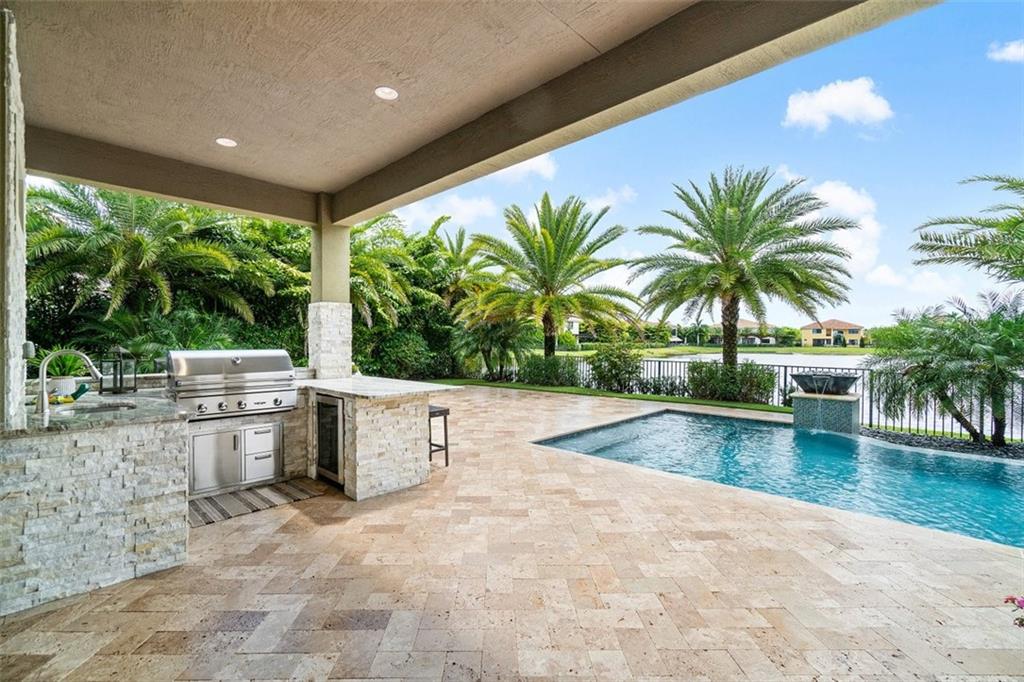 The owner's attention to detail & impeccable taste resulted in a breathtaking & sophisticated home where meticulous upgrades are evident thruout! Twin sweeping staircases & beautiful views via walls of glass take center stage in this expanded Cosenza. The expansive Kitchen/Family Room area is sublime with a huge island/floor-to-ceiling cabinetry/raindrop glass/stunning counters/gas stove/high-end appliances/fireplace. Master Suite is impressive with its size & has a sitting area/luxurious spa bathroom/expanded balcony. Other Offerings: Media room/Office/Large secondary bedrooms all with ensuite bathrooms/Jaw-dropping heated pool with spa/Water features/Summer kitchen/Manicured landscape! The home's splendor continues after the sun goes down, courtesy of dramatic landscape & pool lighting!