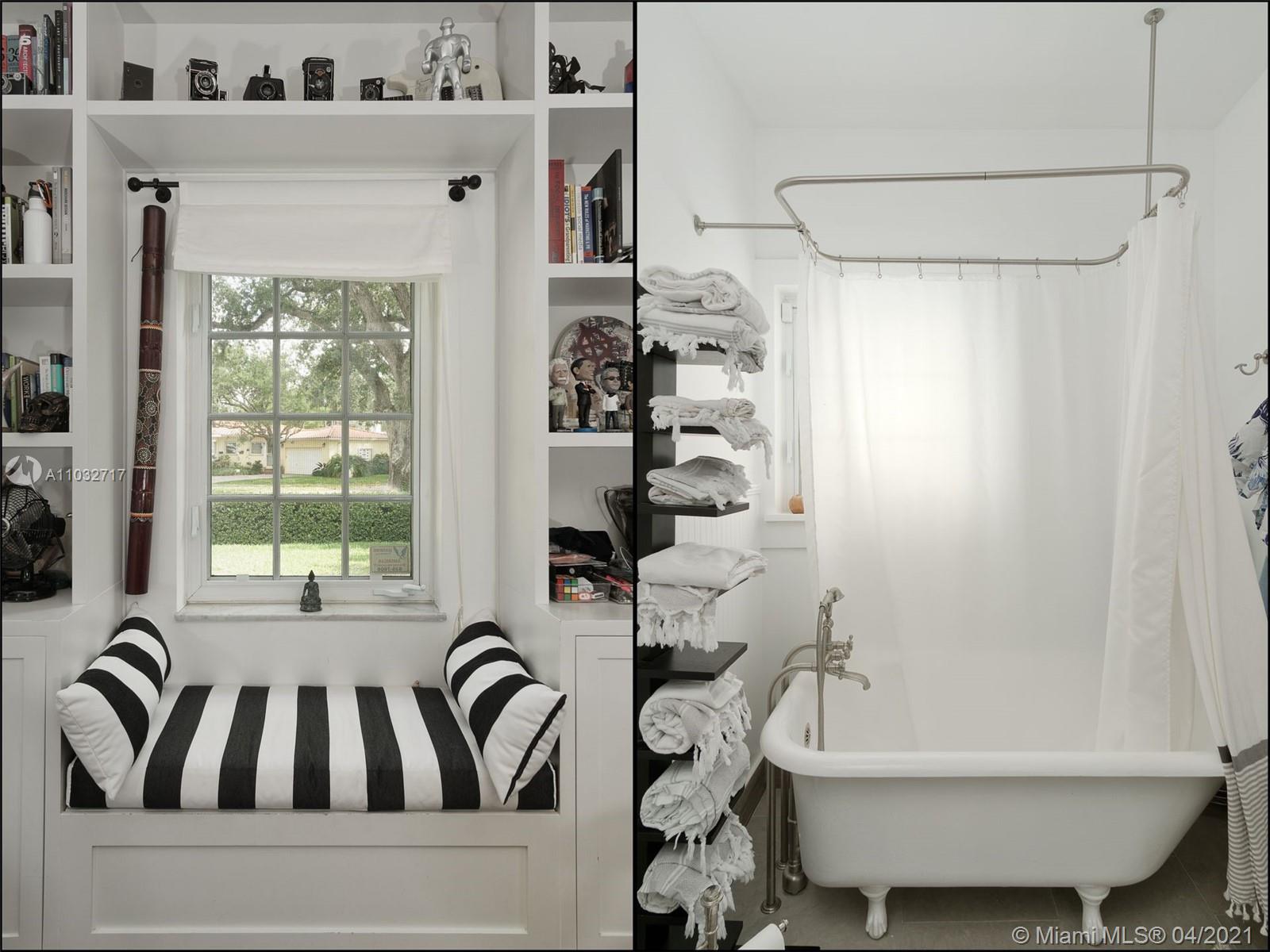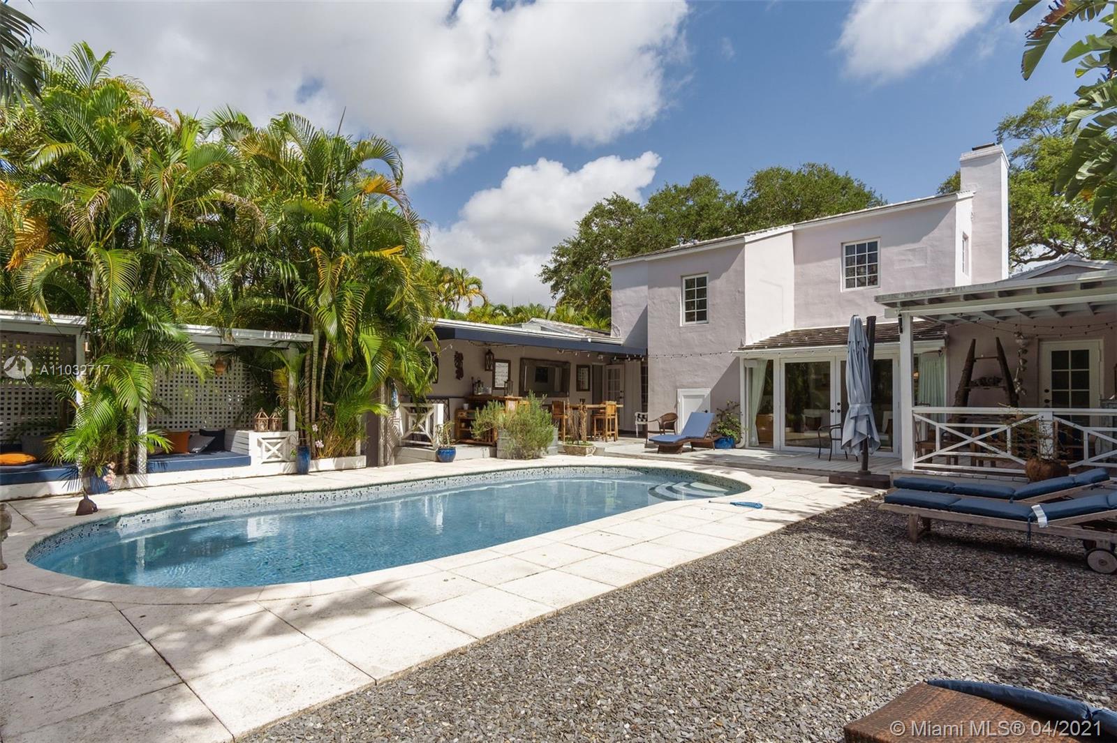 BEAUTIFUL 2 STORY HOME ON A GORGEOUS TREE-LINED STREET IN THE VILLAGE OF MIAMI SHORES. 2 BEDS AND 1 BATH UP PLUS 2 BEDS AND 1 BATH DOWN FOR A TOTAL OF 4 BEDROOMS AND 2 FULL BATHS. PRIVATE YARD WITH POOL AND COVERED PATIO PLUS AN ATTACHED ONE CAR GARAGE AND DRIVEWAY FOR PARKING. BIG KITCHEN WITH EATING BAR AND SITTING ROOM/FAMILY ROOM ATTACHED. BIG LIVING ROOM/DINING ROOM AND OPEN STAIRCASE TO THE SECOND LEVEL. READING ROOM/FLORIDA ROOM OVERLOOKING THE POOL AND GARDEN. BOTH BATHROOMS HAVE BEEN UPDATED. IMPACT WINDOWS, 2 ZONES OF A/C. WALK TO RESTAURANTS, CAFES, SHOPS, PARKS AND MORE. MOVE-IN CONDITION.
