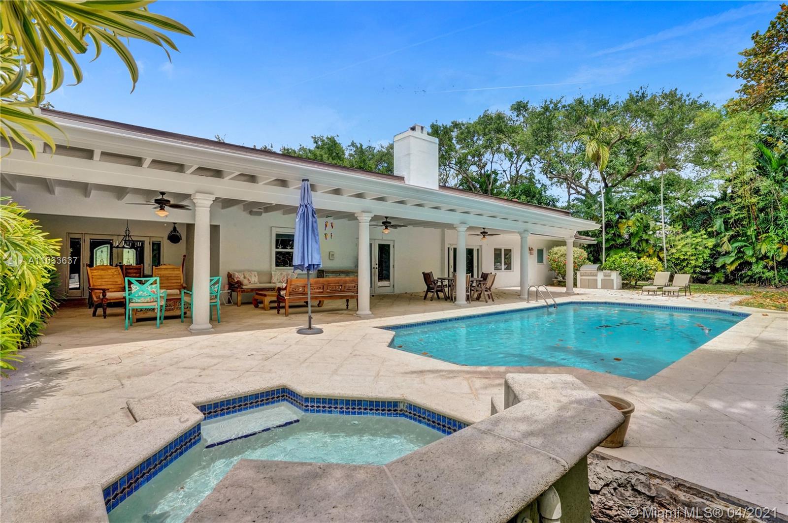 An extraordinary home located in Pine Bay Estates, one of the most desirable communities in Coral Gables. Nestled among beautiful trees, this 5-bedroom 3.5-bathroom single-story residence sits on a 22,940 sq. ft. lot. With a split concept floor plan, the master suite offers an oversized walk-in closet and an expansive bathroom. Additional features include an exceptional outdoor space for entertaining, a large backyard, a relaxing pool and jacuzzi area and a two-car garage. All of this paired with its location on a quiet street and ample exposure to natural light provide the ultimate relaxed living experience!