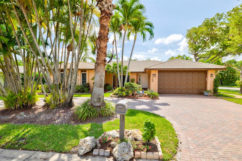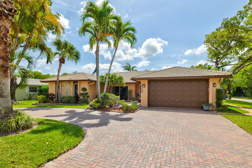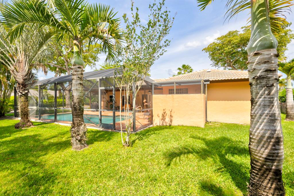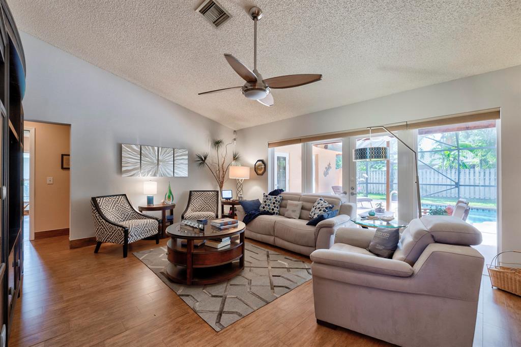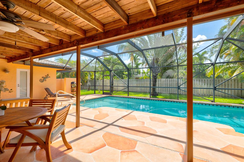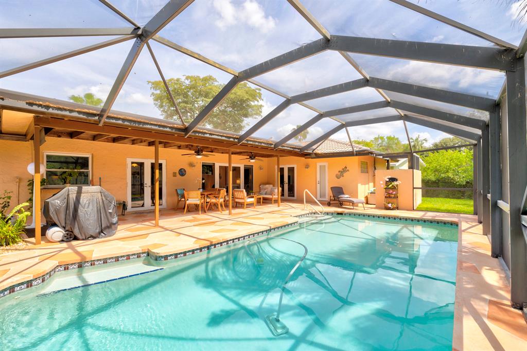 Lovingly maintained and tastefully updated 4 bedroom ranch home with pool on a corner lot. Impact windows, A/C 2019, newer appliances including brand new dishwasher. Top quality Thomasville cabinets in kitchen and second bathroom. Four large bedrooms, living room, family room, dining room and eat-in kitchen. Laundry room with cabinets and real sink. Extended screened-in lanai with room for outdoor shower. Beautiful mature neighborhood with NO HOA FEES, walking distance to Ramblewood Elementary School and dozens of shops and restaurants.
