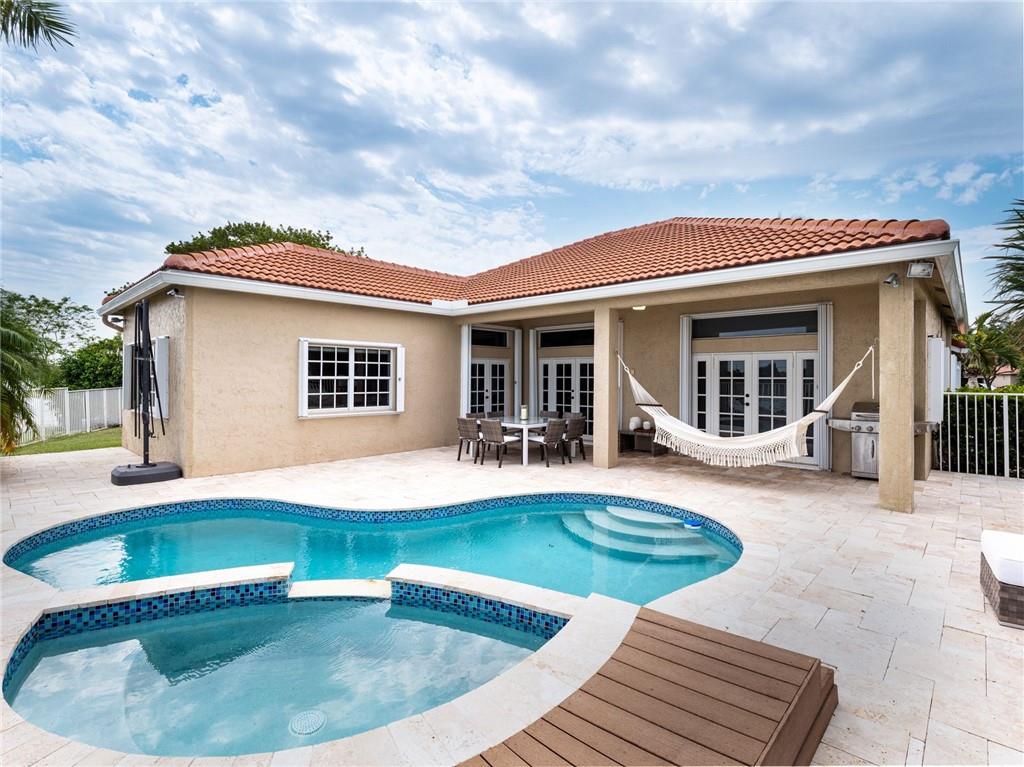 Dream Homes can come true. Spectacular property with The best location! Used as a second home and Model Perfect. Cul de sac lot with outstanding private lake views.*** New Roof in 2019***. Renovated with marble floors in all living areas, wood kitchen cabinets and baths, granite tops, stainless steel appliances, accordian shutters, French doors, covered & extended marble patio. Pool & spa, lush landscape and much more. 4 bedrooms with 2.5 baths. Open concept, 2 car garage. Walking distance to Gator Run and close to I-75 and Publix. The gated community of Meadows offers: Club House, pool, basketball, playground and green areas.