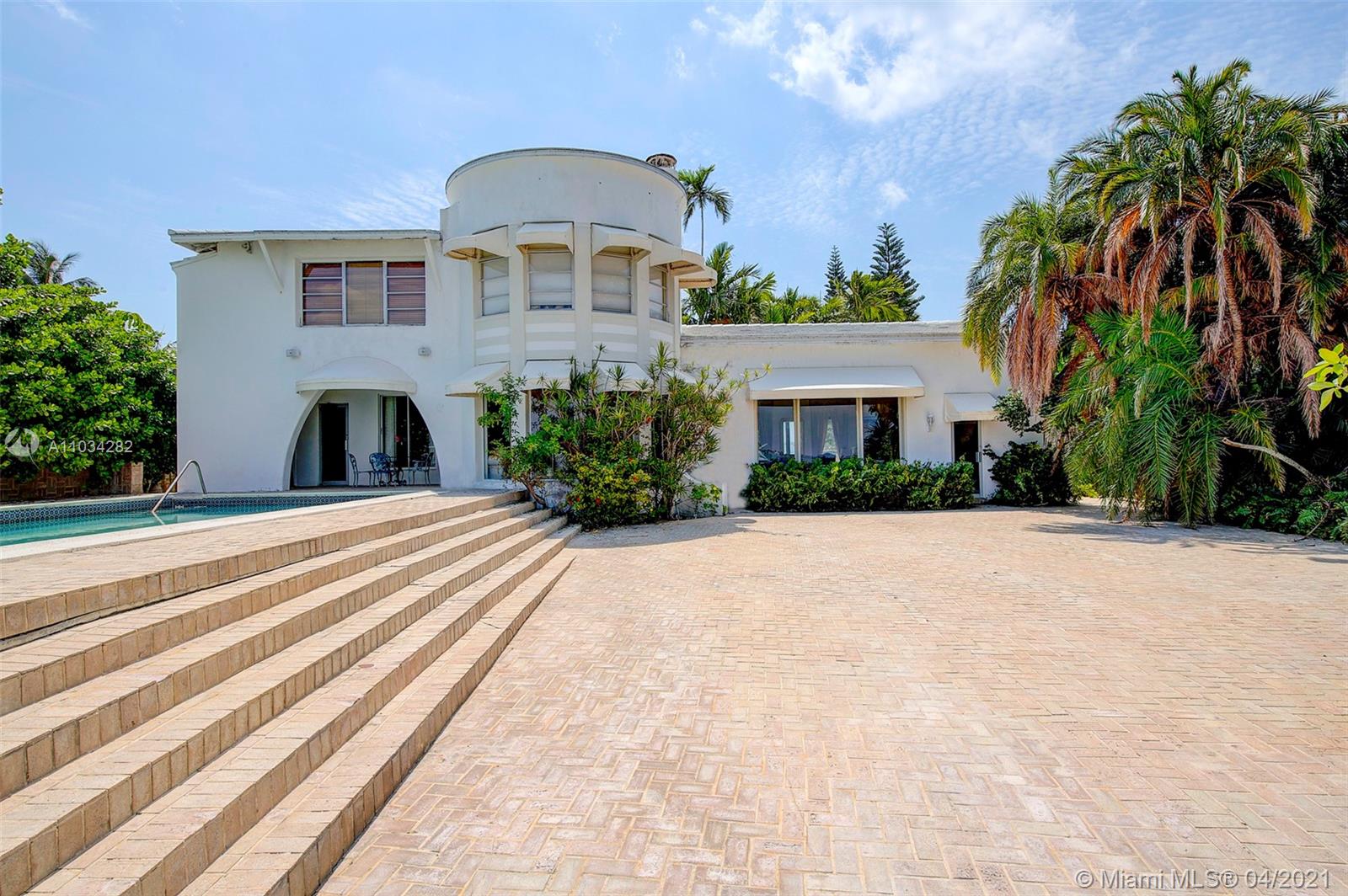 This premier waterfront estate features an unobstructed wide Biscayne bay view with one of the largest docks on Miami Beach at 16'x54' newly renovated in 2019. The expansive pool uniquely sits a little more than 1 foot from the water's edge. This is the perfect location to build your dream home or renovate the existing Art Deco jewel featuring a chef's kitchen, breakfast room, formal dining room, original keystone marble floors, a grand fireplace with a stately keystone mantle and a Great room with a Cathedral ceiling. 2 story rotunda features water views and upstairs bedroom with 20 ft. dome ceiling. Enjoy fishing, watching dolphins and manatees, swimming in the pool, laying out in the sun, gorgeous sunsets and "Moon over Miami" views on this special piece of heaven.