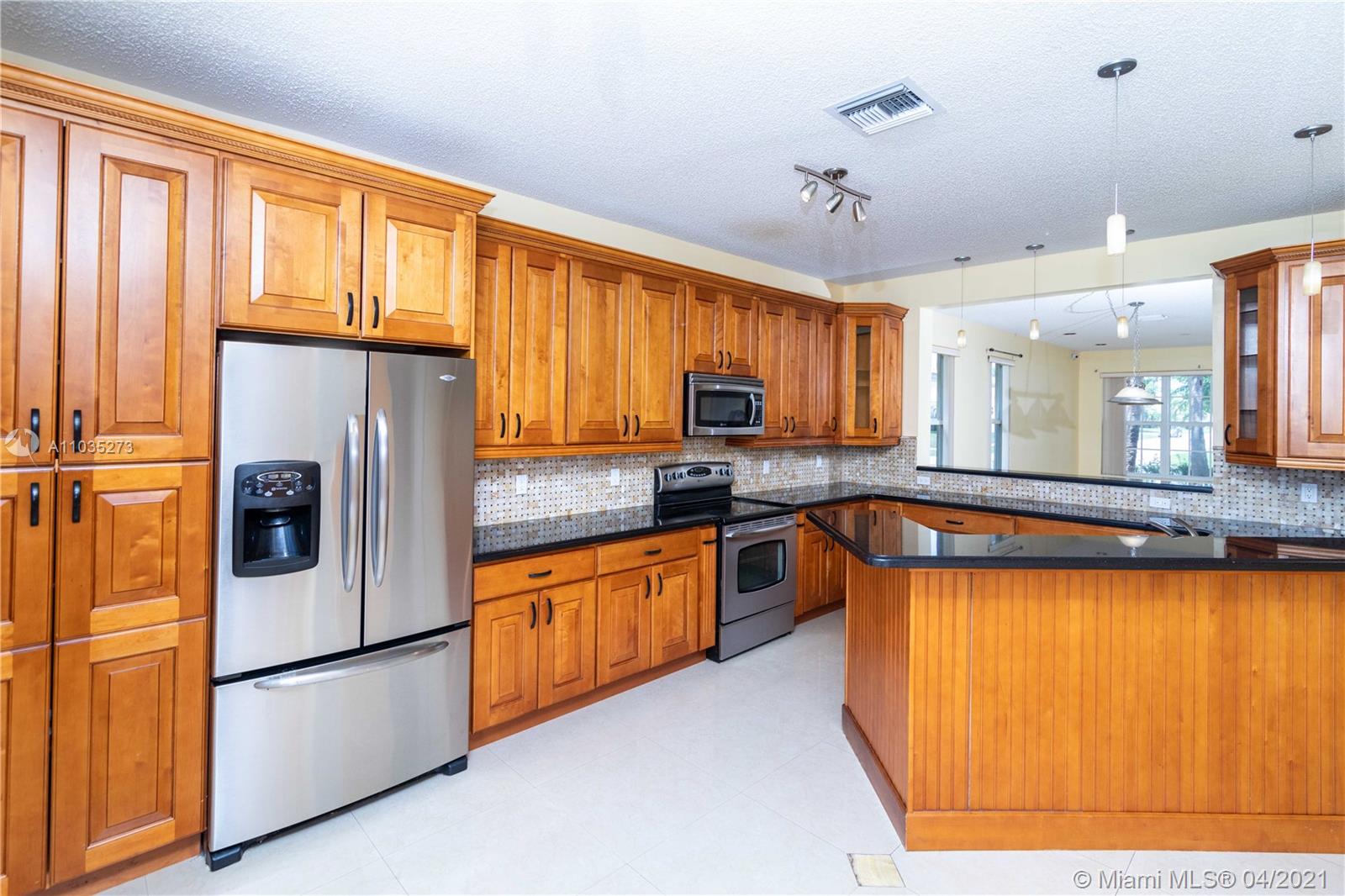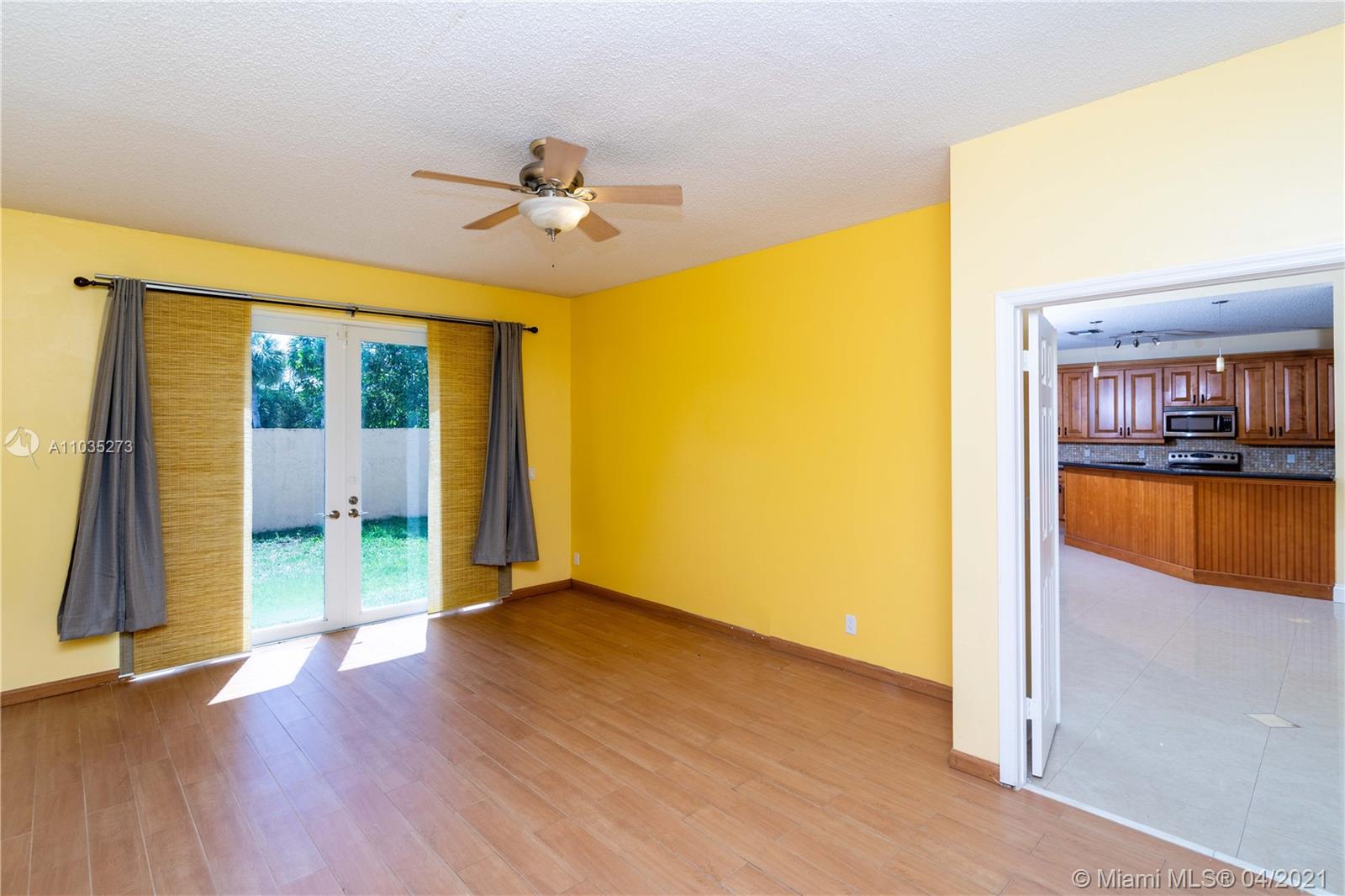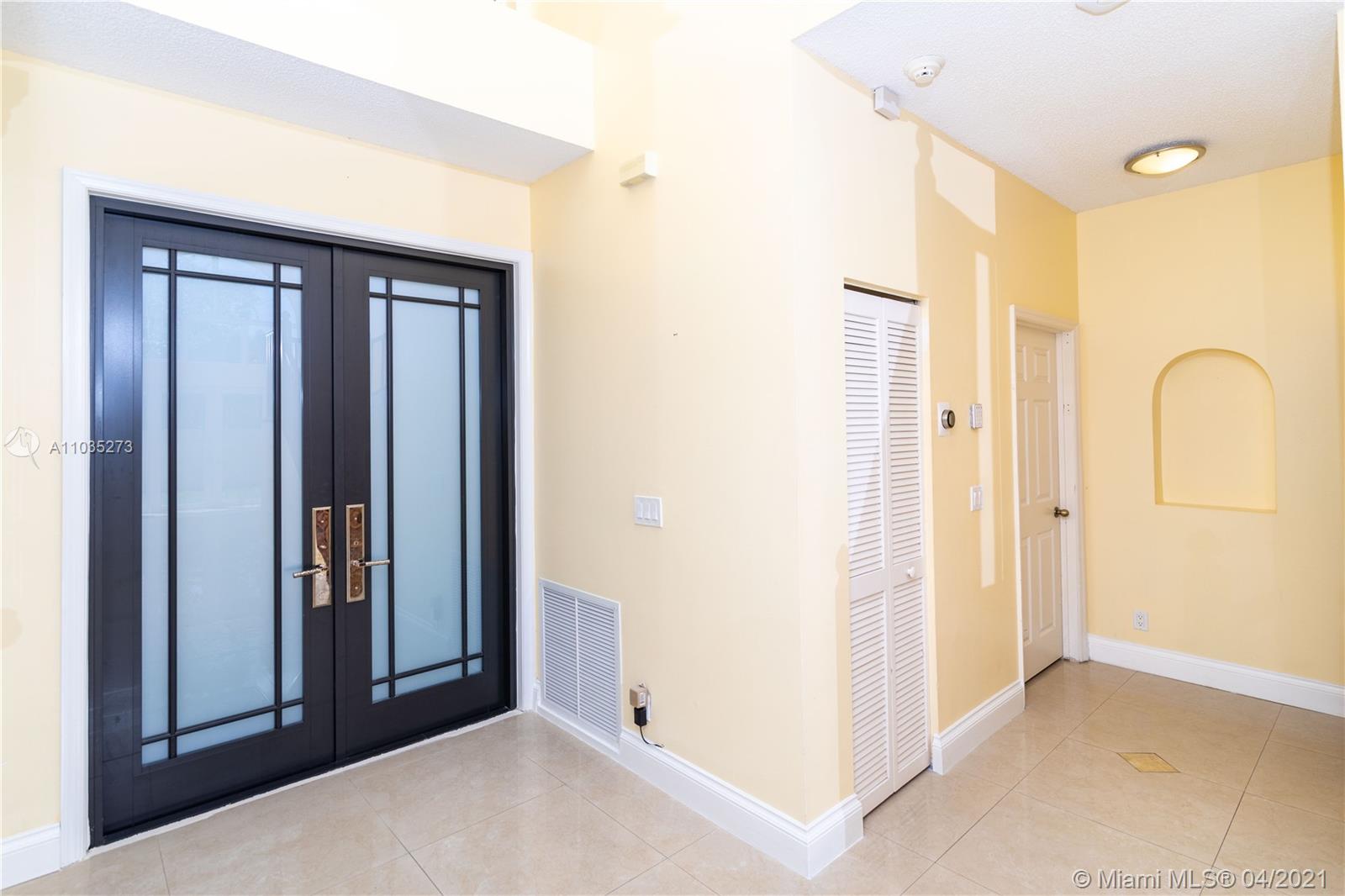 PEACEFUL AND HAPPY NEIGHBORHOOD WITH A-RATED SCHOOL ACROSS THE BOARD AT YOUR FINGERTIPS! You will be greeted by a 2014 ROOF, COMPLETE impact windows, and a BRAND NEW beautiful IMPACT front door! // Walk in to observe high ceilings and a large open space. // Ceramic marble-like tiles throughout family living space with mosaic details at entrance. Bamboo wood floors upstairs and laminate wood floor in master. // Kitchen has sleek black GRANITE countertops with tiled backsplash and wood cabinets. // Half bath is remodeled and upstairs bathroom has a BRAND NEW double-sink vanity installed April 2021. // 2017 A/C system with Nest Thermostat and SHINY NEW DUCTS installed Nov 2020. // SECURITY CAMERAS included with complete DVR system. // Backyard is a blank canvas ready for your outdoor oasis!