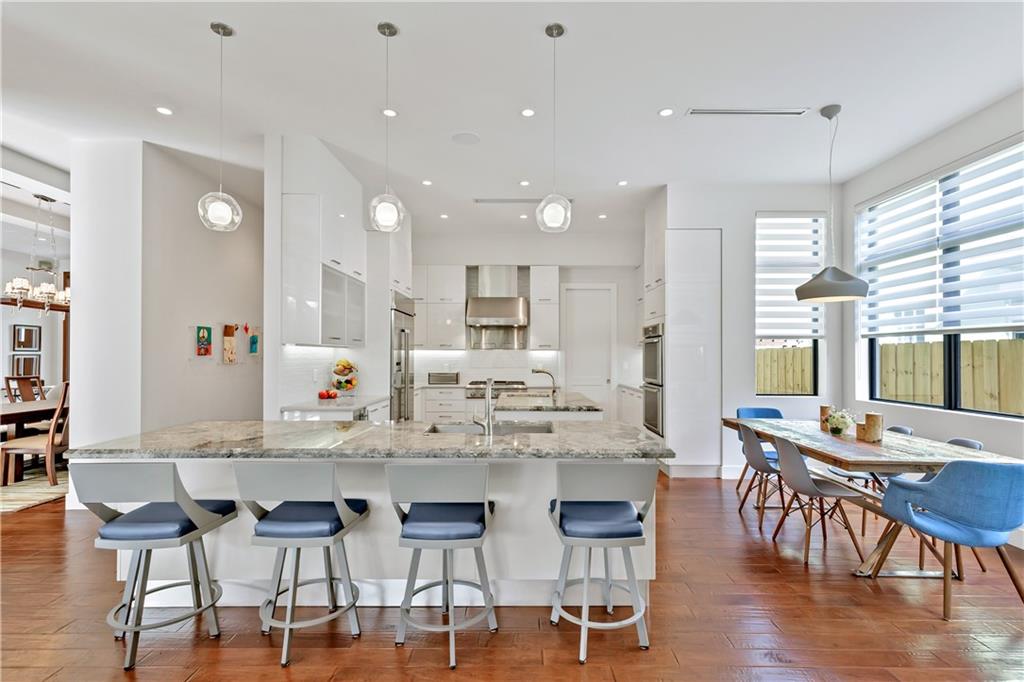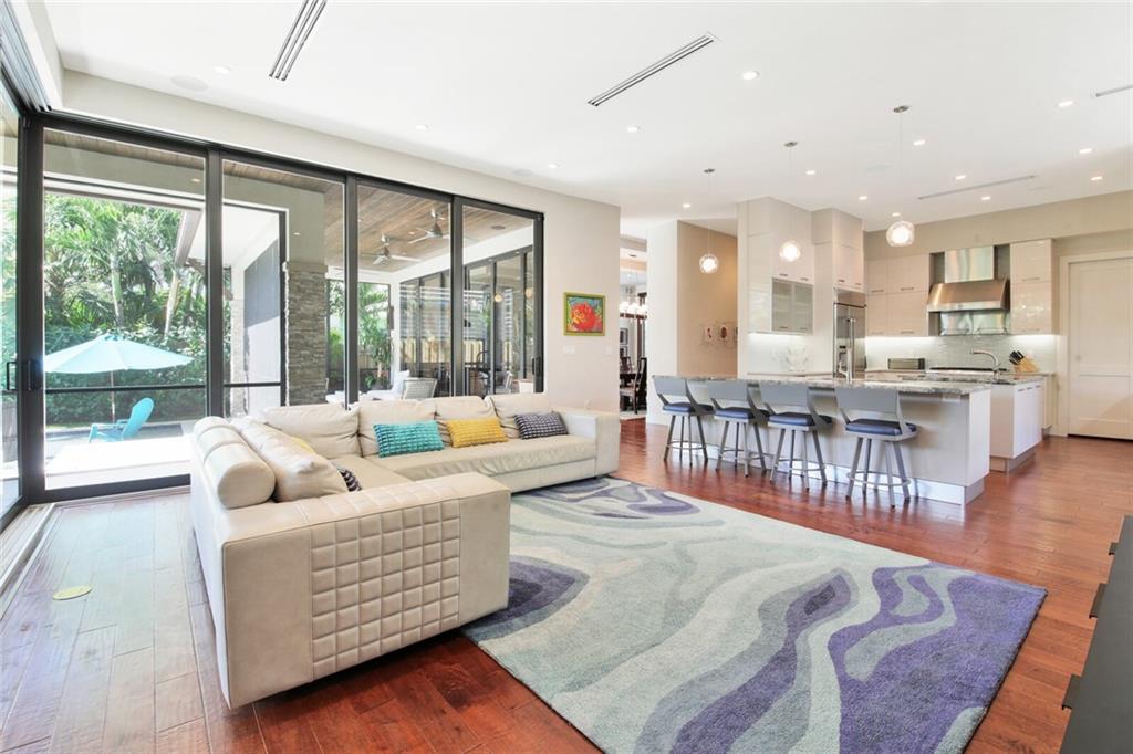 Striking modern transitional home located in the heart of Victoria Park. Thoughtful design elements and meticulous detail make this custom Gulf house a neighborhood favorite. Elegant, impact pocket sliding doors open out to spacious, wraparound 650 sq ft screened lanai, blending the indoor & outdoor spaces for effortless entertaining. Tropically landscaped, east-facing yard features turf and heated saltwater pool w/childfence & sunshelf for year-round enjoyment. This 4 bedroom/3.5 bath open plan home includes volume ceilings, custom imprinted concrete fireplace & handscraped hardwood flooring. Dual island kitchen w/Thermador & Jenn Air appliances, walk-in pantry & breakfast seating. Generous primary suite w/dual closets & stunning bath. Walking distance to dining, markets, parks & Las Olas