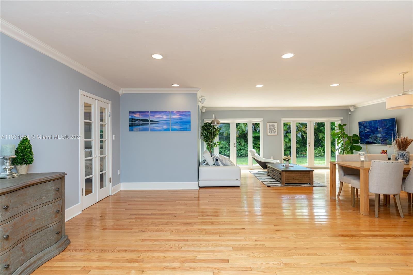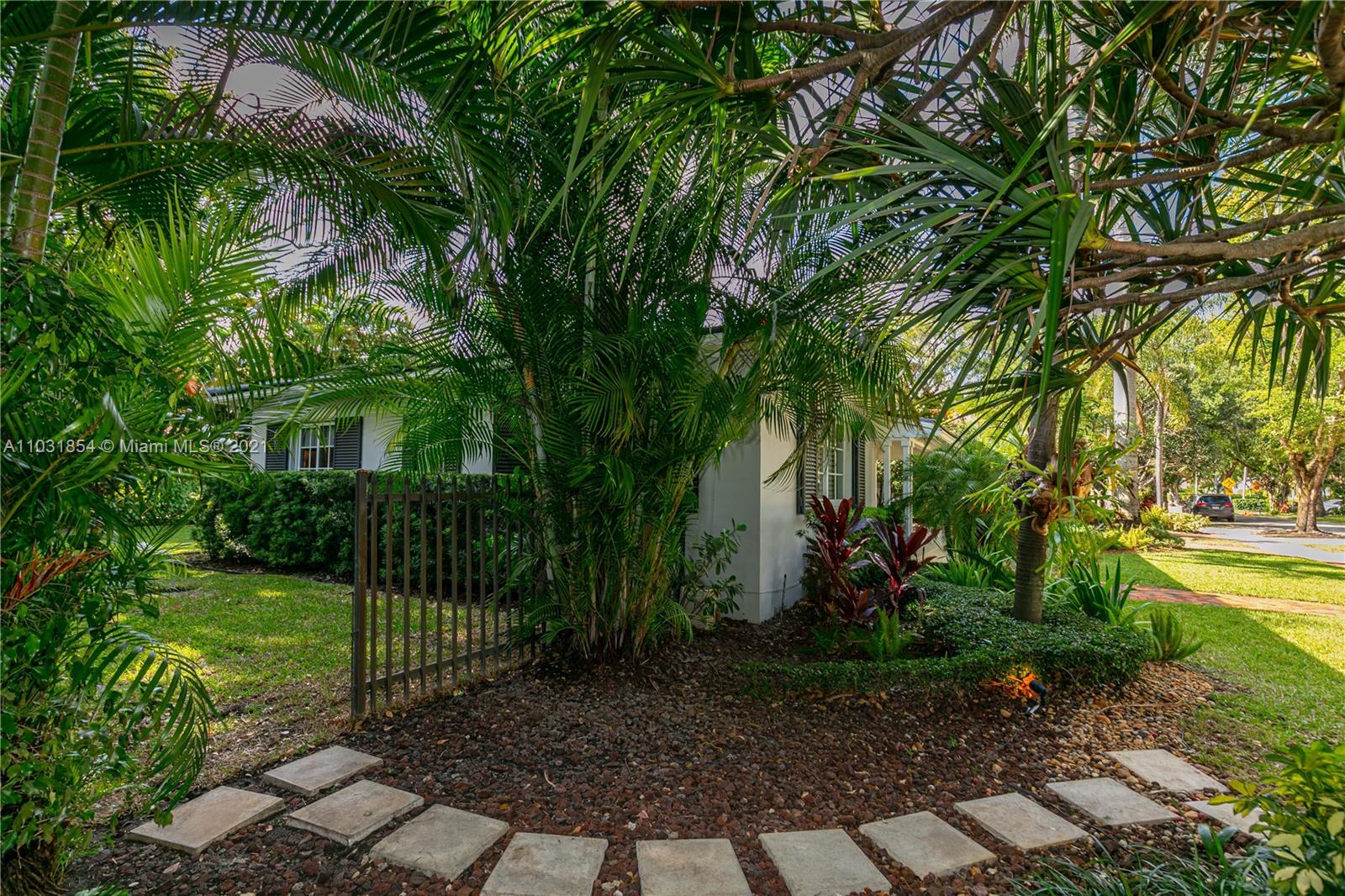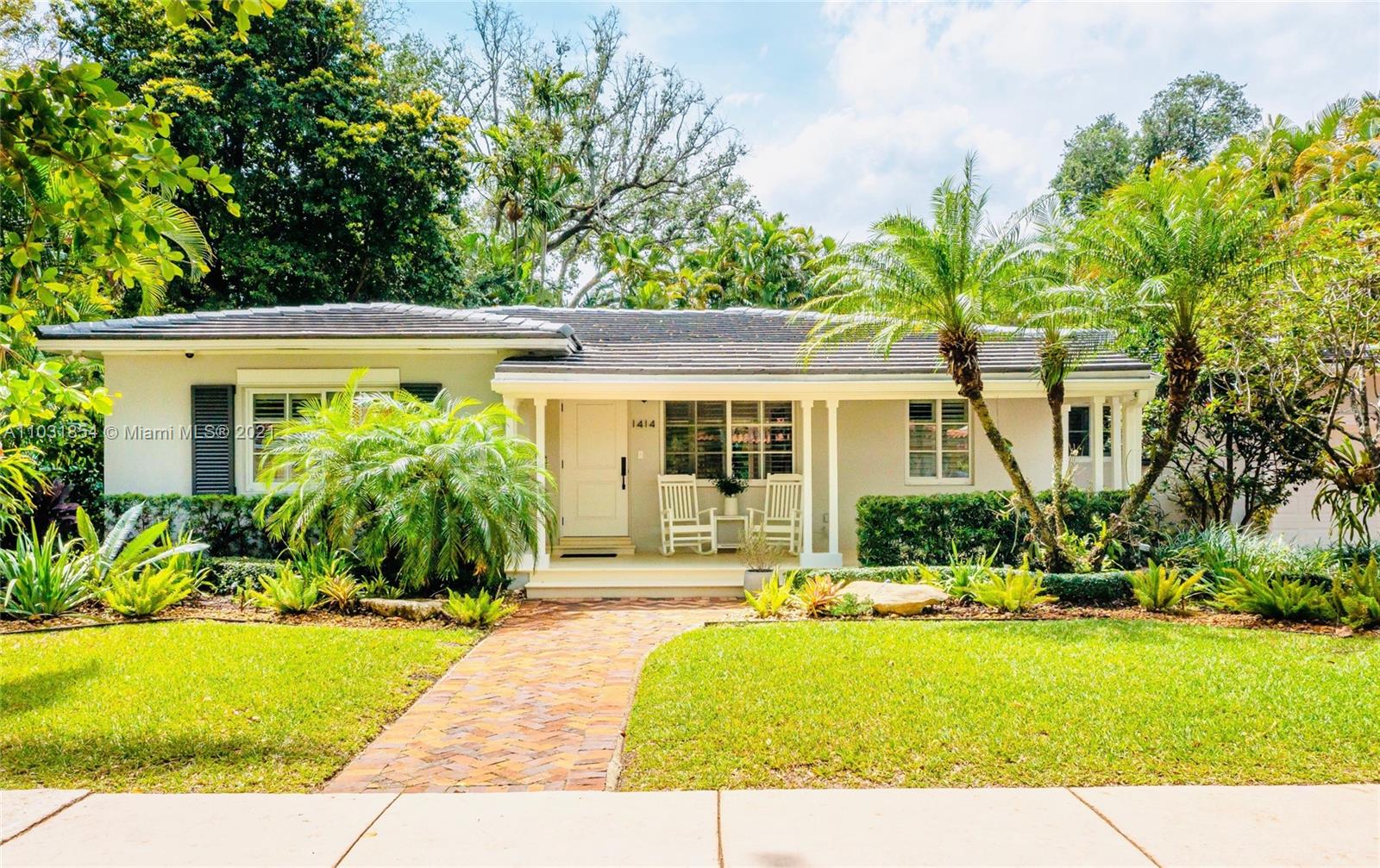 Drenched in natural sunlight, this impeccably renovated 1,671 sf 3 bedroom, 2 bath home in the North Gables is on an oversized, professionally landscaped, 10,500 sf, corner lot. Every detail has been addressed complete with elegant wood floors & Italian tiles. Also has hurricane impact windows, recessed lighting, new electrical wiring & panel, new PVC plumbing, tankless water heater, CCTV, w/gorgeous built in closets, plantation shutters & window treatments. Tastefully done doors, baseboards, and molding. As bonus the garage has newly installed door & is insulated with new flooring and air conditioned with Mitsubishi split AC. Given the double lot the home can be expanded to 4,300 sf with room for an ample pool. Property totally fenced in as well. Look no further if you are ready to buy!