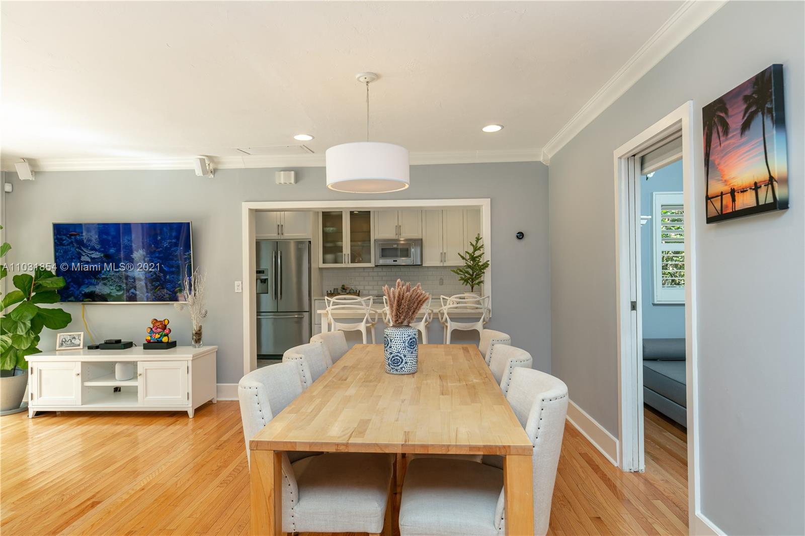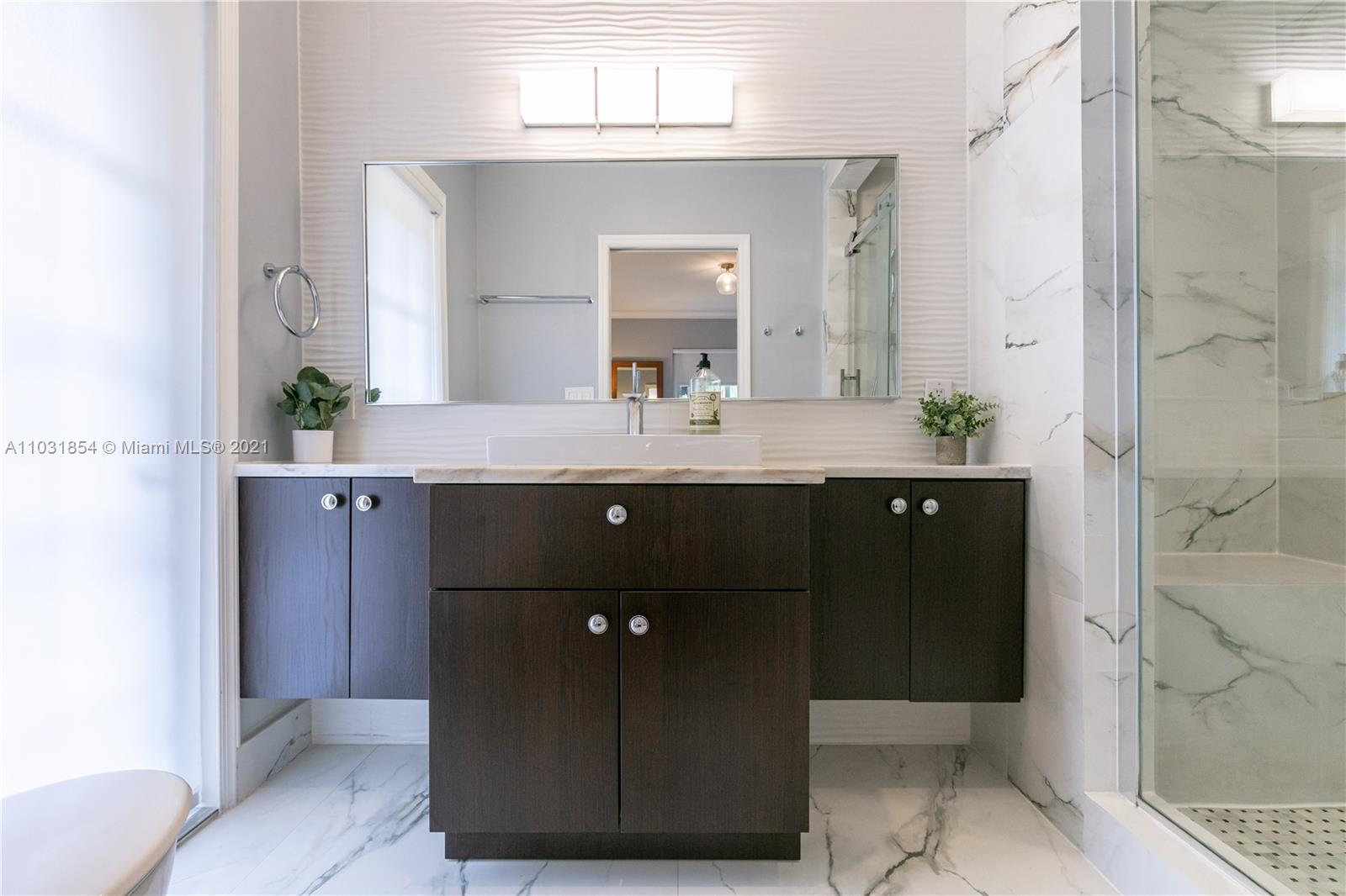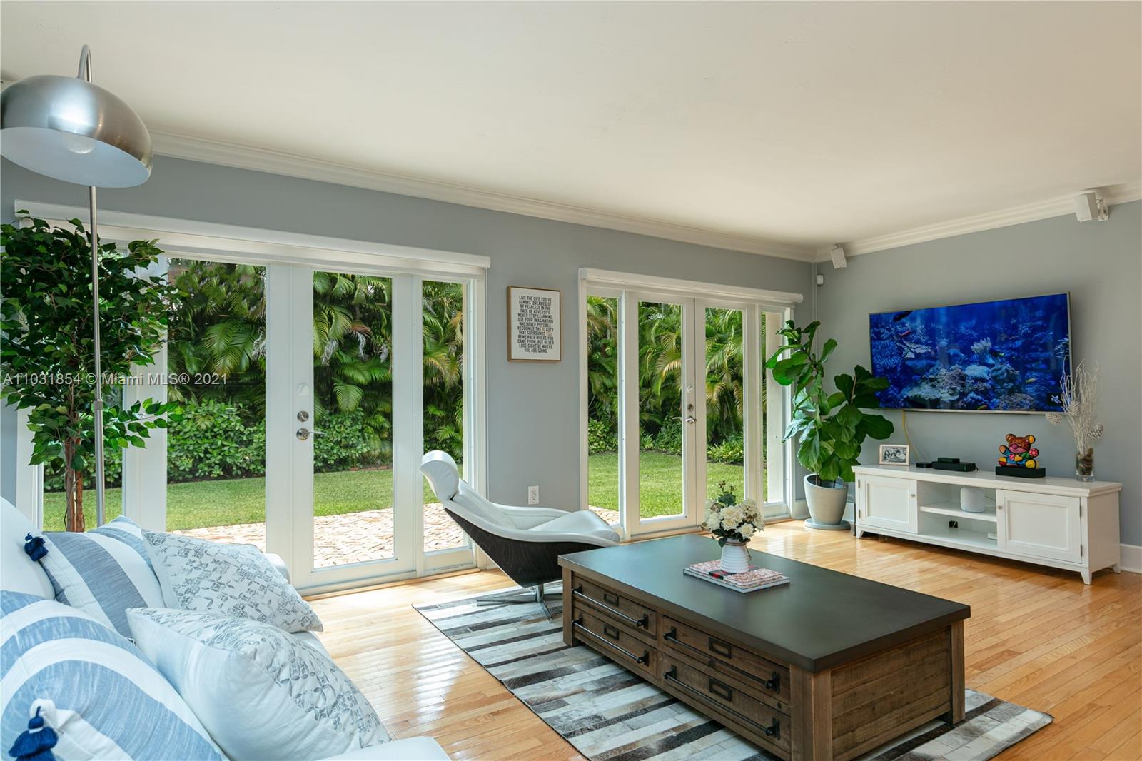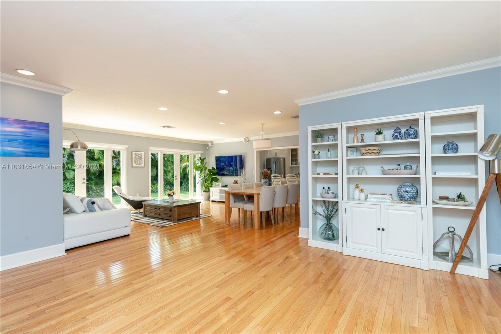 Drenched in natural sunlight, this impeccably renovated 1,671 sf 3 bedroom, 2 bath home in the North Gables is on an oversized, professionally landscaped, 10,500 sf, corner lot. Every detail has been addressed complete with elegant wood floors & Italian tiles. Also has hurricane impact windows, recessed lighting, new electrical wiring & panel, new PVC plumbing, tankless water heater, CCTV, w/gorgeous built in closets, plantation shutters & window treatments. Tastefully done doors, baseboards, and molding. As bonus the garage has newly installed door & is insulated with new flooring and air conditioned with Mitsubishi split AC. Given the double lot the home can be expanded to 4,300 sf with room for an ample pool. Property totally fenced in as well. Look no further if you are ready to buy!