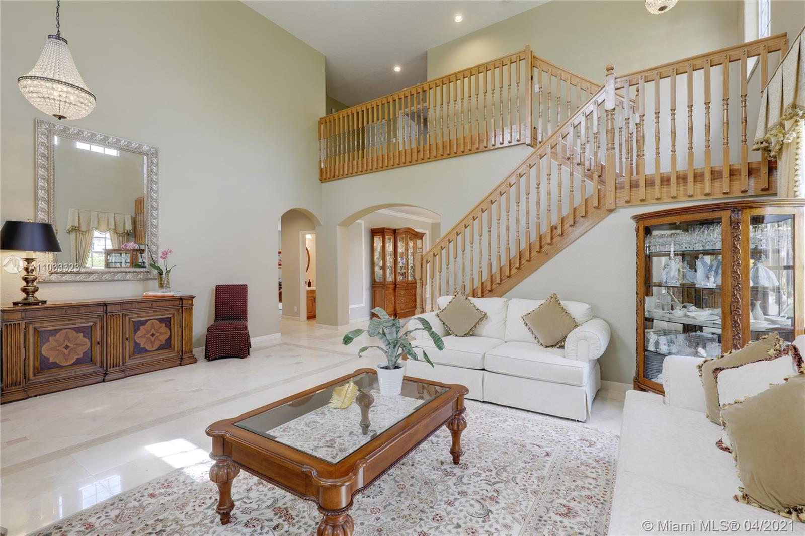 Stunning two-story home w/ 5 bedrooms and 3 bathrooms located in gated community The Ridges. This home features high ceilings, spacious living, dining, and family rooms surrounded by windows, allowing lots of natural light in; marble floors throughout the first floor and wood on the second floor; one bedroom and full bathroom are located on the first level. Kitchen w/ wood cabinets, granite countertops, and stain steel appliances. Oversized master suite w/ seating area, office space, and large walking closet. Large patio w/ pool and jacuzzi ideal for entertaining. Accordion hurricane shutters. Community amenities include 24-hour security, walking trails, clubhouse with pools and water playground, tot lots, basketball, soccer & pickleball courts. Close to I-75, shopping and restaurants.