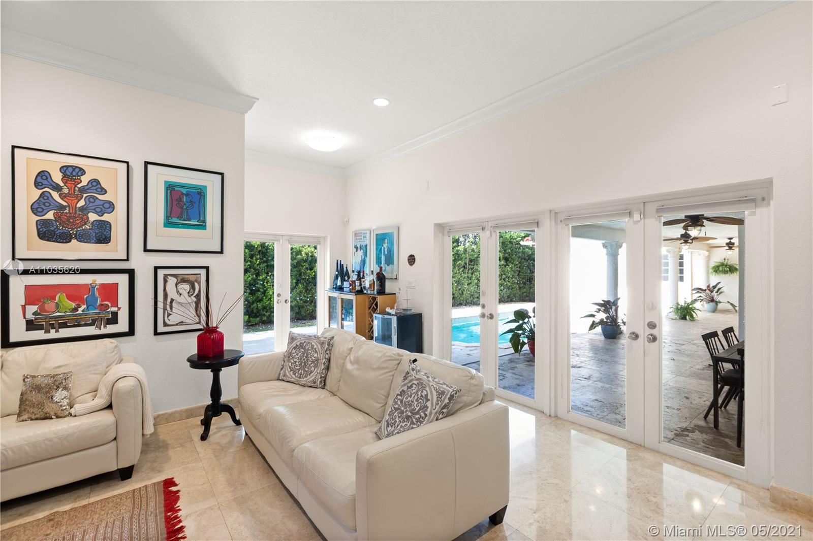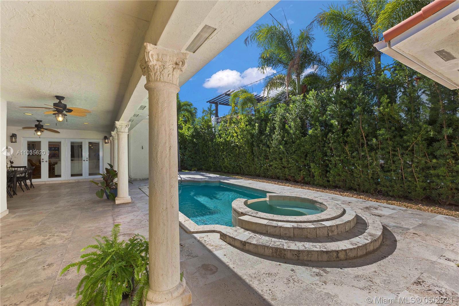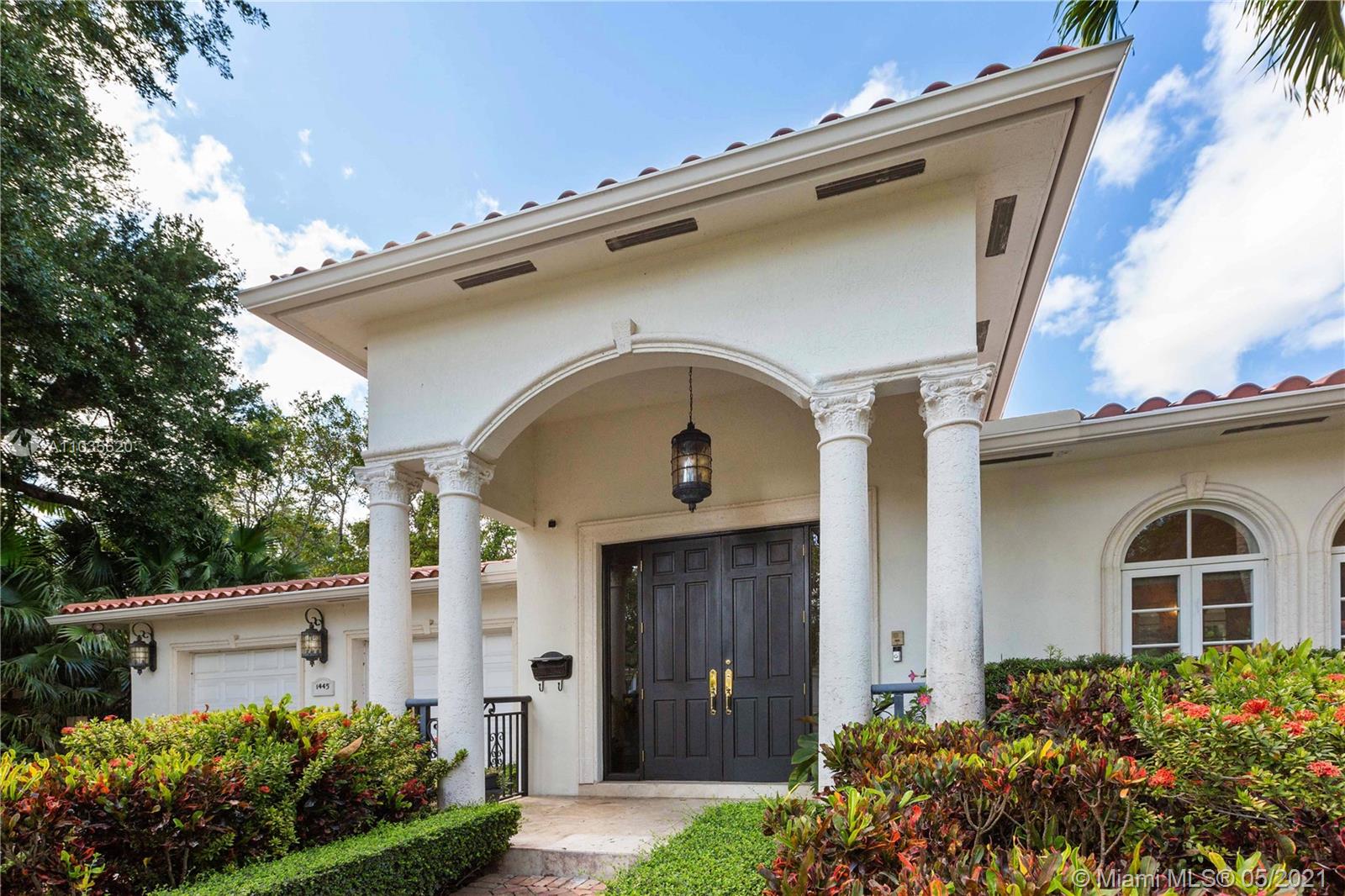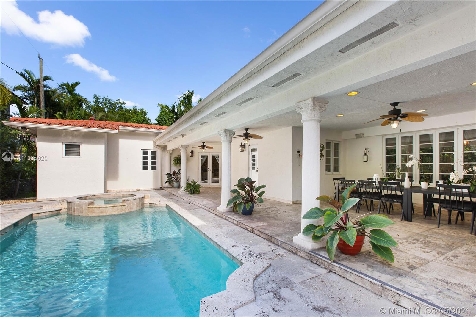 Beautiful Mediterranean Home in Coral Gables. 4-bedrrom, 3.5 baths on a large 12,500 sq.ft. lot. This beautiful home has an open floorplan, updated kitchen with wood cabinets and stainless appliances, impact windows and doors throughout and a two car garage. Travertine and wood floors as well as a great covered patio overlooking the pool and spa. This home will not last on the market, so hurry and put your best foot forward.