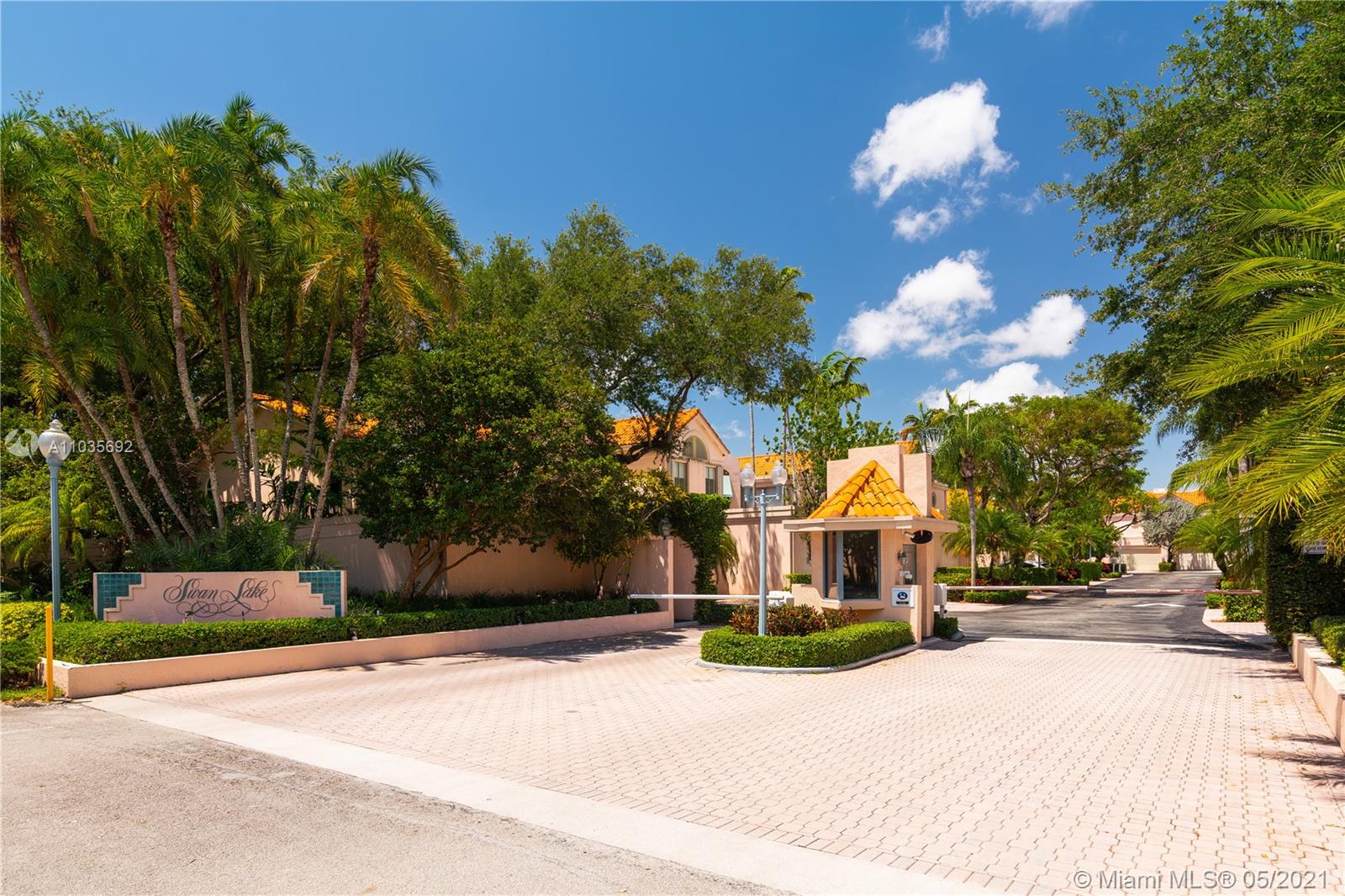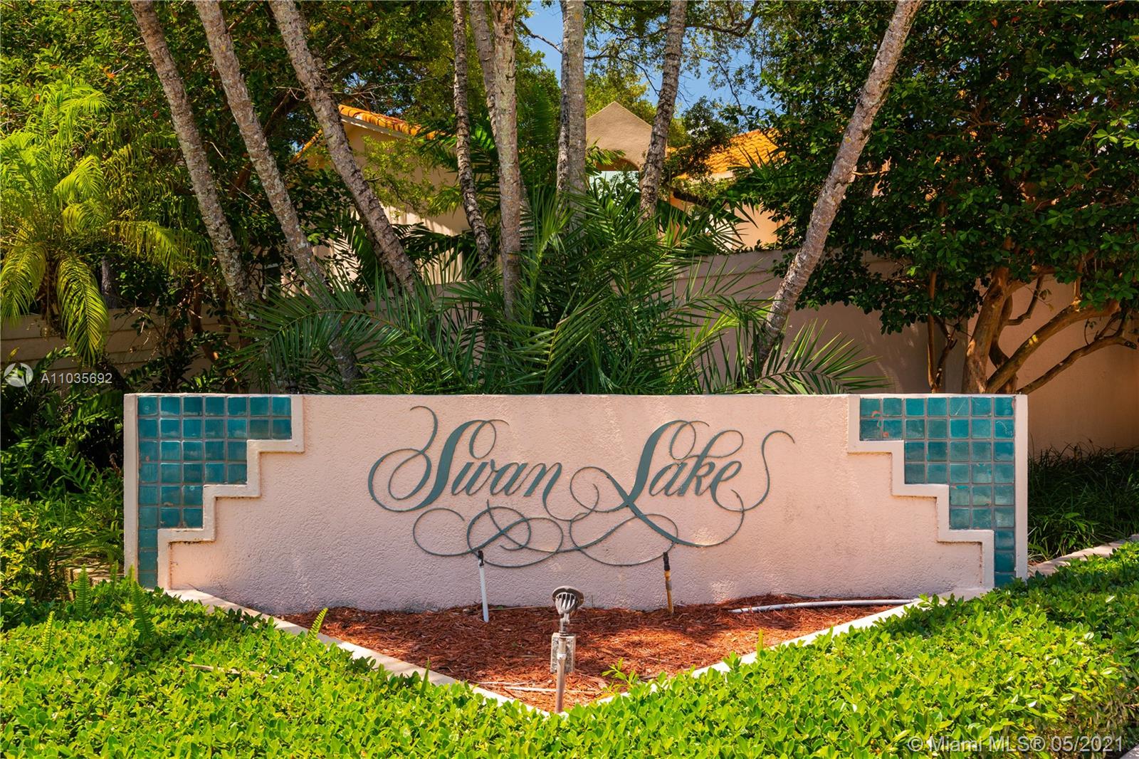 Sunsets, waterfalls, and a soothing lake will be yours to enjoy from your two private patios at the charming, boutique enclave of Swan Lake. Located in a prime location in North Pinecrest, this community offers full time guarded security as well as a clubhouse and pool. This two-story, two-bedroom unit has its own private elevator as well as lots of closets, storage and built ins. An open concept kitchen/dining/living room provide an easy flow with 24-hour views of the lake. There is a large media/sitting room located adjacent to the master suite. This unit is the only lakefront unit currently for sale in Swan Lake. Please see the photo for a view of the floorplan. A Very Special Home.