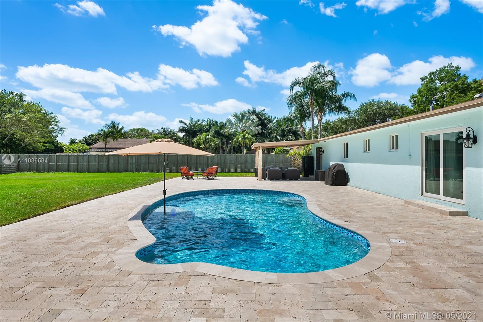 Welcome home to this spectacular country charmer in Southwest Ranches! This turn key home sits on over an acre corner lot and has been FULLY updated within the last 4 years, leaving no expense to spare. This 3 bedroom 2 bath + bonus room home offers an open layout, spacious updated kitchen with stainless steel appliances, granite countertops and 42" cabinets. Porcelain floors throughout, impact windows, newer roof and A/C, new tankless water heater, 50 amp generator hookup, new travertine driveway & patio with new heated salt water pool. Home offers a detached over 1000sqf barn with 240v power & water, with RV hookup. Deep well system with Dual jet pump. 8' panel fence surrounding the whole property No HOA!! Bring your horses, pigs or whatever your animal of choice is!!