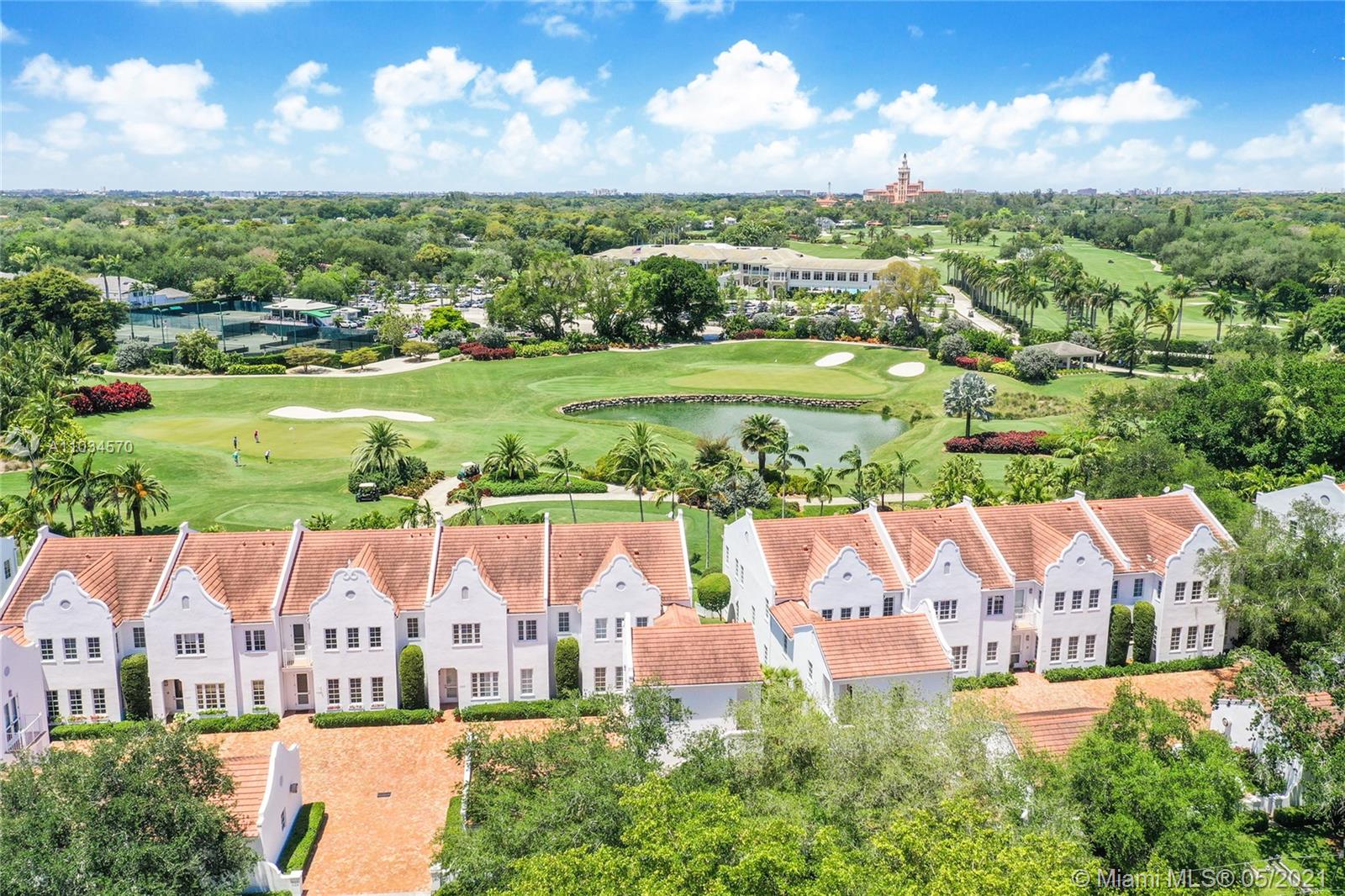 Village of Campo Sano | We present you this handsome end unit villa perfectly positioned on the 6th hole of the Riviera Golf Course. Mesmerizing views of the greens, lake, sand traps, swaying palms and the famed Biltmore Hotel at a distance. Inside, features include a porch + foyer entry, wood floors, tall ceilings, plantation shutters and impact windows/doors. Its kitchen was updated a few years ago and done so with style + function --finished with high grade appliances. The ‘speakeasy’, otherwise known as the lounge— is just the perfect place to unwind with your favorite libation. The upstairs main suite affords sensational vistas, large closets and loads of windows. The remaining bedrooms are spacious + offer flexibility in their use (floor plan available). Easy living awaits you here.