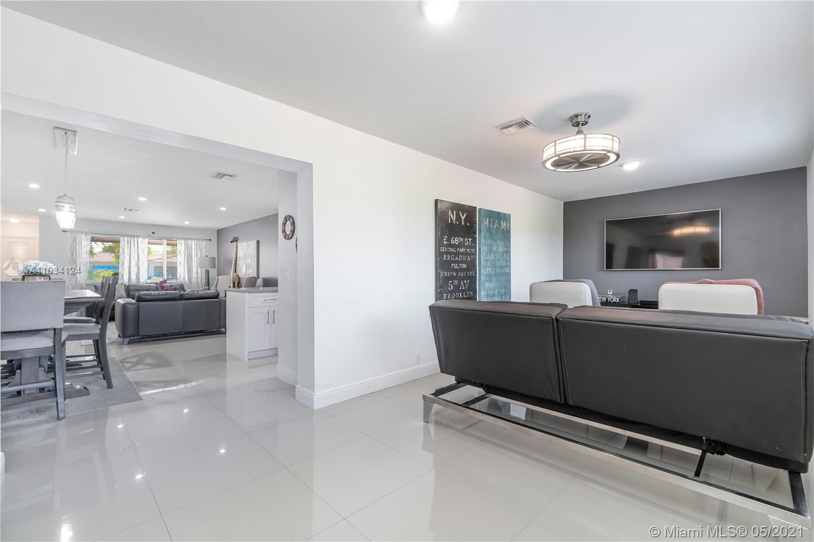 This beautiful 3/2 w/ converted garage single family home in Hollywood Hills is on the market! It is freshly painted on the exterior and features amazing white tile flooring throughout the interior. The kitchen is upgraded with Stainless Steel appliances in a very modern style. Both bathrooms are remodeled as well. It also features LED lighting and new ceiling fans. All windows are impact so the buyer can feel protected and also get the full insurance credit. New A/C , New tankless waterheater. There is also a camera security system that oversees the house in and out. The backyard is very spacious and beautiful with enough room for a pool. You really don't want to miss out on this one. Open house 5/15/2021 Saturday 2:00pm-5:00pm