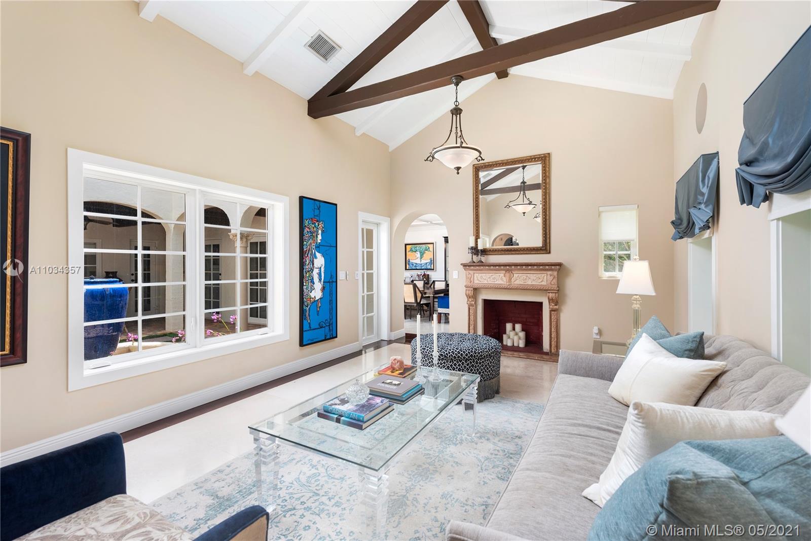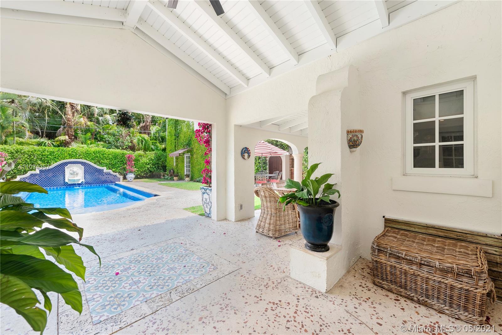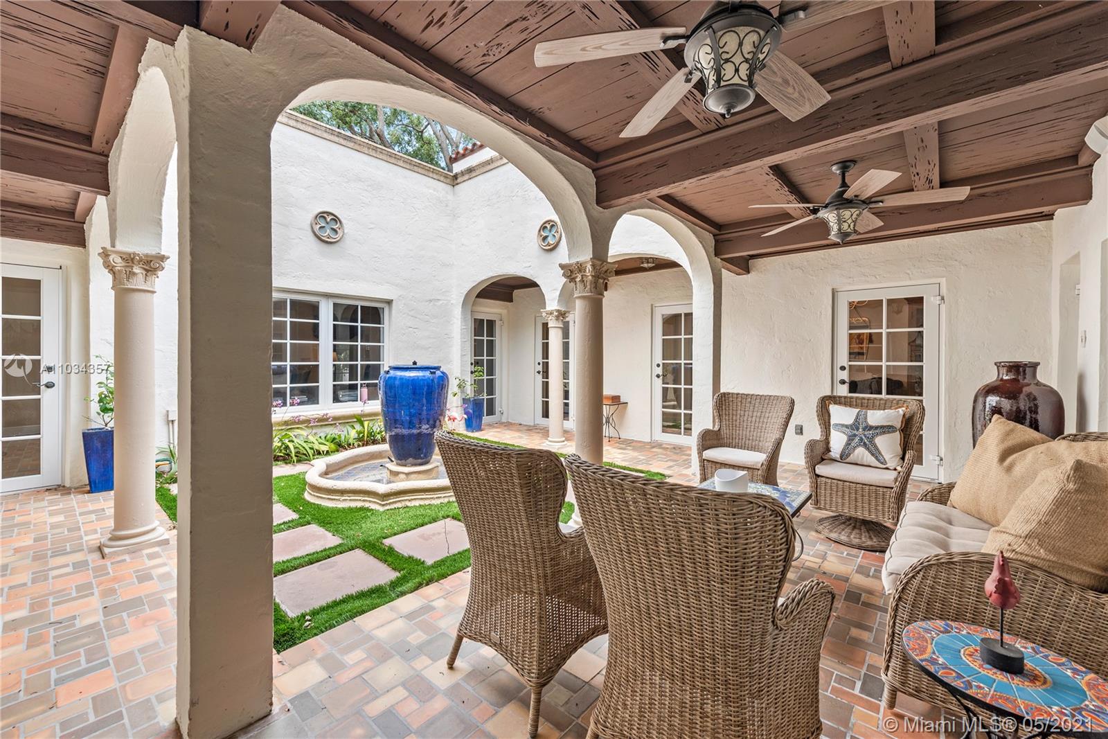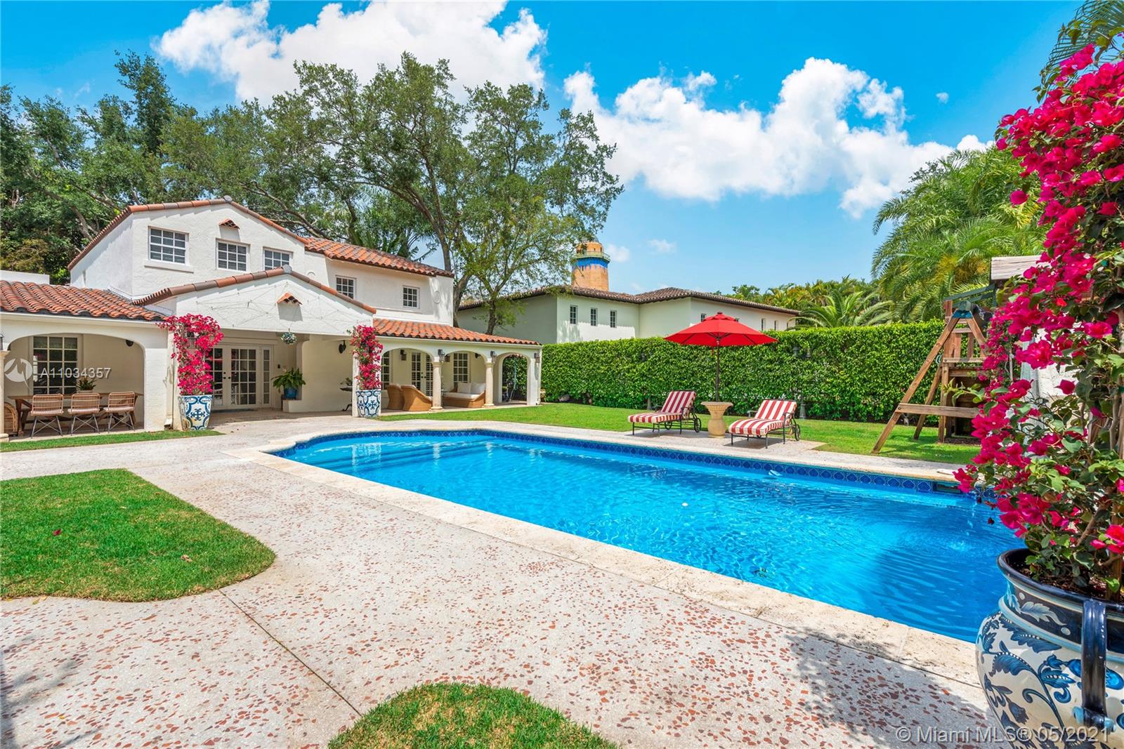 Classic 1920’s Old Spanish beauty, located near the landmark Alhambra Water Tower, is exquisitely renovated throughout. Centered by a light-filled courtyard, the 3/2.5 main house features a glamorous 2nd floor master suite with his & her walk-in closets, an eat-in kitchen with gas stove, living room with vaulted ceilings & fireplace, temperature-controlled wine cellar & family room that opens to the extensive covered patio & pool area. Connected to the main house via a built-in summer kitchen, the 2-story guest house has cabana room & gym on the ground floor & a full nanny’s apartment on the top floor. Move-in ready with a new roof, impact windows & doors and Crestron smart home system, this house is walking distance to Granada Golf Course & minutes to Downtown Coral Gables & the airport.