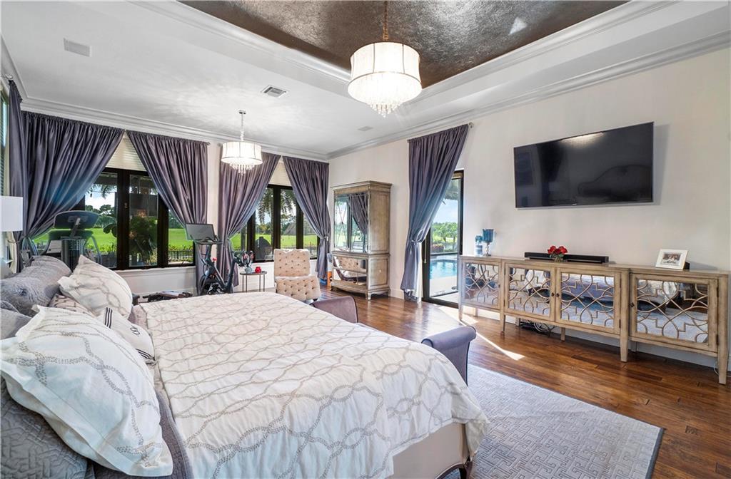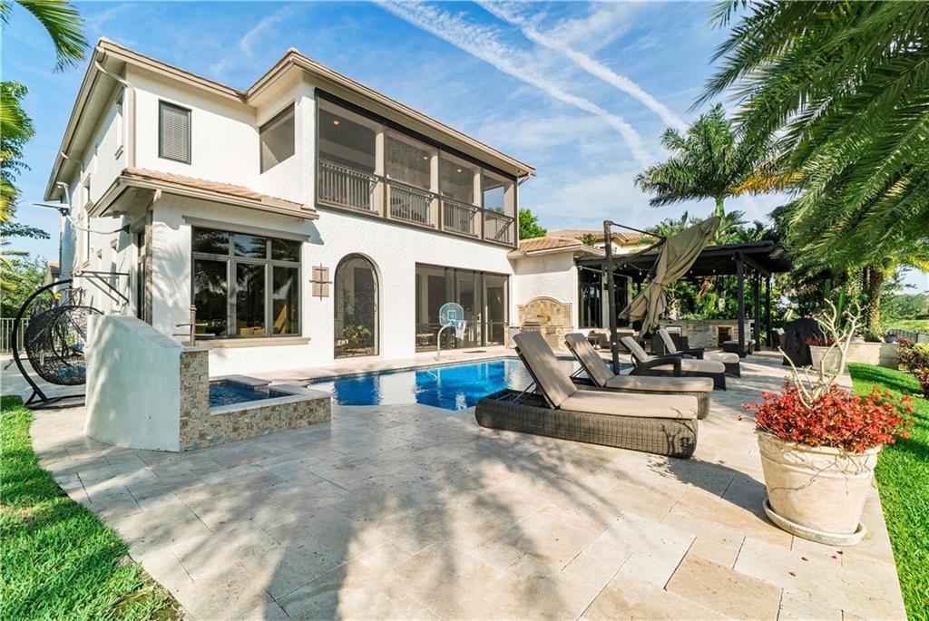 One of a kind estate home with 6 beds, 4 full & 2 half baths, on huge lot w/ fairway & lake views in Parkland Golf & CC. Remodeled & upgraded masterpiece w/ new family room custom wood wall unit on marble, new quartz counters in kitchen, double oven, white cabinets, ss appliances. New flooring in main living areas, built in bar off of dining room, contemporary fixtures & window treatments throughout, coffered wood ceilings, wood stairs w/ wrought iron rails & 2 balconies. Remodeled pool & patio area w/ summer kitchen, marble pavers, fire pit & outdoor gym. Minorca model expanded w/ 6th bedroom used as game room but could be 2nd master. Oversize master custom closet, lush landscaping, flat concrete tile roof! PGCC has resort pools, gyms, tennis, spa, restaurants & fun!