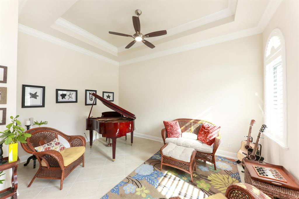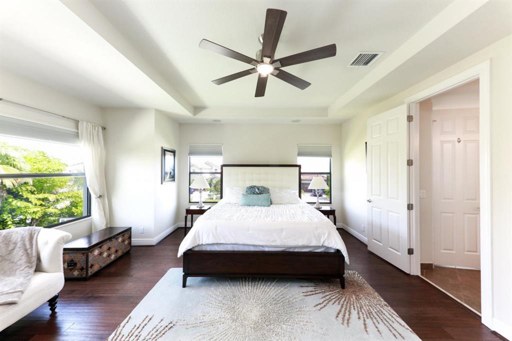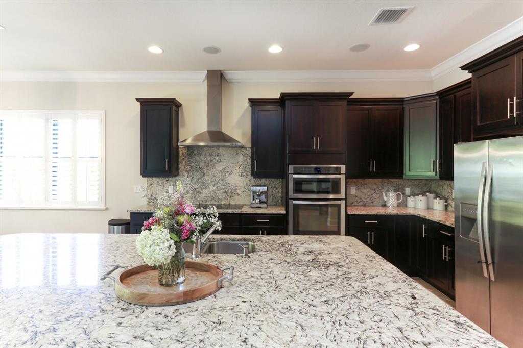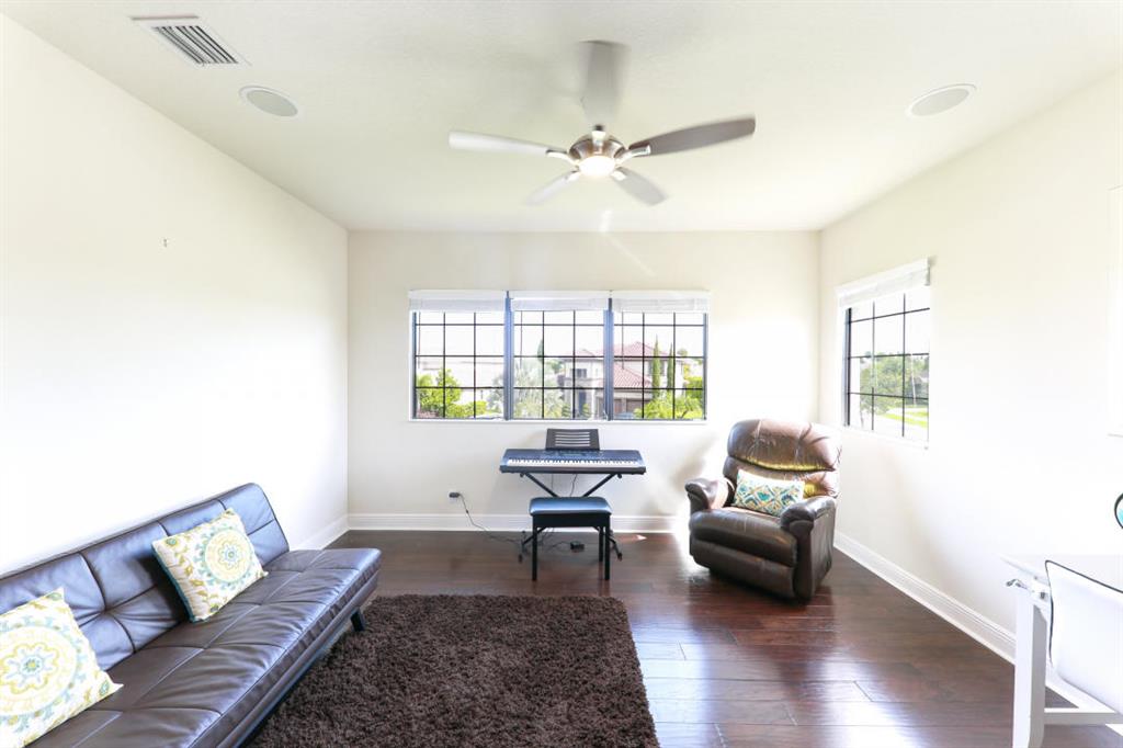 This spacious, must-see 2014 has over 100k in upgrades, and is nestled on a quiet, over-sized corner lot. Enjoy a sizable, fully-fenced, professionally landscaped backyard, 12-ft privacy hedges, 2 grassy side yards, and a 30-ft heated lap pool (electric and gas heaters), complete with both a spa and a tanning shelf. The cabana full bath/bedroom has a separate entrance and private access to the pool. The gourmet kitchen with a sprawling granite island seats 10 comfortably.This move-in ready home feature an over-sized loft area, plantation shutters throughout the first floor, custom window treatments in all bedrooms, solid hardwood floors, elegant lighting fixtures, impact glass throughout, and custom California Closets in all bedrooms