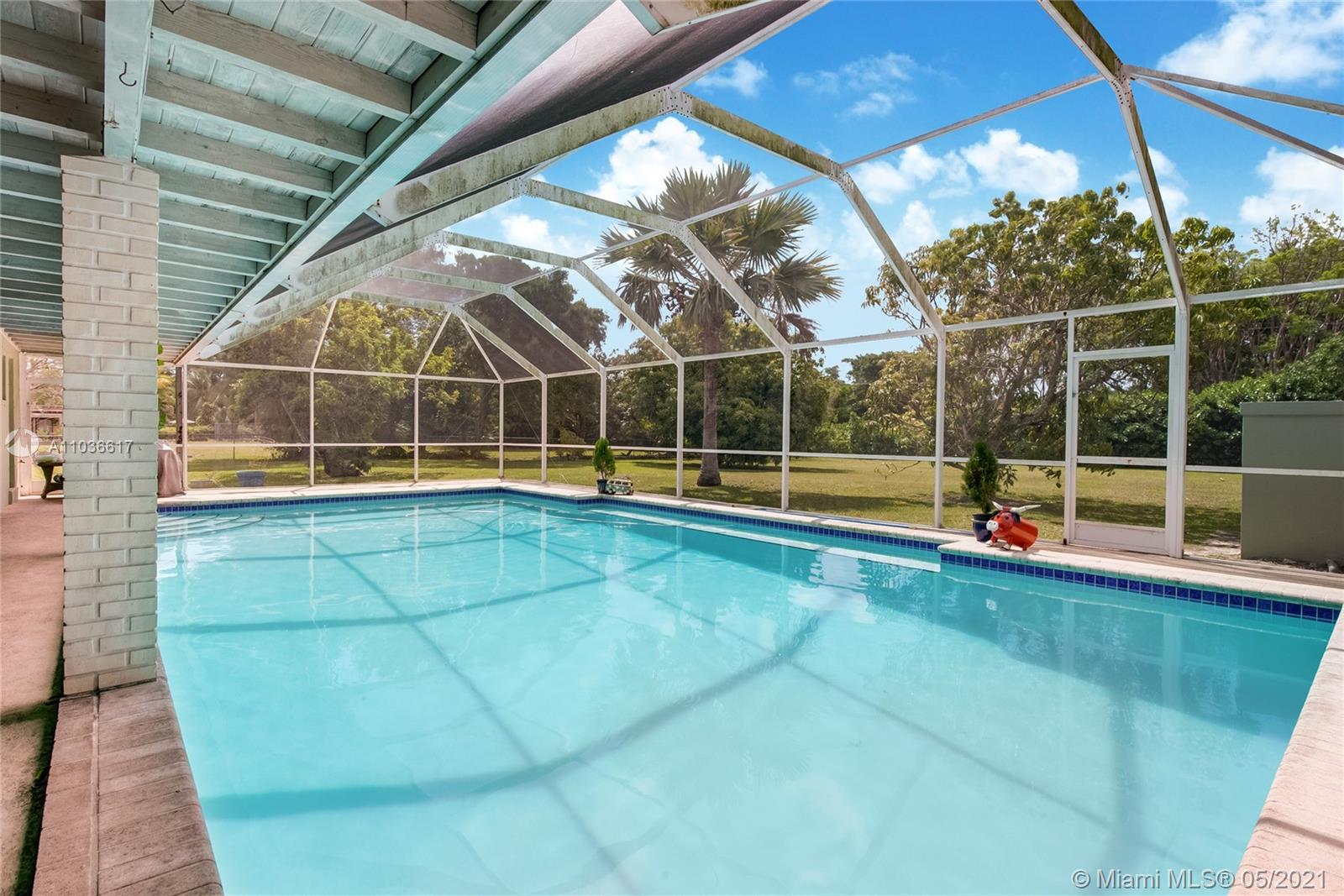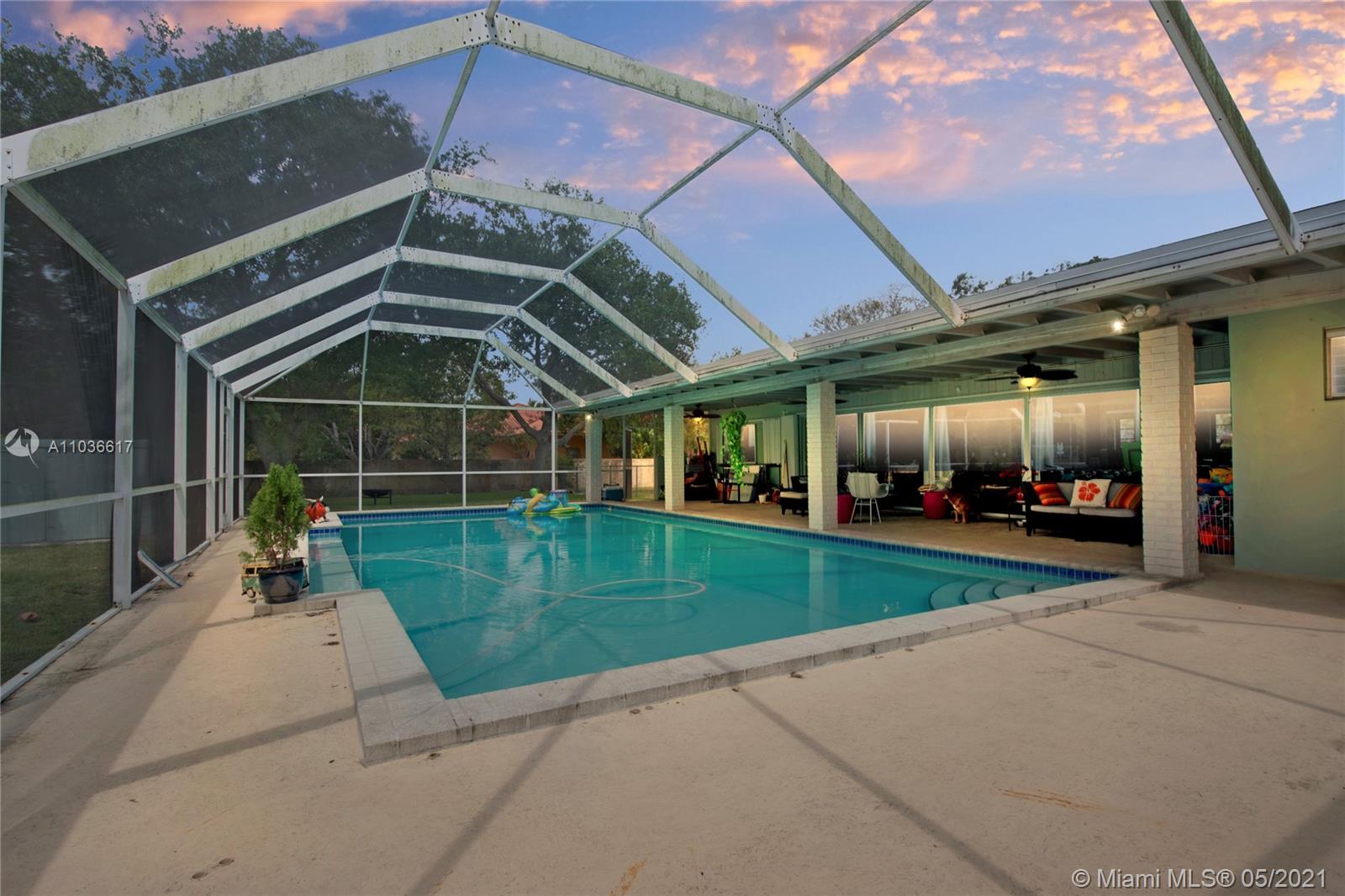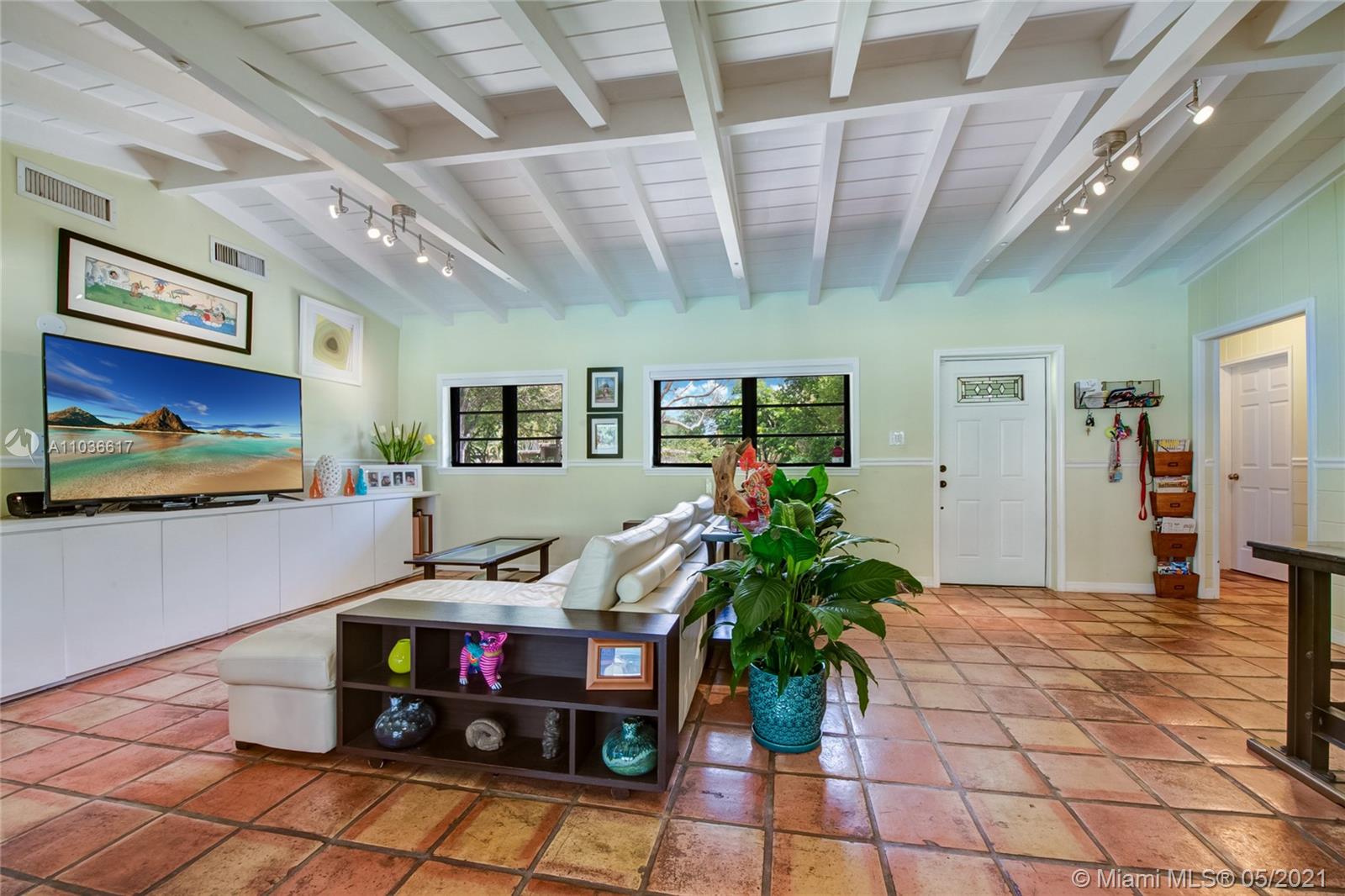 Fantastic opportunity to experience the best of Pinecrest within walking distance of highly-regarded Palmetto schools, Milam's Supermarket, restaurants, cafes and shops. This spacious 3 bed/2 bath home features charming vaulted ceilings over large living, dining and kitchen areas with lots of natural light. Tile and polished cement floors throughout. The patio leads to a screened pool and expansive backyard (apx. 1 acre) for kids or pets to run and play amongst mango and avocado trees. Currently rented through July 15th at $3,952/month. Great schools, great location, and great opportunity to move right in or build new! Please request through showing time.