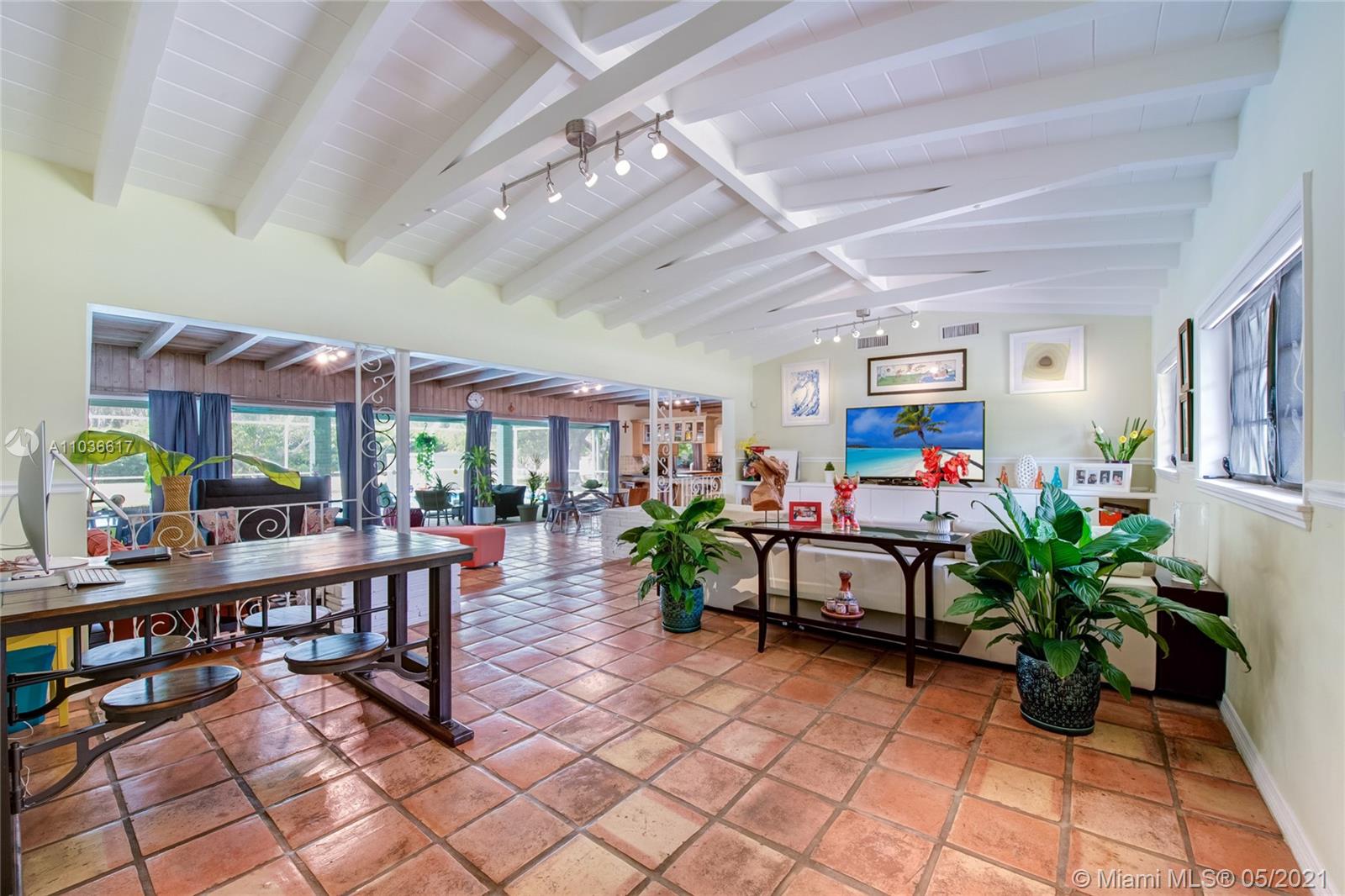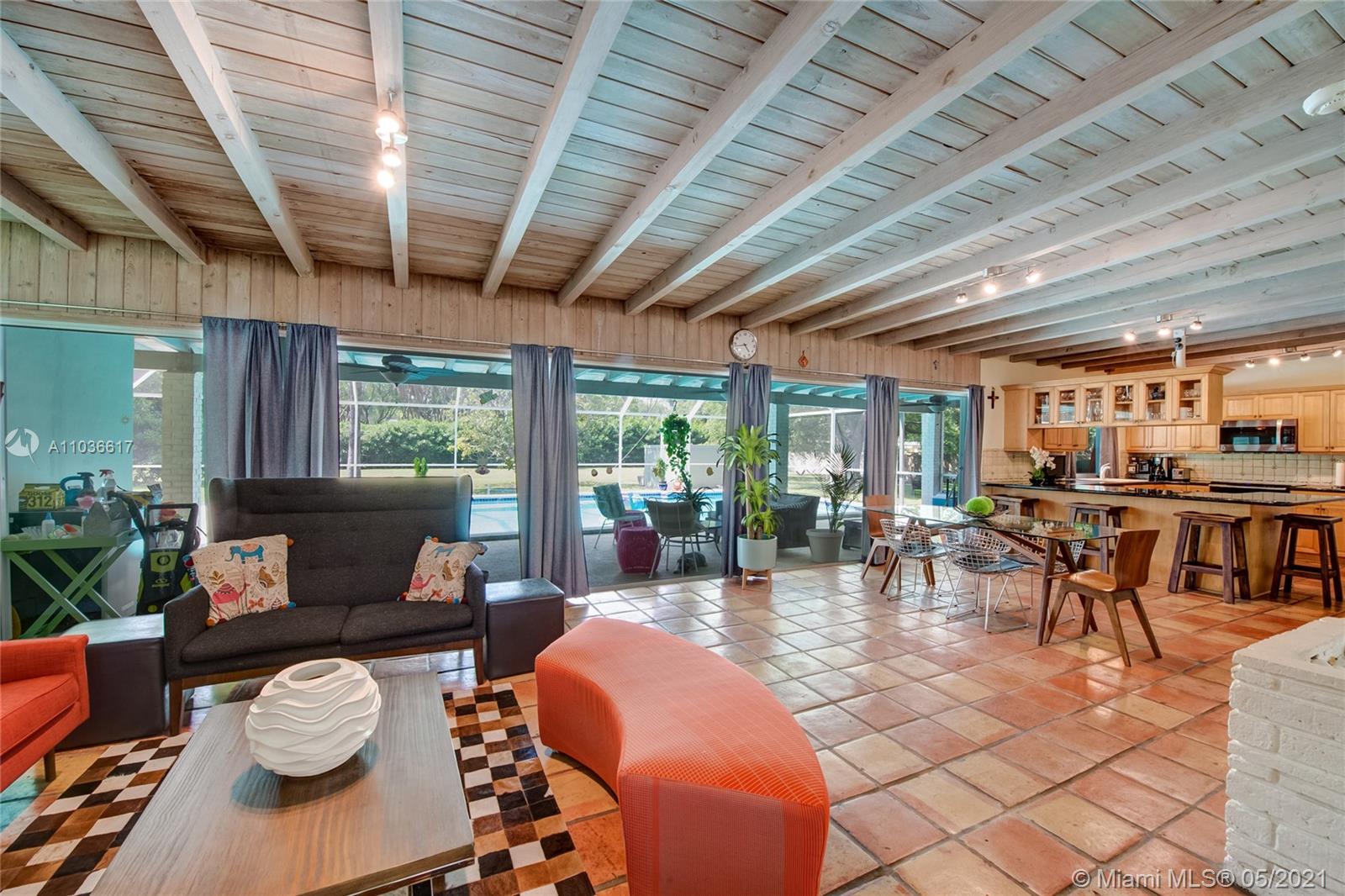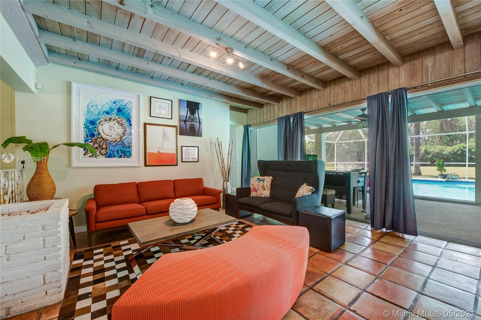 Fantastic opportunity to experience the best of Pinecrest within walking distance of highly-regarded Palmetto schools, Milam's Supermarket, restaurants, cafes and shops. This spacious 3 bed/2 bath home features charming vaulted ceilings over large living, dining and kitchen areas with lots of natural light. Tile and polished cement floors throughout. The patio leads to a screened pool and expansive backyard (apx. 1 acre) for kids or pets to run and play amongst mango and avocado trees. Currently rented through July 15th at $3,952/month. Great schools, great location, and great opportunity to move right in or build new! Please request through showing time.