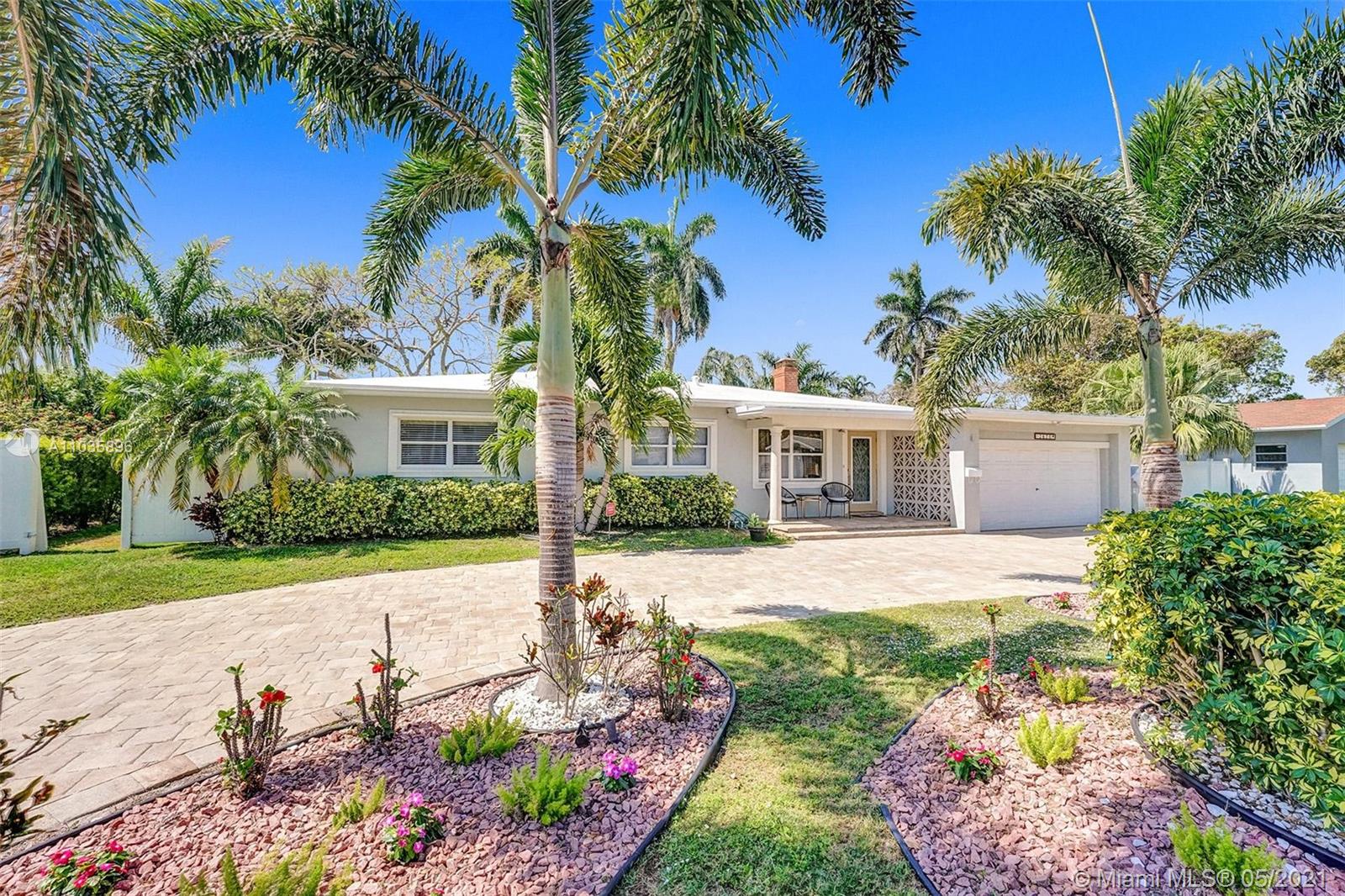 DESIRABLE EAST OF FEDERAL NEAR SHOPS, RESTURANTS AND MUCH MORE, ONLY 1.5 MILES TO THE BEACH. THIS UPGRADED HOME HAS A BEAUTIFUL PAVER CIRCULAR DRIVE THAT WILL PARK UP TO FIVE CARS PLUS A HUGE TWO CAR GARAGE. FRONT DOOR IS IMPACT, WINDOWS ARE SHUTTER READY AND ALL ARE STORED IN GARAGE AND TILE THROUGHOUT. A TWO SIDED FIREPLACE FROM DINING TO FAMILY ROOM. INCREDIBLE BACK YARD, LOT NEARLY 15000 SQ FT. SELLER CLAIMS LEGALLY ADDED FAMILY ROOM INCREASED HOME'S LIVING SPACE TO OVER 1600 SQ FT. THIS HOME IS A MUST TO SEE AND PRICED TO SELL.