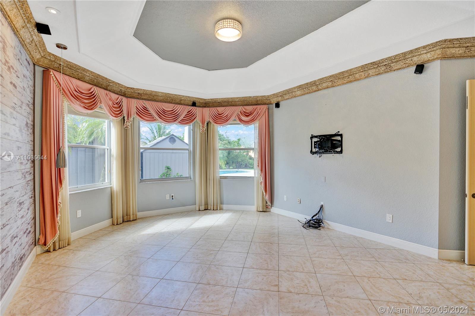 EXQUISITE ARCHITECTURAL DETAILS ABOUND IN THIS STUNNING 5/5 Plus Den. Imported Crown Molding and interior decoration, very New 3 ACs, New WIFI enabled Garage door, Outside Cameras, Pool with SPA, water fall, bubblers & water jets. Newly Painted Grant foyer Entry, Granite Built-Ins Formal Dining Room, Extraordinary custom Wall to Wall Entertainment Center, Large Granite Wet Bar, Wine Rack, Beautiful Kitchen with Double Oven, Preparation Island, Walk-In Shelved Pantry. Custom Built-in Office Room with Granite. Master Suite Features Sitting Area, Tray Ceiling, Spa-Like Master Bath, Newly Painted inside & Outside. Master bedroom has wood accent walls. Outside Large Kitchen with Marine wood. Award Winning Landscape. Walk-way all around the house. Tropical Fruit Trees all around the house.