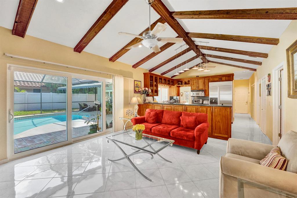 GET IT BEFORE IT'S GONE! Charming 4 bedroom, 3 bathroom pool home located in Palm Beach Farms in East Boca Raton- NO HOA! Enjoy over 2500 sq ft of hardwood and tiled floors, soaring ceilings in the family room and kitchen with beautiful exposed wood beams, spacious bedrooms- including an attached inlaws quarters, updated bathrooms AND full impact windows and sliders! The beautiful outdoor living space includes a screened-in patio with upgraded pavers, a large freeform solar heated pool, covered patio in addition to patio space with a retractable awning. This almost 1/4 acre lot has a fenced in backyard featuring a vinyl fence, a large avocado tree, and additional property behind the fence.This home has plenty of parking with a large circular driveway in addition to a 2 car garage.