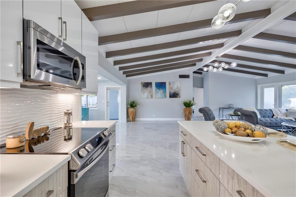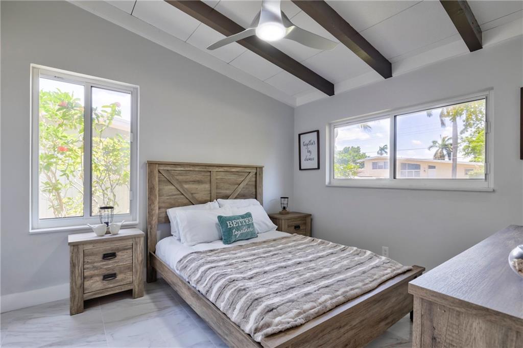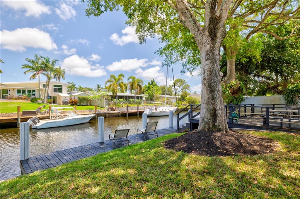 WOW! Ocean access- no fixed bridges, bring your BOAT! This home is so spacious! Spectacular from the the NEW roof, impact windows and doors down to the polished tile (marble looking) floor and everything between! The kitchen is a work of art! Handmade cabinets, quartz countertop, HIGH END appliances! Volume ceiling with beams oozes charm. Wet bar, dining and sitting area with a view to die for! New irrigation and sod. Mature trees. Brand new HUGE wood deck. Dock has power. If you think the pictures look good, wait till you live here!