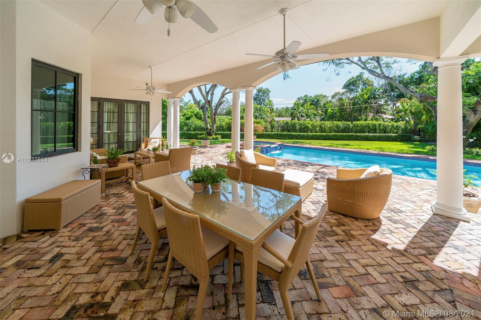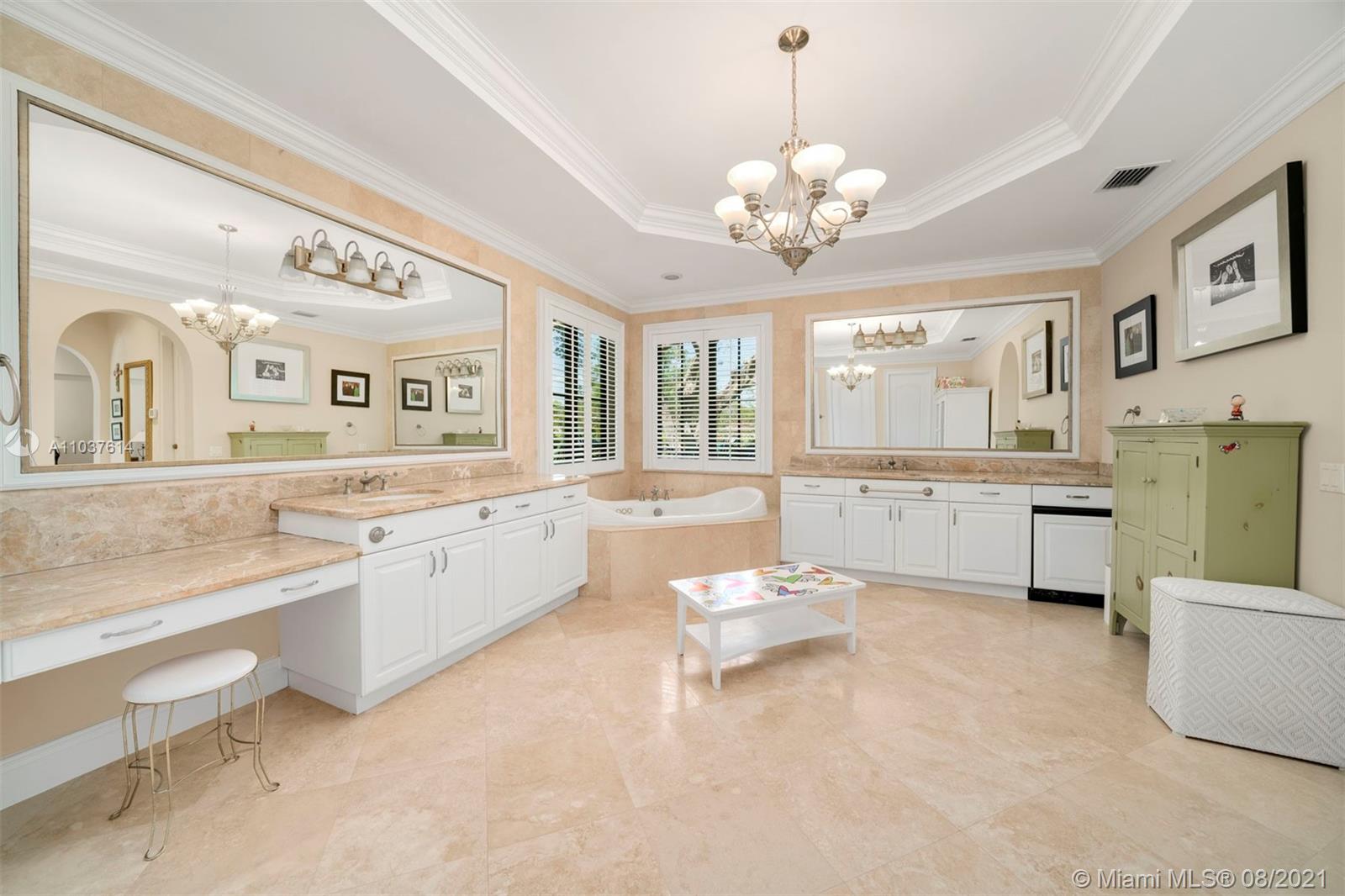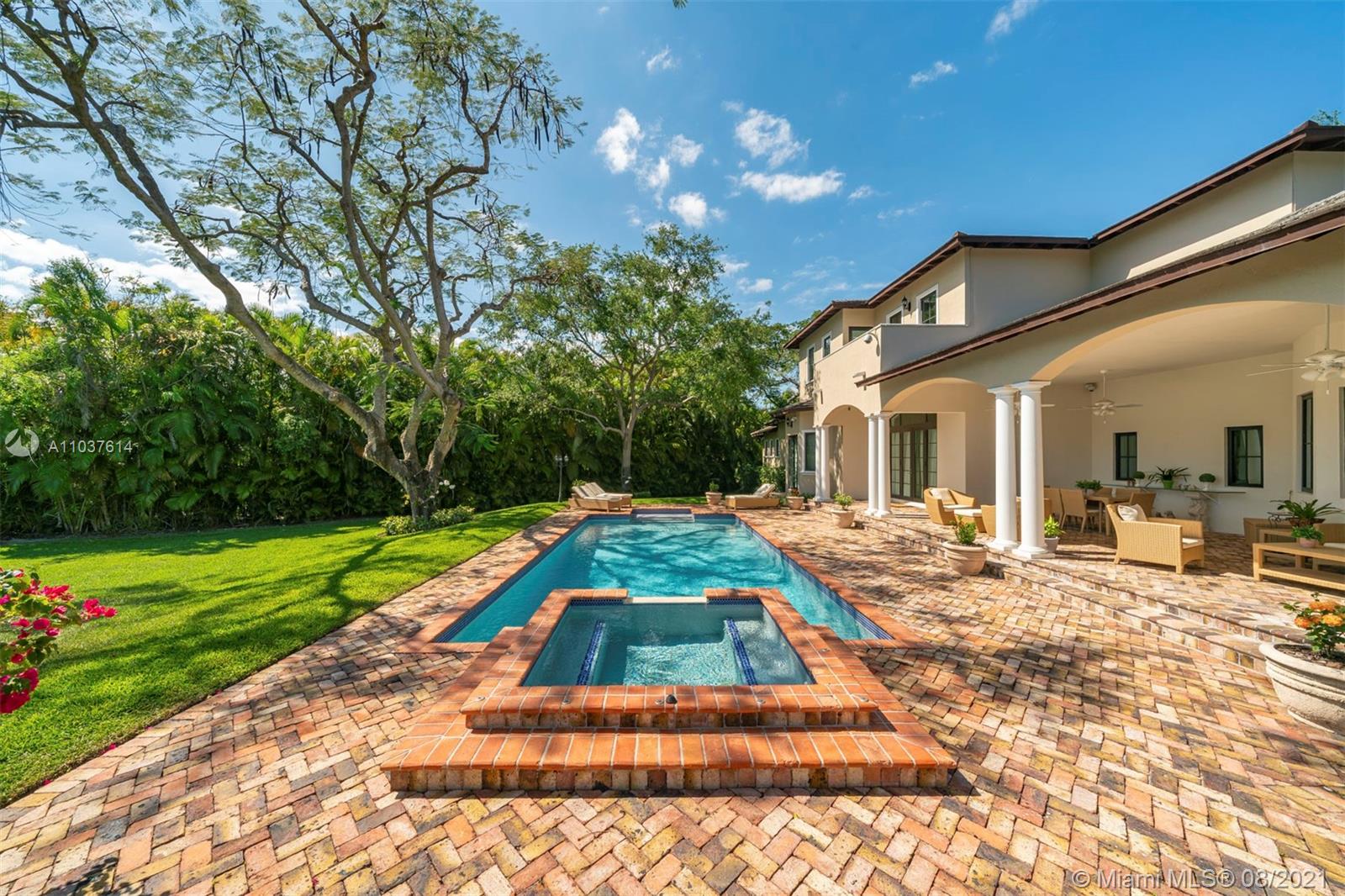 Truly beautiful estate in one of Pinecrest’s most enchanting neighborhoods. Built in 2003, this is the first time this wonderful family home hits the market. Enter an impressive foyer and living room with 22 ft. ceilings and a warm & welcoming library. First floor expansive master suite with his and hers closets & spa-sized master bathroom. The home’s decor was inspired by a French Country Estate and provides first class amenities such as a chef’s kitchen, breakfast room, formal living room, extensive family room, 3 car garage with A/C, & upstairs open family room. Landscaping abounds the property with Palm & Oak Trees, an incredible covered backyard lounge & terrace, and a beautiful resort style pool and jacuzzi area with ultimate privacy.