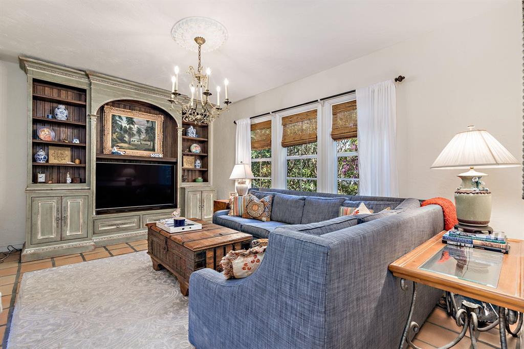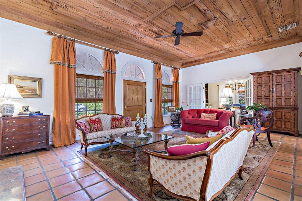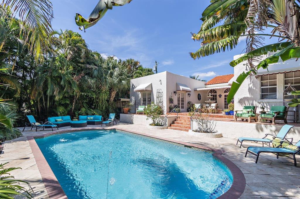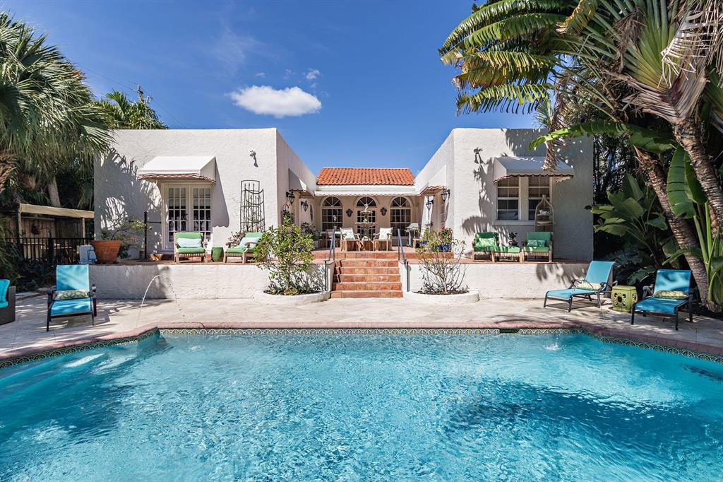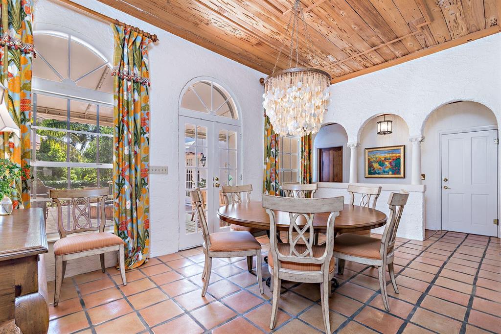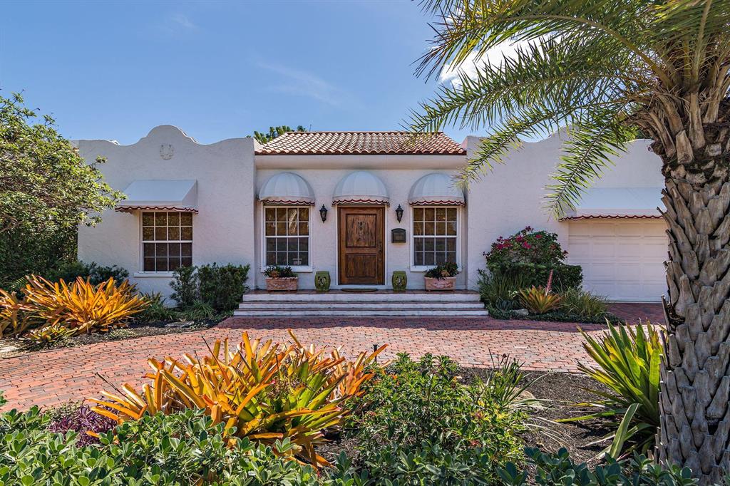 Stately Mediterranean South of Southern! This gorgeous 3BR/2BTH pool home with garage will amaze you with its soaring 11 ft. ceilings & true Florida ambience. Curved brick driveway leads to the raised entry enhanced with tile steps & pecky cypress door. The interior spaces are elegantly designed with an open floor plan, formal living room with pecky cypress ceiling & fireplace, formal dining with French Doors opening to large covered patio overlooking the lushly planted garden, fountain, stunning pool & patio area. Separate family/tv room, eat-in kitchen with new appliances & island with gas cooktop & butcher block counter. Large master bedroom with French doors to patio plus 2 guest bedrooms. The back yard feels like a private resort with pool & lots of mature tropical palm trees!