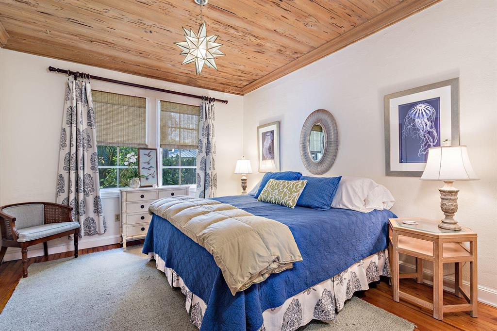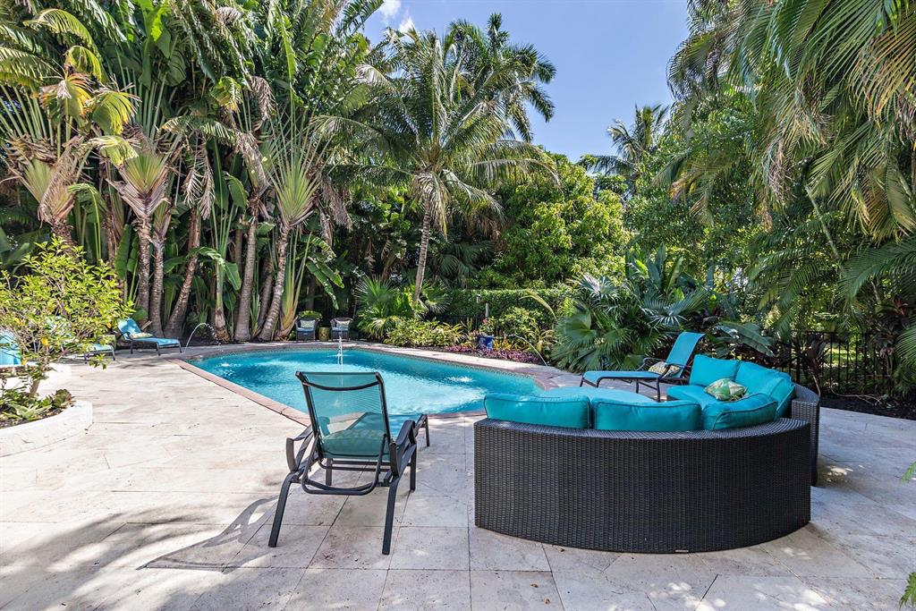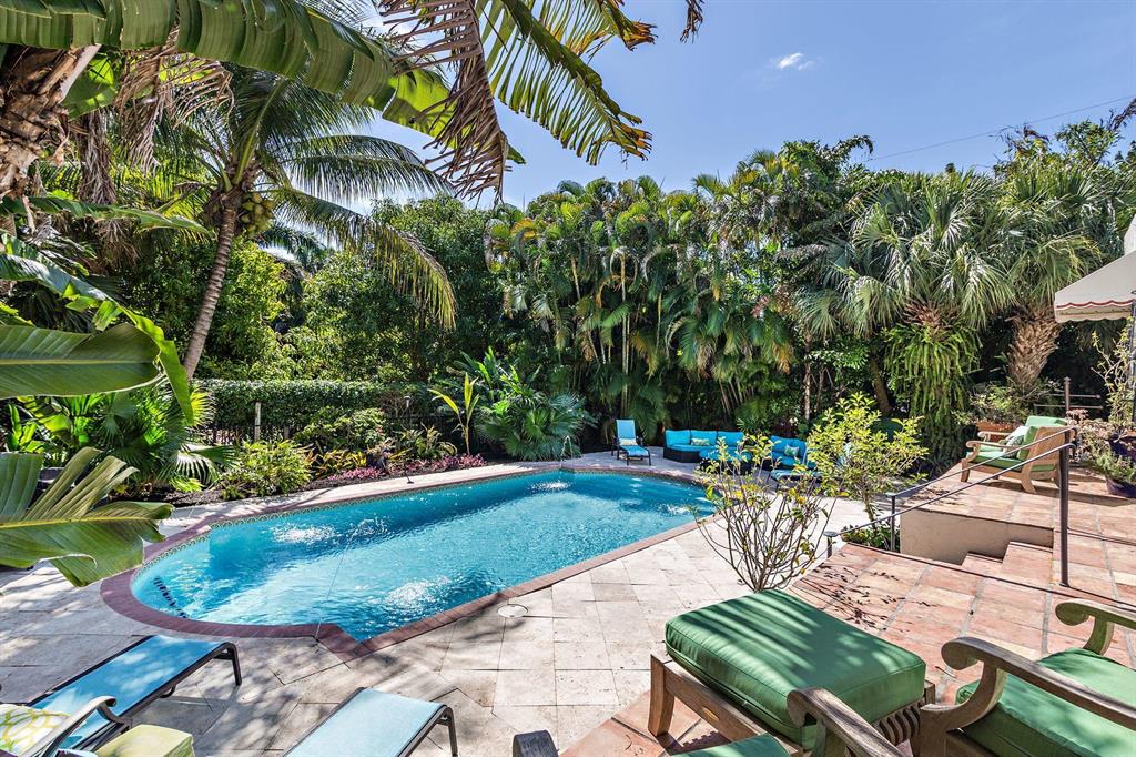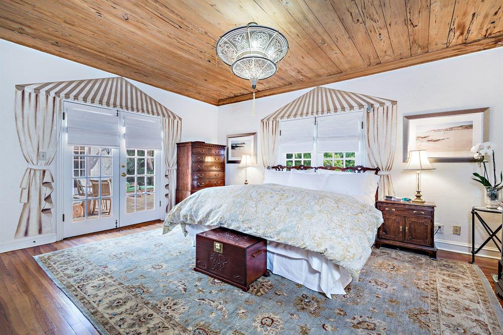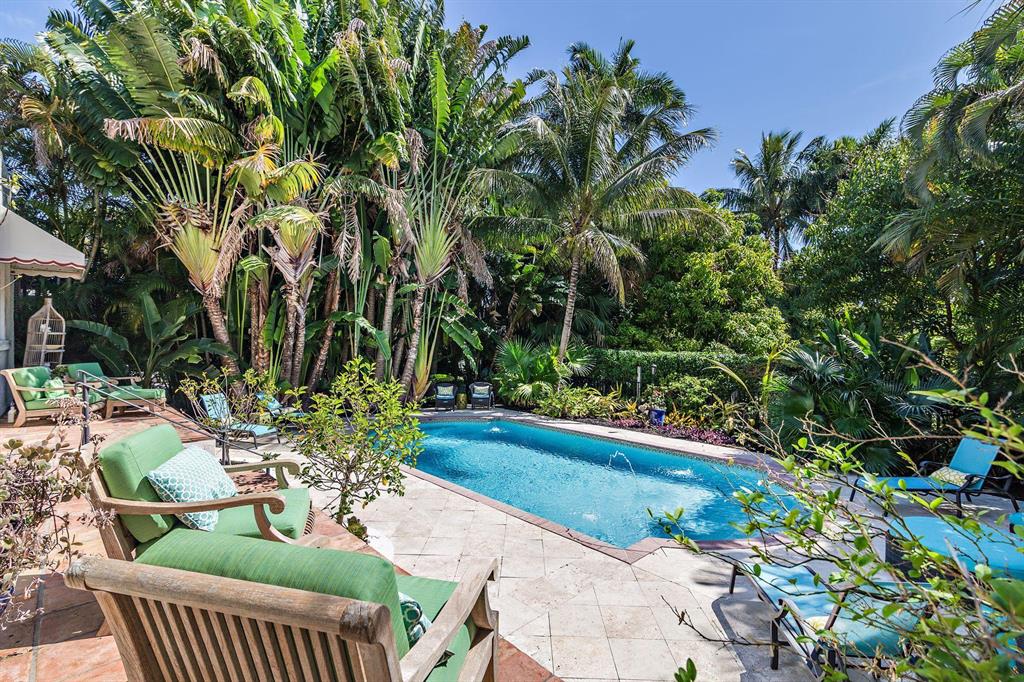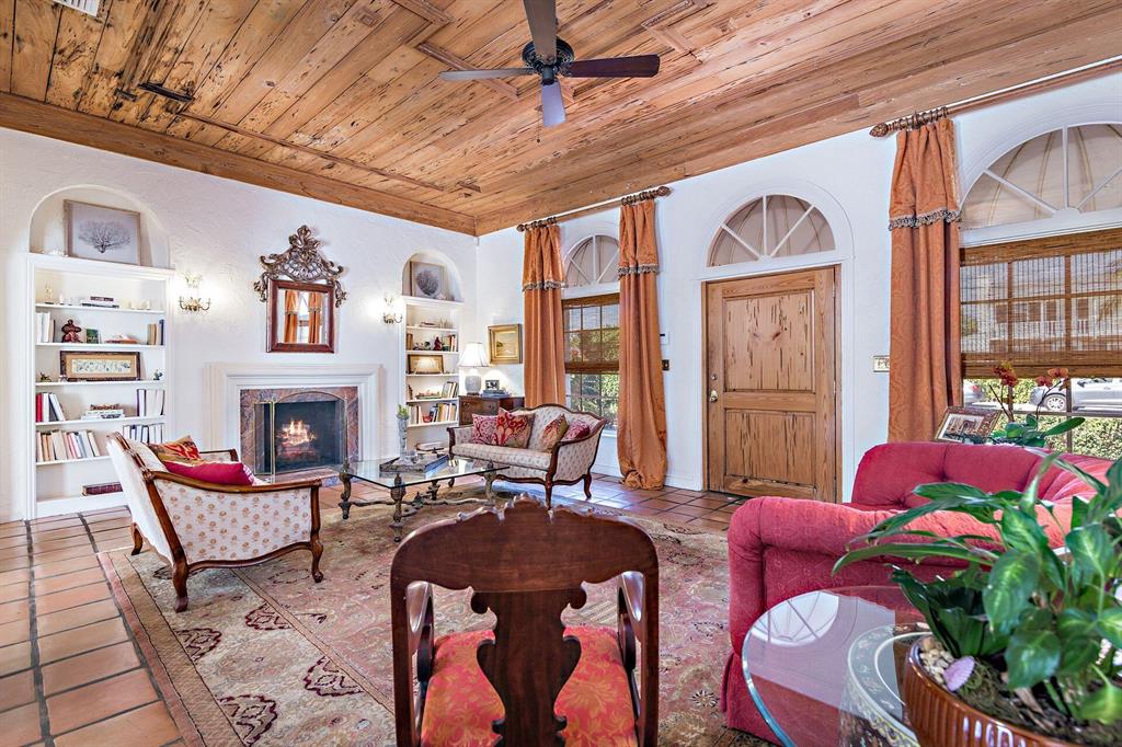 Stately Mediterranean South of Southern! This gorgeous 3BR/2BTH pool home with garage will amaze you with its soaring 11 ft. ceilings & true Florida ambience. Curved brick driveway leads to the raised entry enhanced with tile steps & pecky cypress door. The interior spaces are elegantly designed with an open floor plan, formal living room with pecky cypress ceiling & fireplace, formal dining with French Doors opening to large covered patio overlooking the lushly planted garden, fountain, stunning pool & patio area. Separate family/tv room, eat-in kitchen with new appliances & island with gas cooktop & butcher block counter. Large master bedroom with French doors to patio plus 2 guest bedrooms. The back yard feels like a private resort with pool & lots of mature tropical palm trees!
