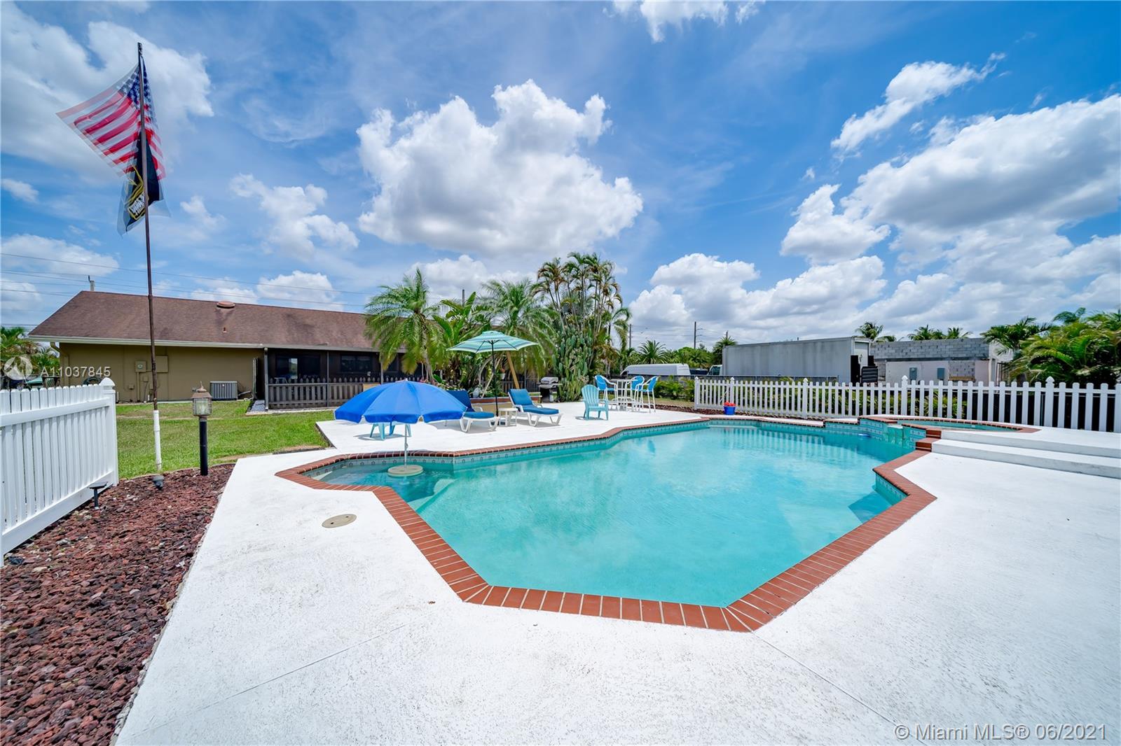 Incredible opportunity to own this gorgeous 3 BED 2 BATH home on a deep builder's acre in the heart of Davie. This home features tile flooring throughout, granite countertops in the kitchen, and much more. Walk out into a huge covered patio area perfect for entertaining. Roof 2008. AC 2021. Impact windows. Beautiful pool area, tons of landscaping that has been immaculately maintained, plenty of room to park an Rv or boat, this home has it all.