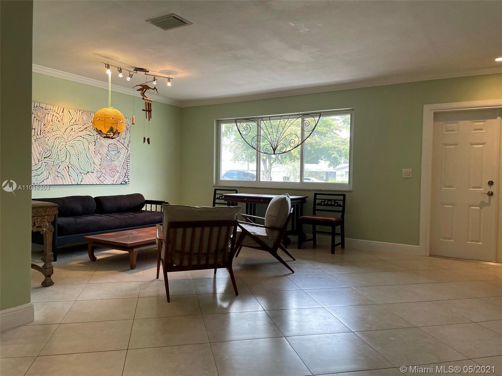 Live on the Rainbow in Hollywood Hills FLA! You've found your POT of GOLD in this 3/2 home. Large Bedrooms, redone hardwood kitchen cabinetry with All the extras; Lazy Suzanne and pull-out drawers. Concrete Tile New Roof, Hurricane Windows and doors completed in the last 3 years. Ceramic Tile Flooring throughout. Large 9,000SF lot with Coconut, mango, banana & Fig Trees. Single car garage. Forget Over the Rainbow, we're at the end of Rainbow, a big grass median divided 4 lane road on a dead end street, so NO TRAFFIC. You'd be the Lucky Leprechaun to buy this cream puff home.