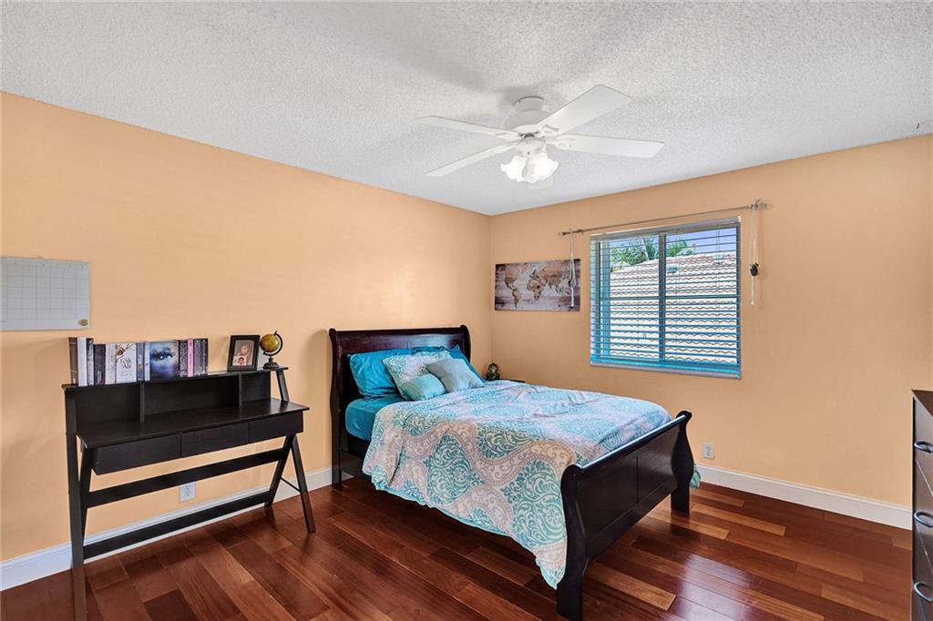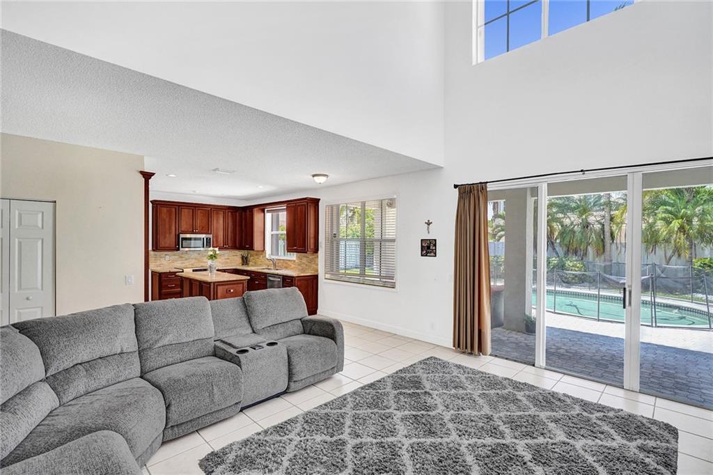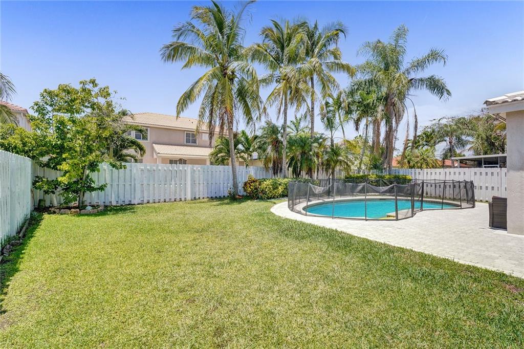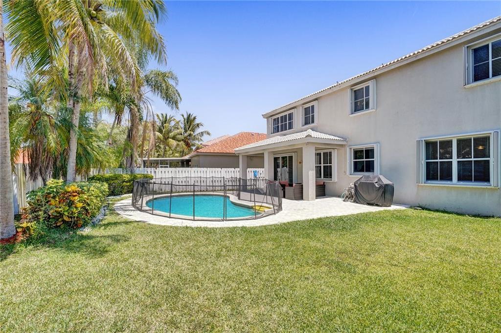 A casual, yet elegant Florida lifestyle awaits you in this 5-bed, 3-bath, 3 car garage pool home located on an oak-lined street in the sought-after Meadows gated community in Weston. You’ll be greeted by ceramic-tiled living and formal dining rooms, an adjoining poolside kitchen and family room, and a private downstairs bed and bath. Upstairs, there are rich Brazilian wood floors, 4 bedrooms, AND a light, airy office off the master bedroom. Additional features include: granite counter tops, stainless appliances with a new refrigerator and microwave, new upstairs AC, and newer washer and dryer in the laundry room Security is provided by a 24/7 manned gate and accordion storm shutters. Executives who work at home should see this one first. Come and see!