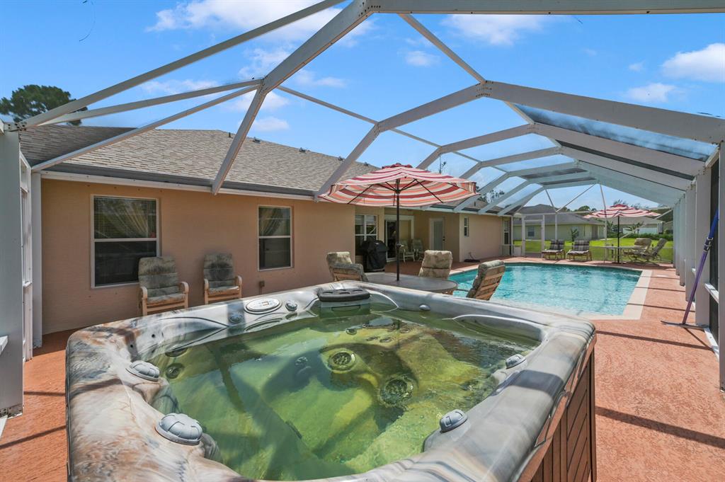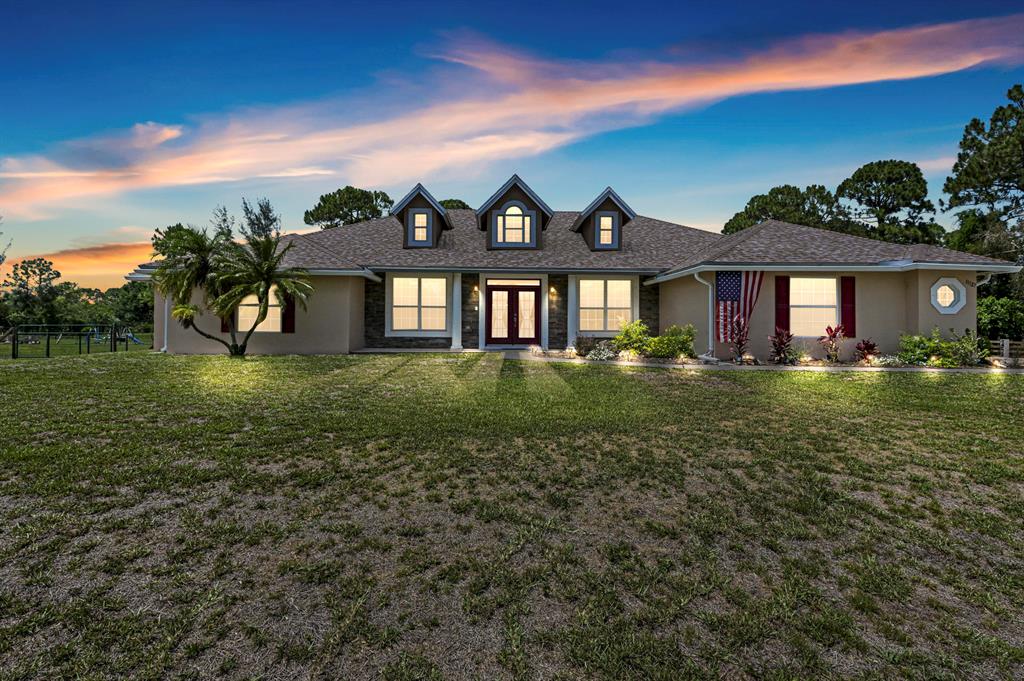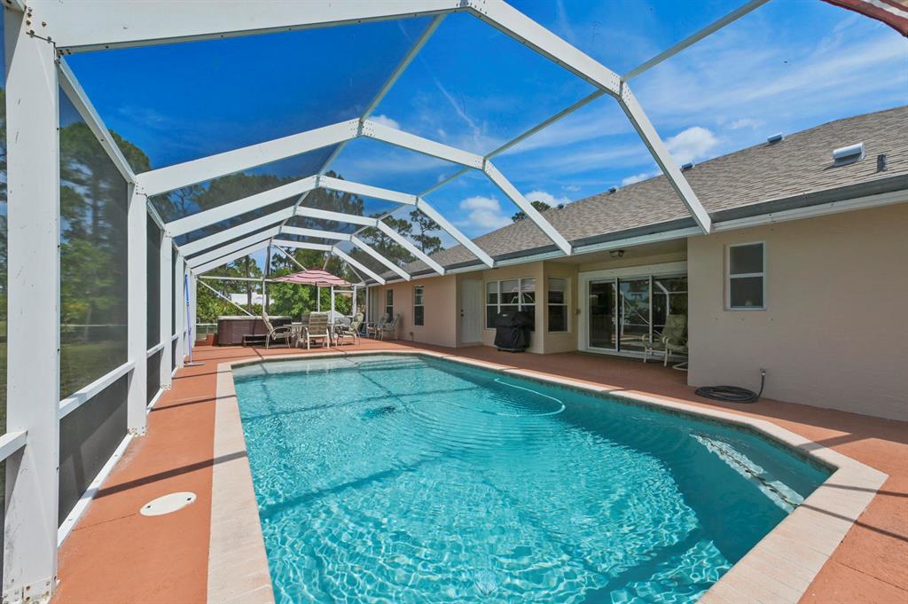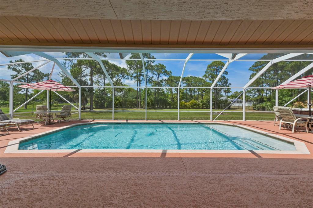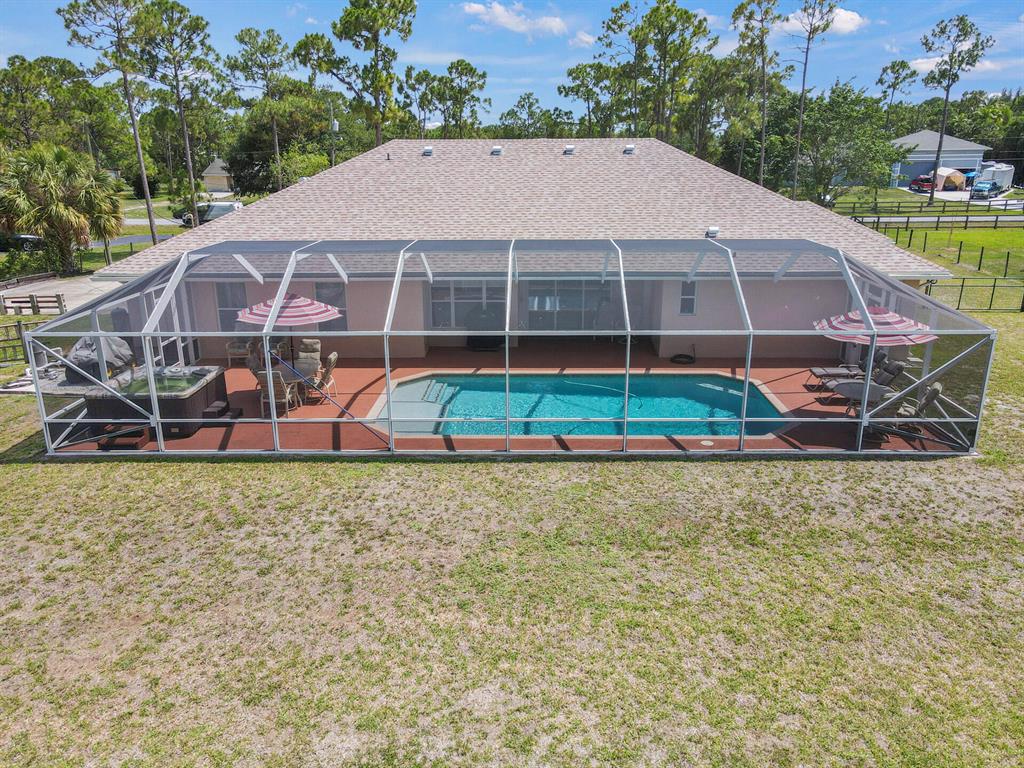 Great pool home on a 1.25 acre lot in the Acreage! No HOA! Come inside and enjoy spacious living areas with vaulted ceilings along with an inviting kitchen which offers stainless steel appliances and tons of cabinetry and counter top space. All of the bedrooms are spacious as well and offer ample closet space. The master bath features a large upgraded shower with tile surround, separate roman tub, and beautiful cabinetry with dual sinks. Outside you will enjoy a gorgeous, covered patio which overlooks the screened pool and backyard and provides access to the guest cabana bath. You wont want to miss out on this beautiful home with tons of land and privacy!